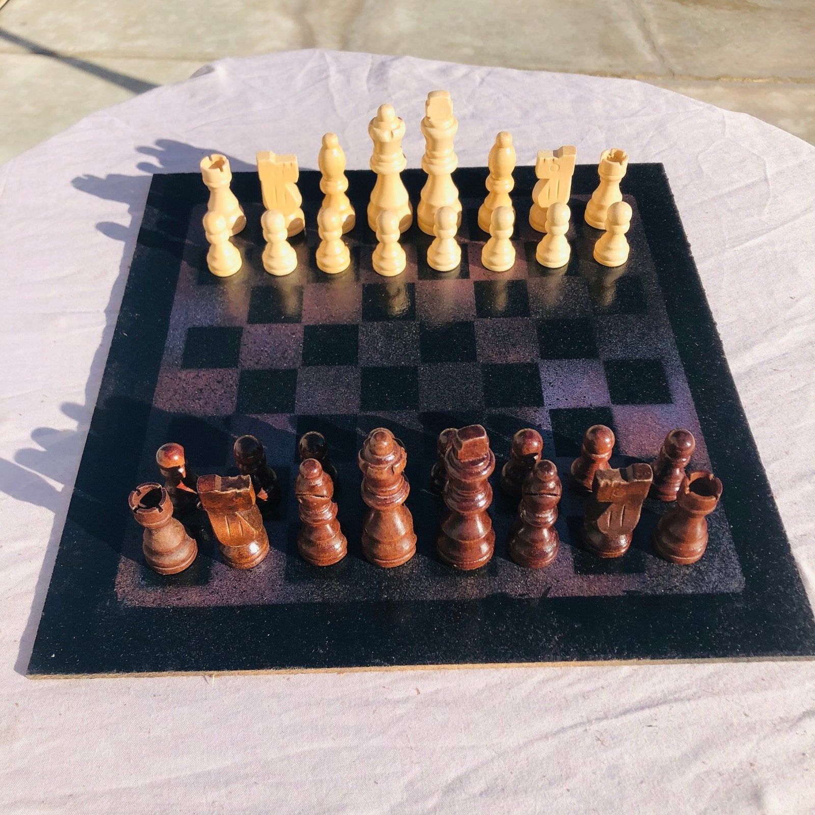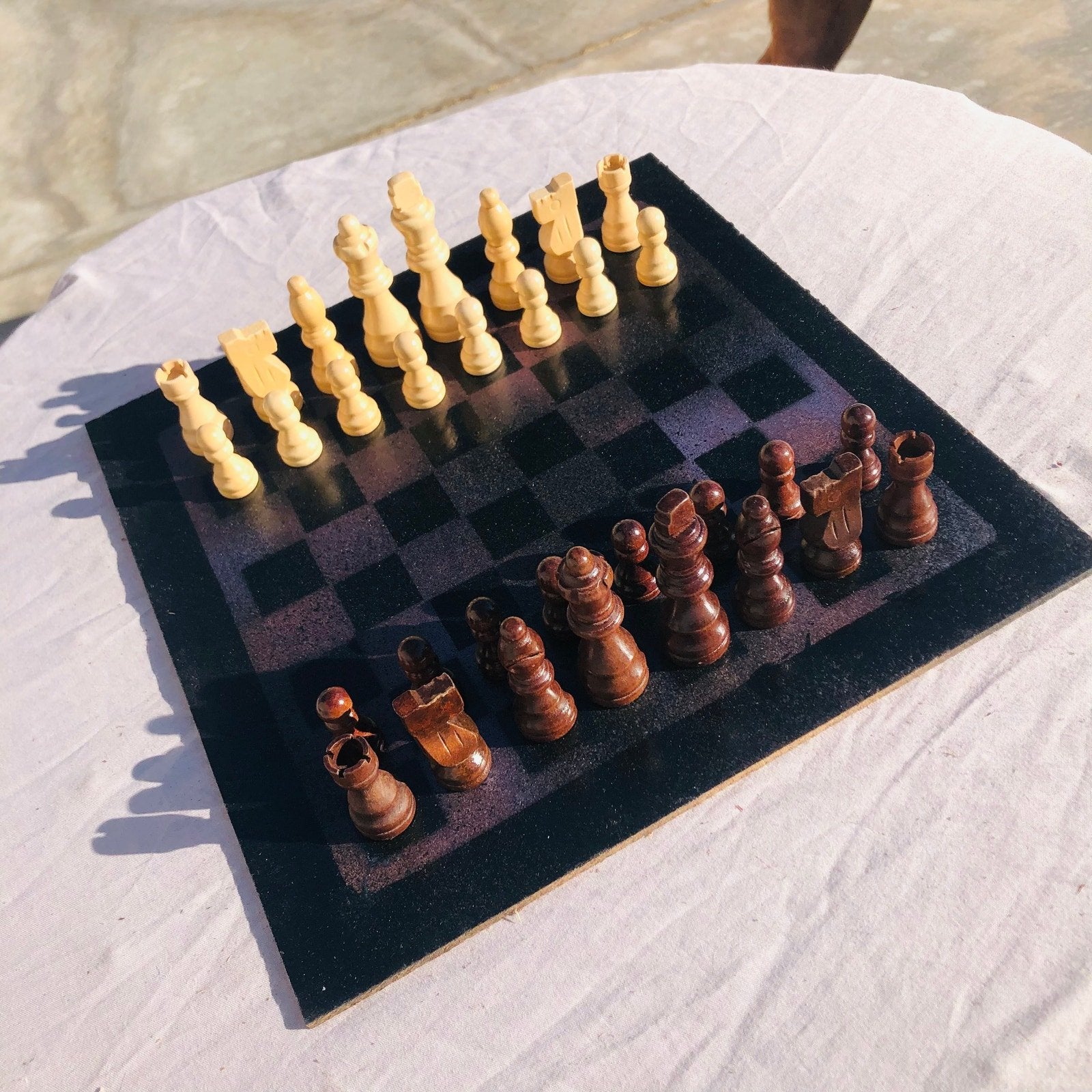 Introducing our exclusive Handcrafted Hardboard Chess Set, meticulously designed with precision and care. Measuring 12 inches by 12 inches, this chess set features a beautifully painted hardwood board that doubles as a work of art. Each set is a unique, one-of-a-kind creation, crafted by hand to ensure that no two sets are alike. Elevate your gaming experience with this exceptional chess set that combines vibrant design with the touch of artisan craftsmanship.