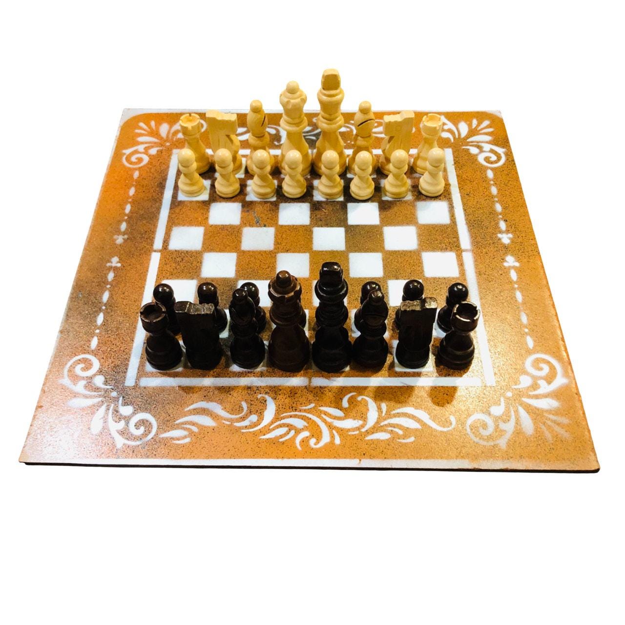 Introducing our exclusive Handcrafted Hardboard Chess Set, meticulously designed with precision and care. Measuring 12 inches by 12 inches, this chess set features a beautifully painted hardwood board that doubles as a work of art. Each set is a unique, one-of-a-kind creation, crafted by hand to ensure that no two sets are alike. Elevate your gaming experience with this exceptional chess set that combines vibrant design with the touch of artisan craftsmanship.
