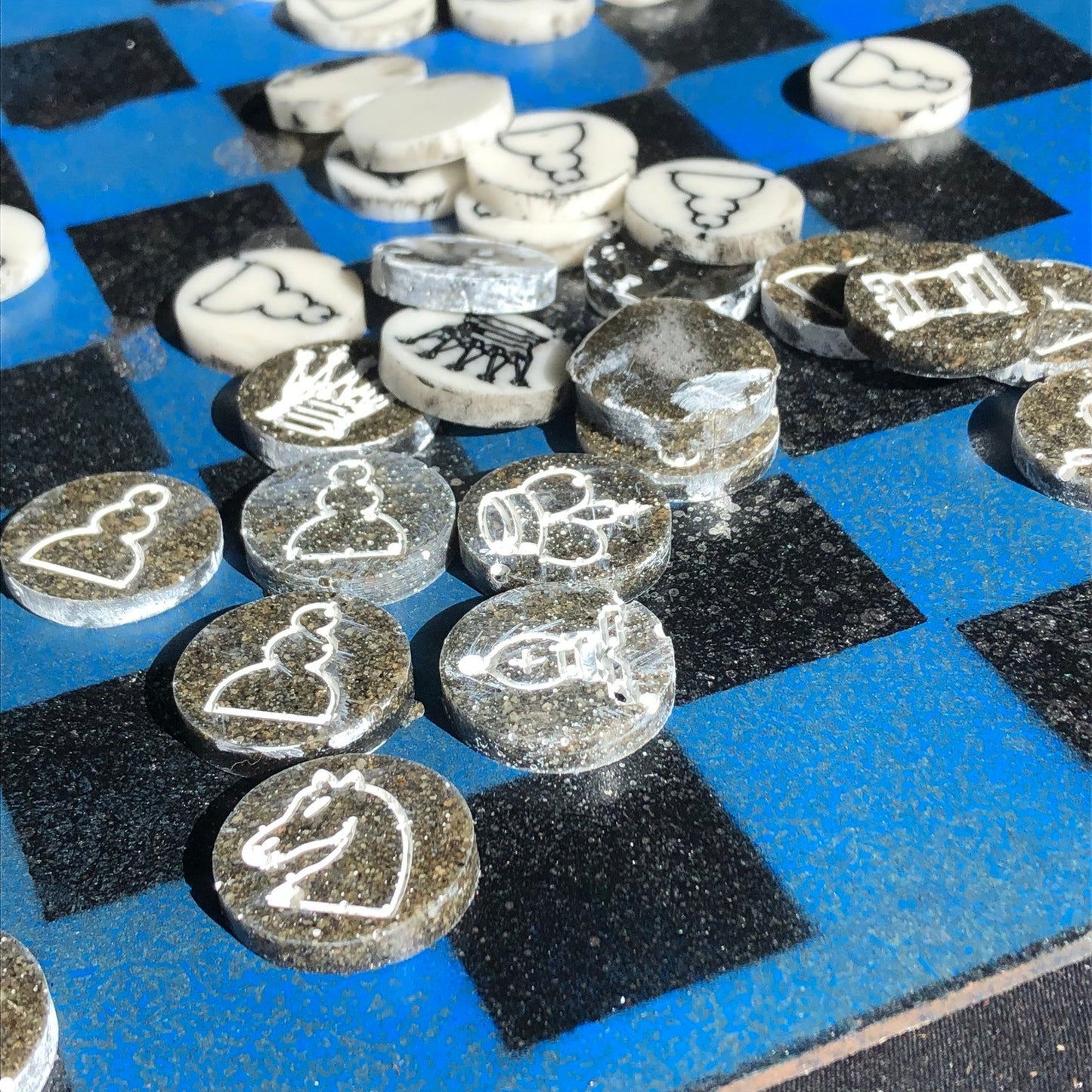 Introducing our exclusive Handcrafted Hardboard Chess Set, meticulously designed with precision and care. Measuring 12 inches by 12 inches, this chess set features a beautifully painted hardwood board that doubles as a work of art. Each set is a unique, one-of-a-kind creation, crafted by hand to ensure that no two sets are alike. Elevate your gaming experience with this exceptional chess set that combines vibrant design with the touch of artisan craftsmanship.