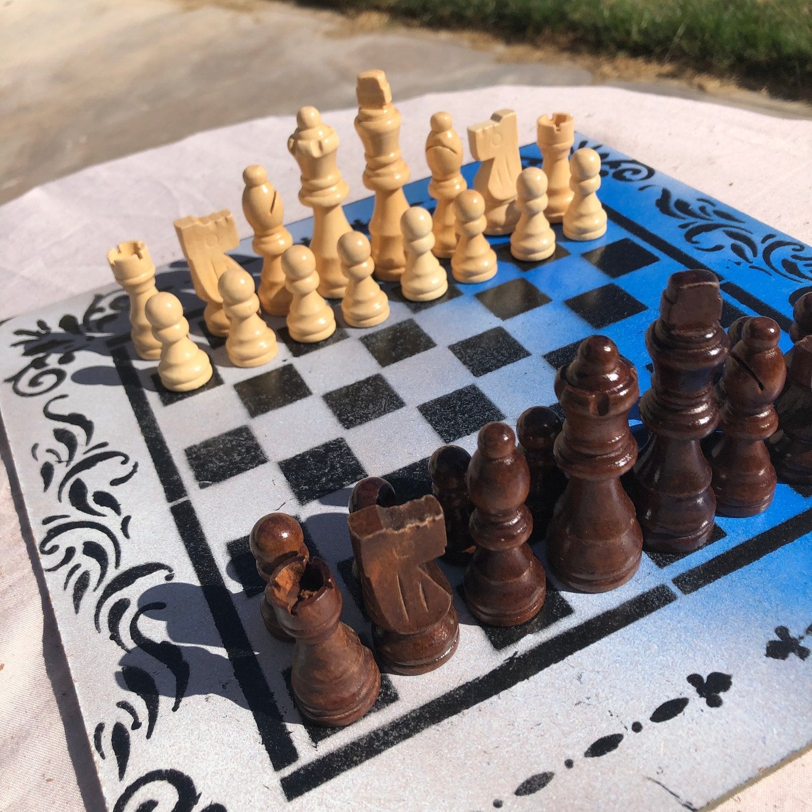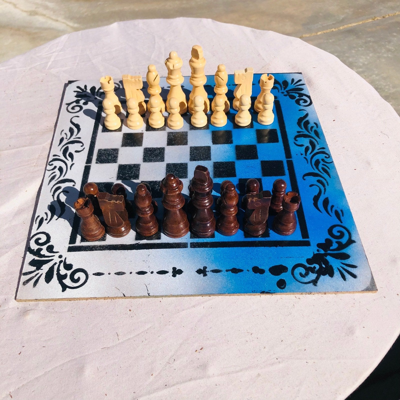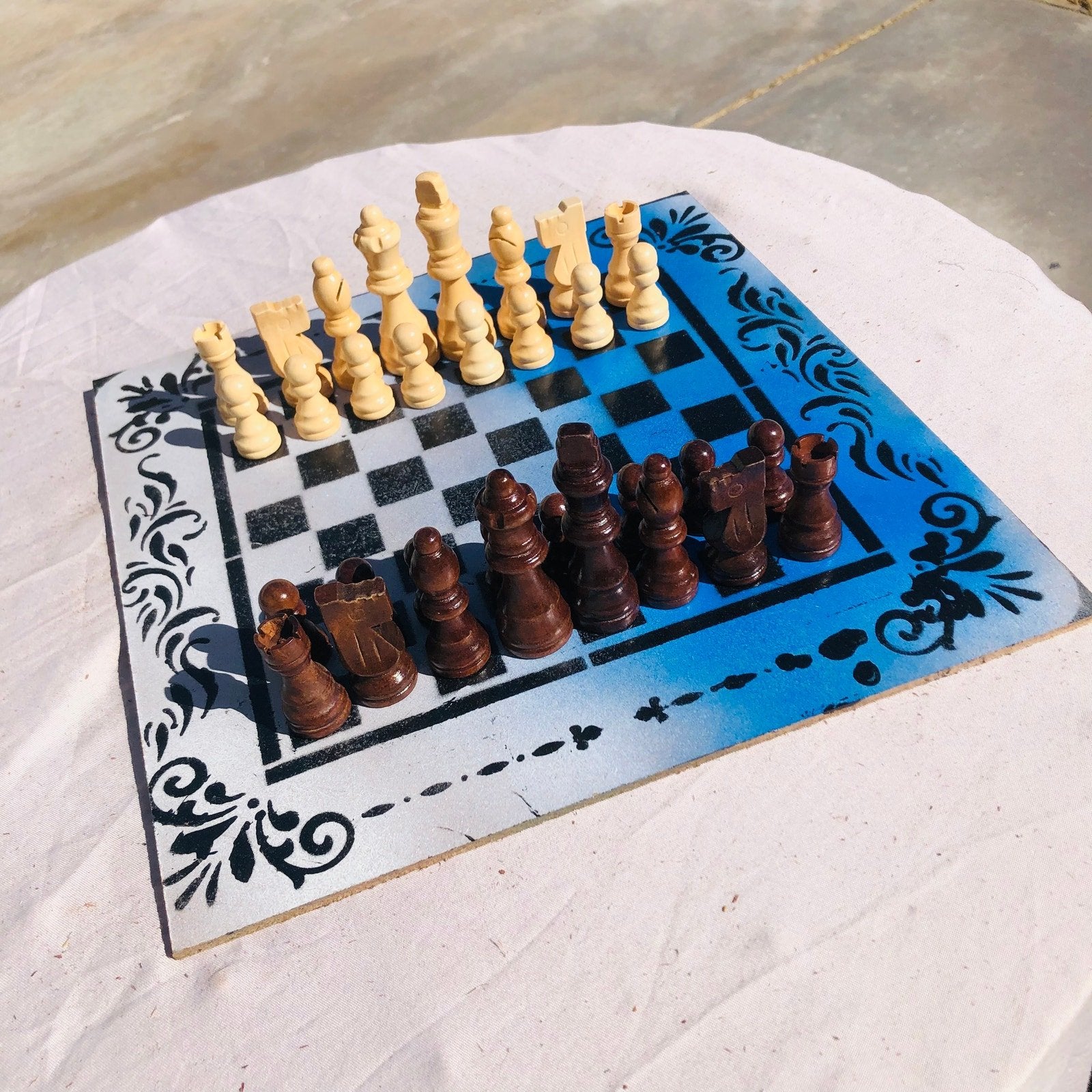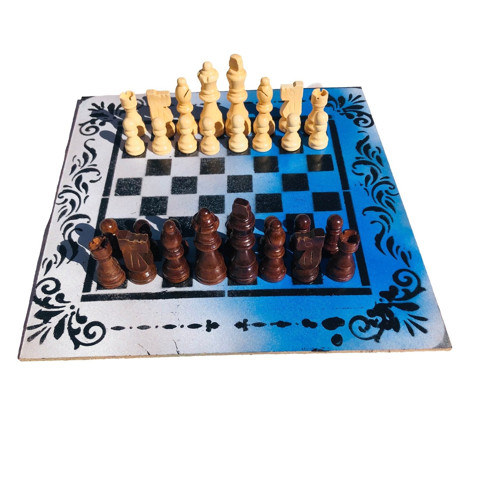 Introducing our exclusive Handcrafted Hardboard Chess Set, meticulously designed with precision and care. Measuring 12 inches by 12 inches, this chess set features a beautifully painted hardwood board that doubles as a work of art. Each set is a unique, one-of-a-kind creation, crafted by hand to ensure that no two sets are alike. Elevate your gaming experience with this exceptional chess set that combines vibrant design with the touch of artisan craftsmanship.