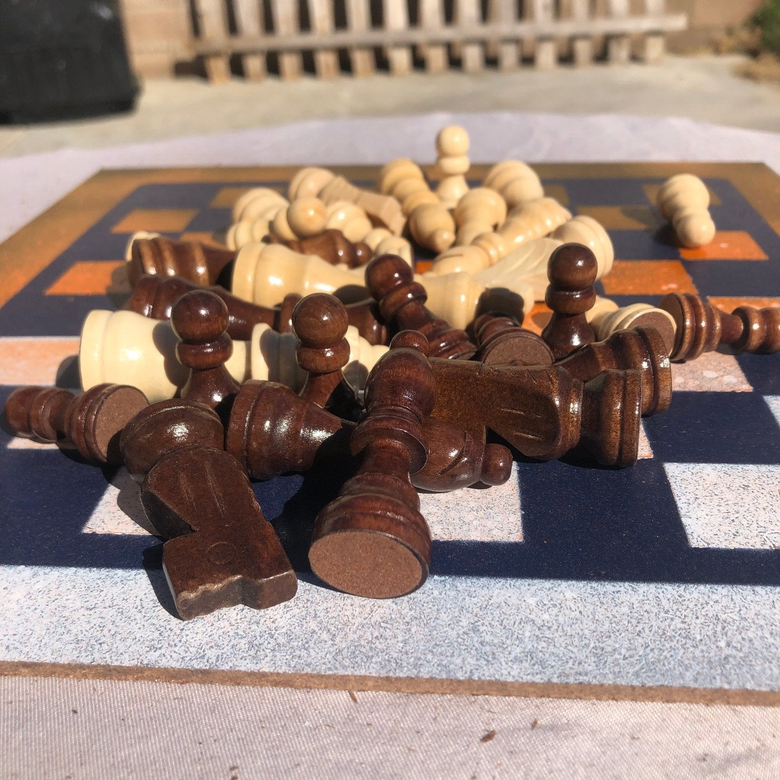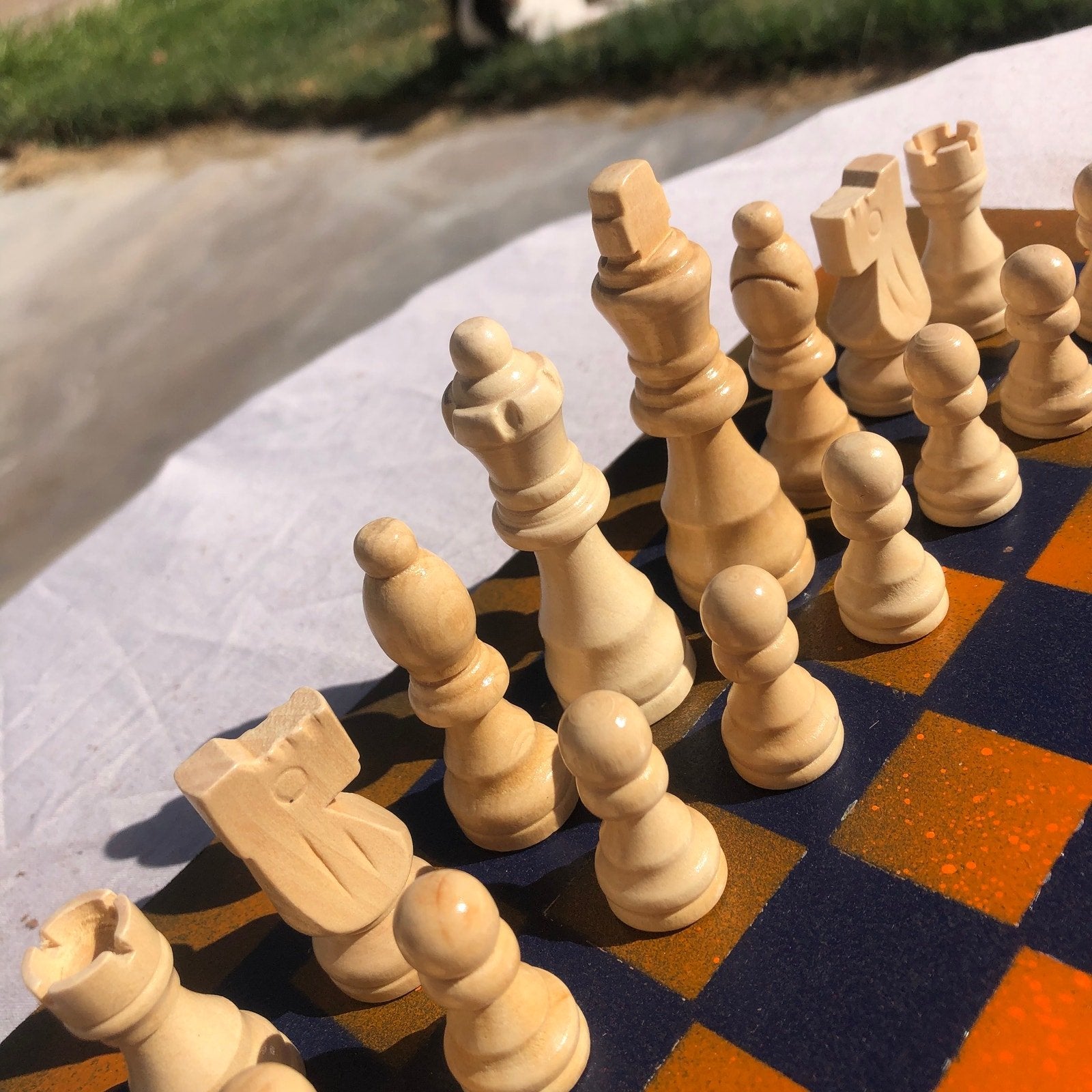 Introducing our exclusive Handcrafted Hardboard Chess Set, meticulously designed with precision and care. Measuring 12 inches by 12 inches, this chess set features a beautifully painted hardwood board that doubles as a work of art. Each set is a unique, one-of-a-kind creation, crafted by hand to ensure that no two sets are alike. Elevate your gaming experience with this exceptional chess set that combines vibrant design with the touch of artisan craftsmanship.