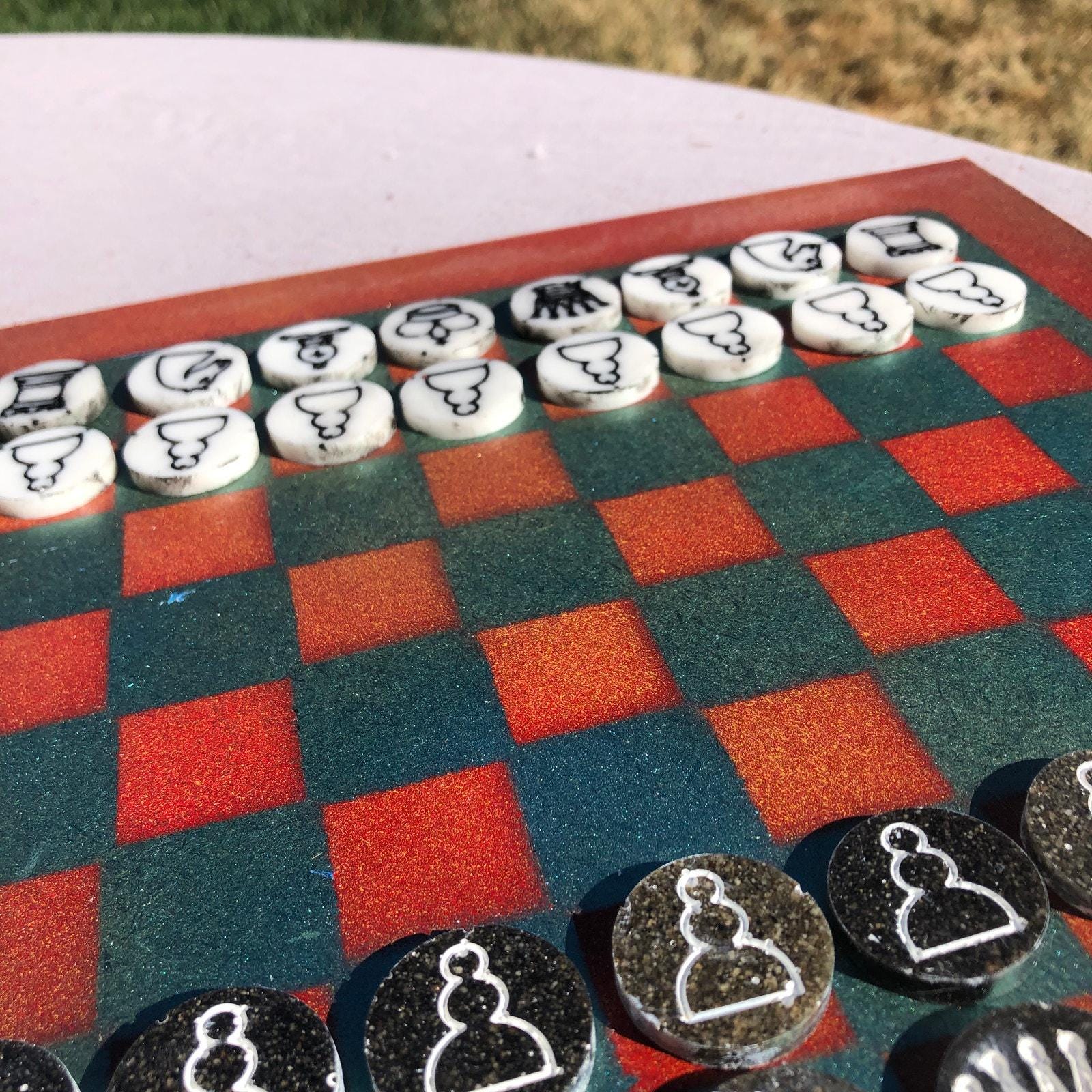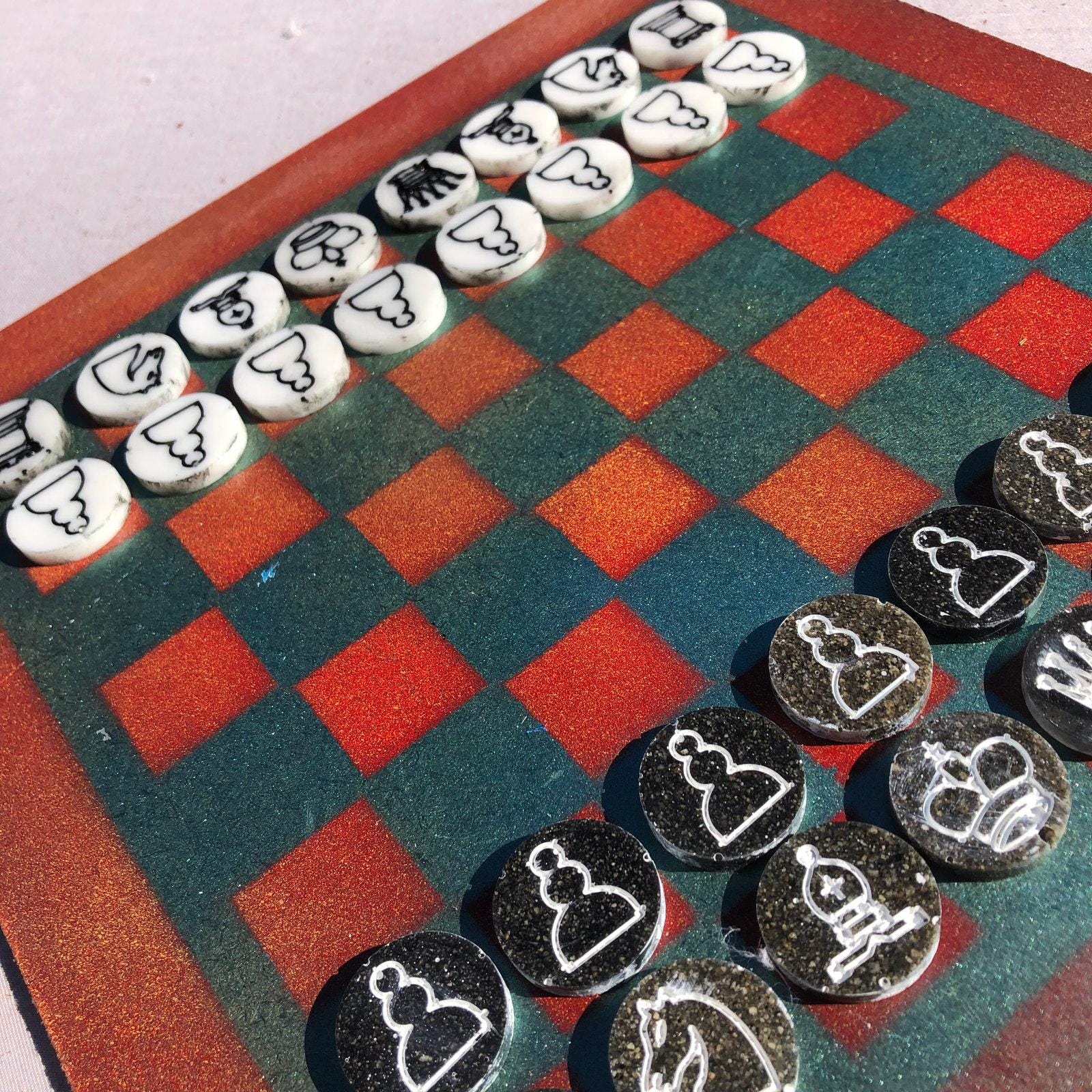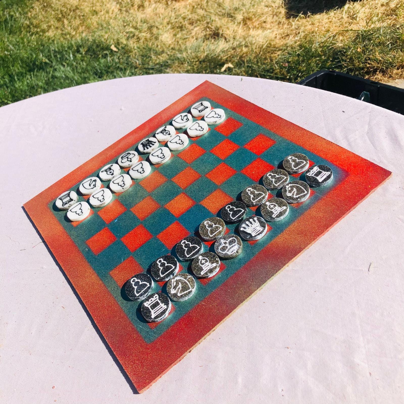 Introducing our exclusive Handcrafted Hardboard Chess Set, meticulously designed with precision and care. Measuring 12 inches by 12 inches, this chess set features a beautifully painted hardwood board that doubles as a work of art. Each set is a unique, one-of-a-kind creation, crafted by hand to ensure that no two sets are alike. Elevate your gaming experience with this exceptional chess set that combines vibrant design with the touch of artisan craftsmanship. This chess board comes with chess pieces.