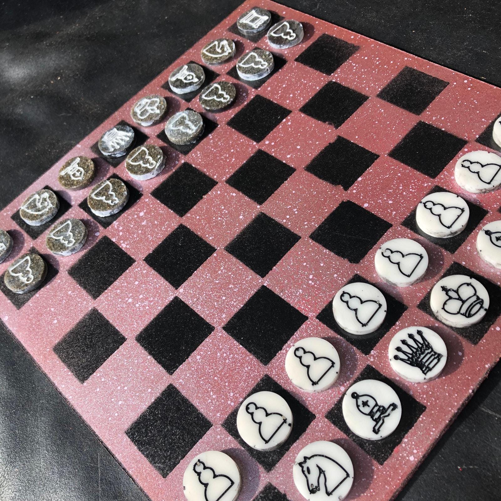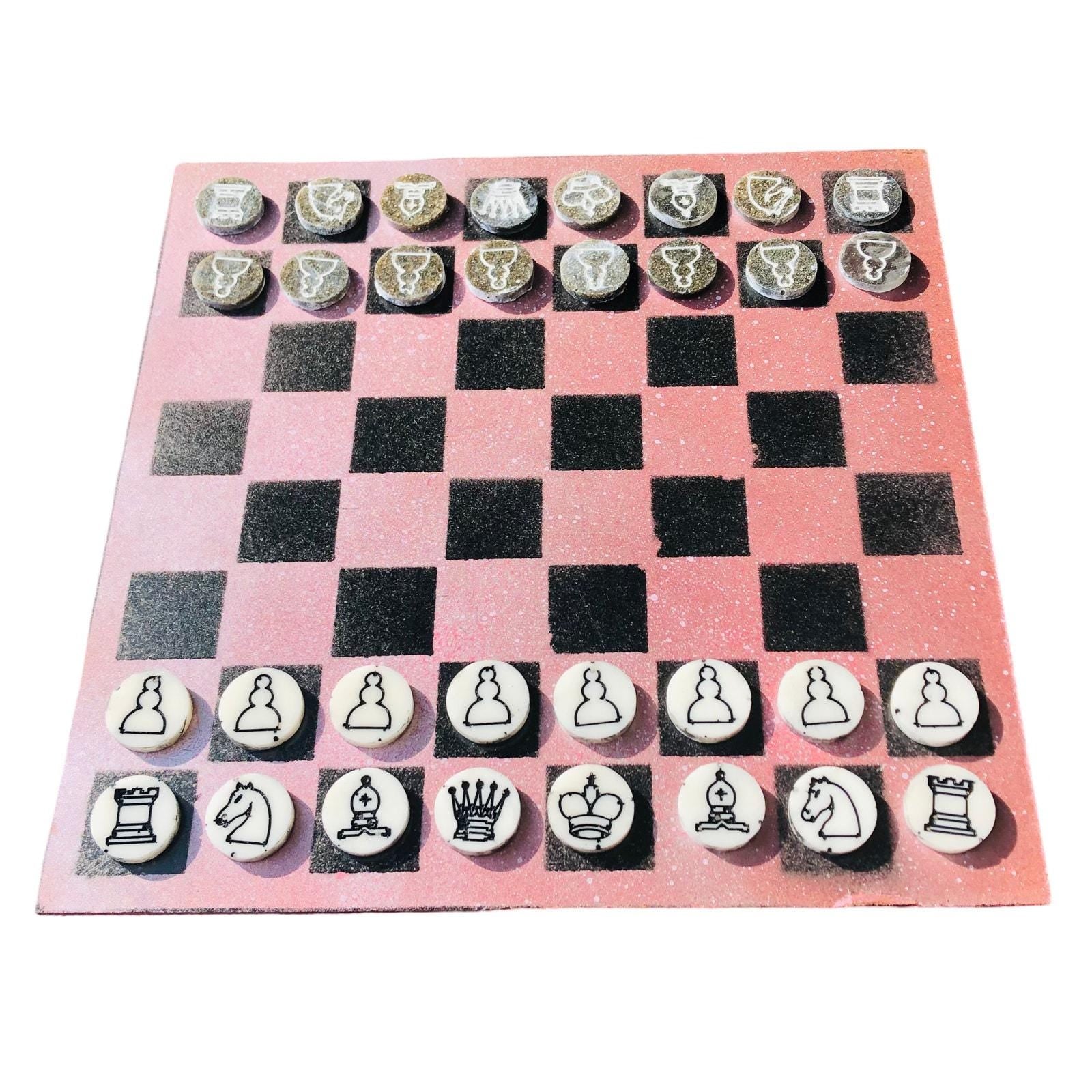 Introducing our exclusive Handcrafted Hardboard Chess Set, meticulously designed with precision and care. Measuring 12 inches by 12 inches, this chess set features a beautifully painted hardwood board that doubles as a work of art. Each set is a unique, one-of-a-kind creation, crafted by hand to ensure that no two sets are alike. Elevate your gaming experience with this exceptional chess set that combines vibrant design with the touch of artisan craftsmanship. This chess board comes with chess pieces.