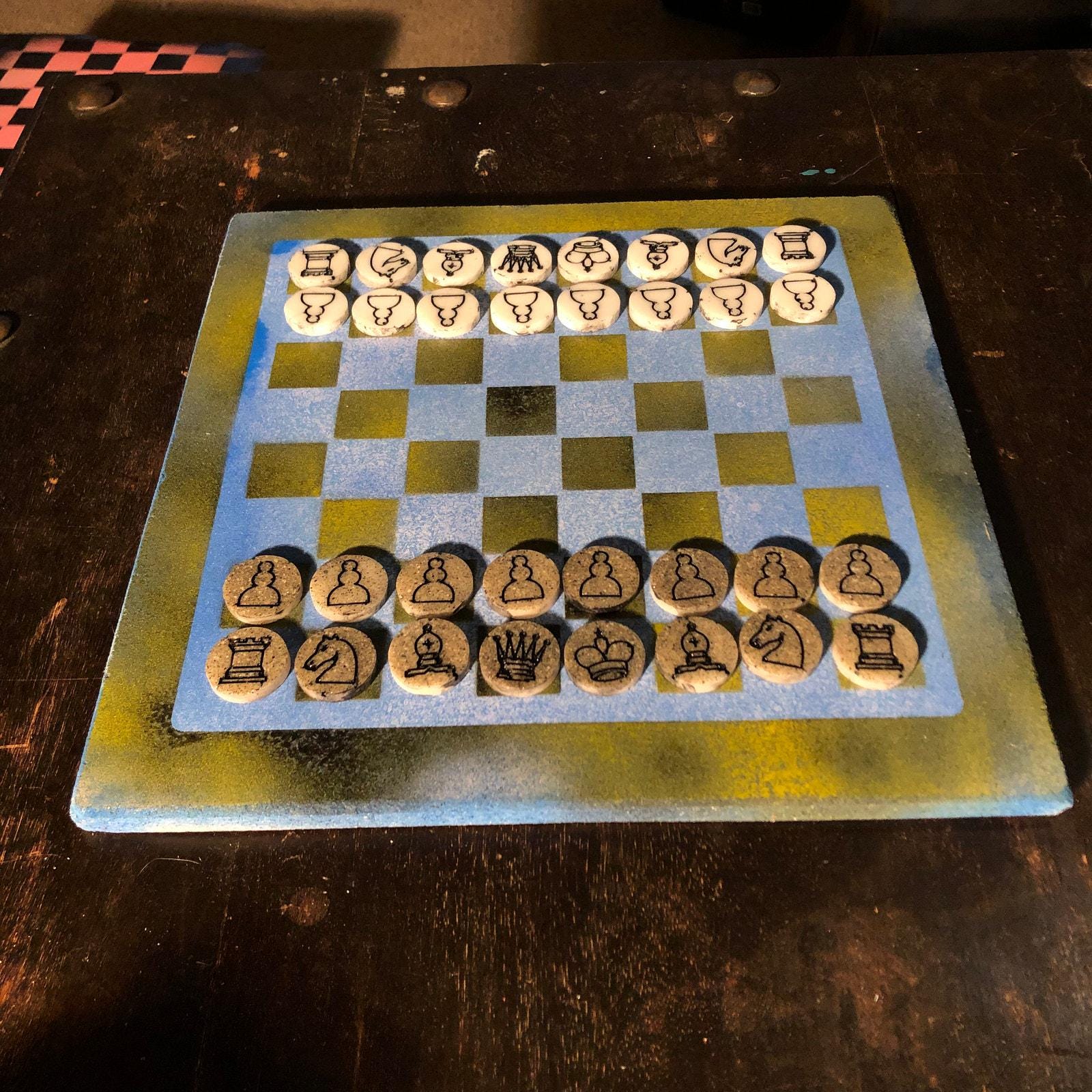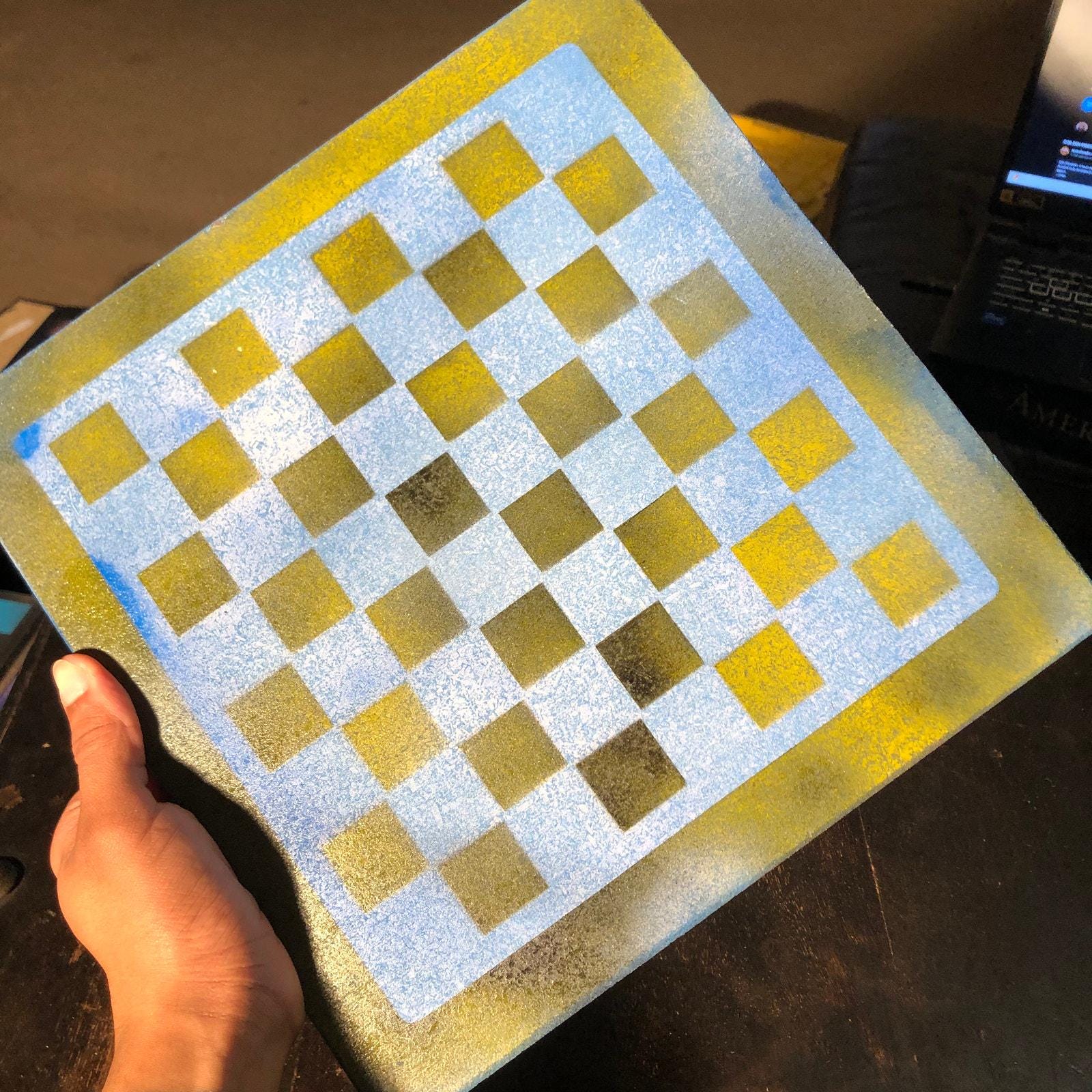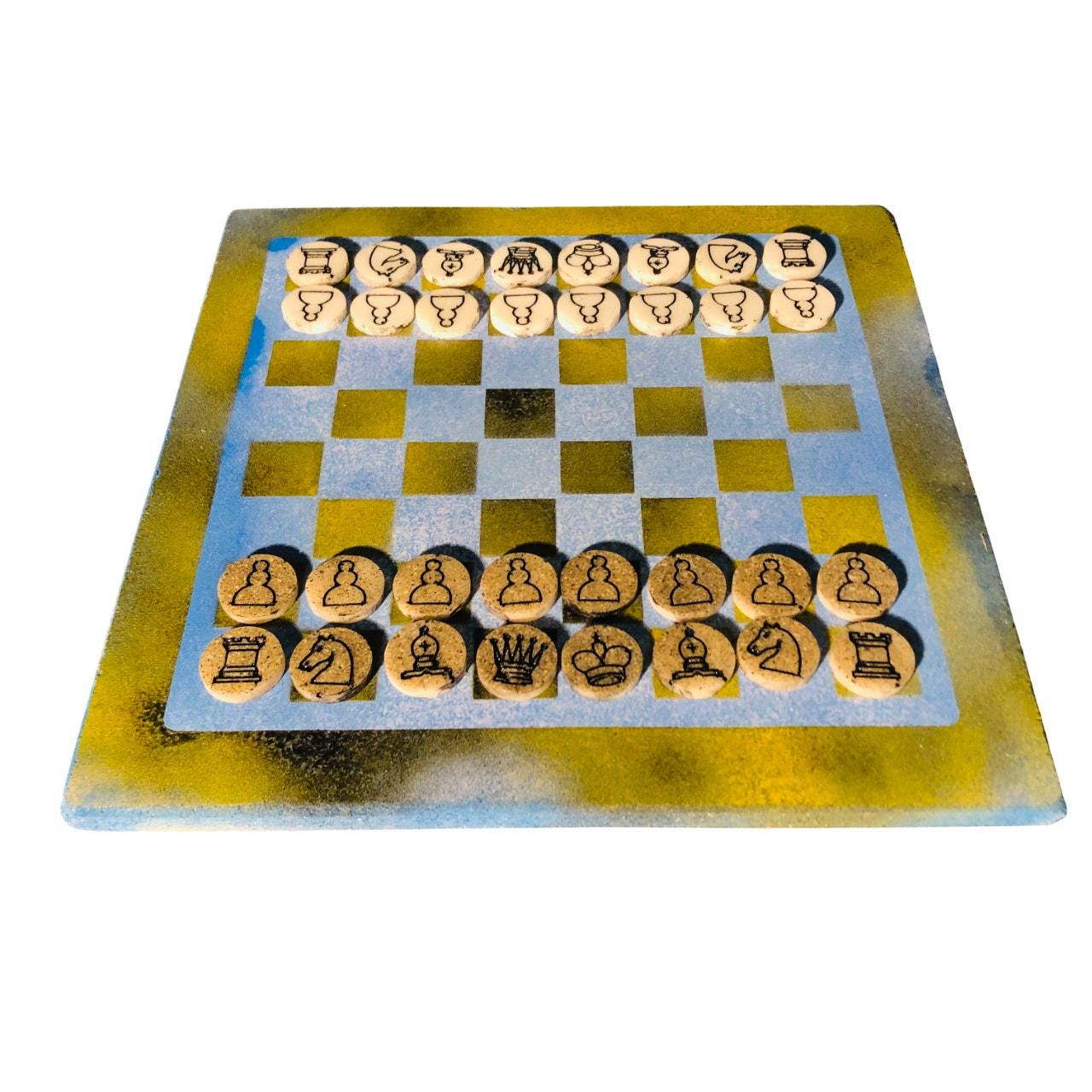 Introducing our exclusive Handcrafted Wooden Chess Set, meticulously designed with precision and care. Measuring 12 inches by 12 inches, this chess set features a beautifully painted Particle Board board that doubles as a work of art. Each set is a unique, one-of-a-kind creation, crafted by hand to ensure that no two sets are alike. Elevate your gaming experience with this exceptional chess set that combines vibrant design with the touch of artisan craftsmanship. This chess board comes with chess pieces.