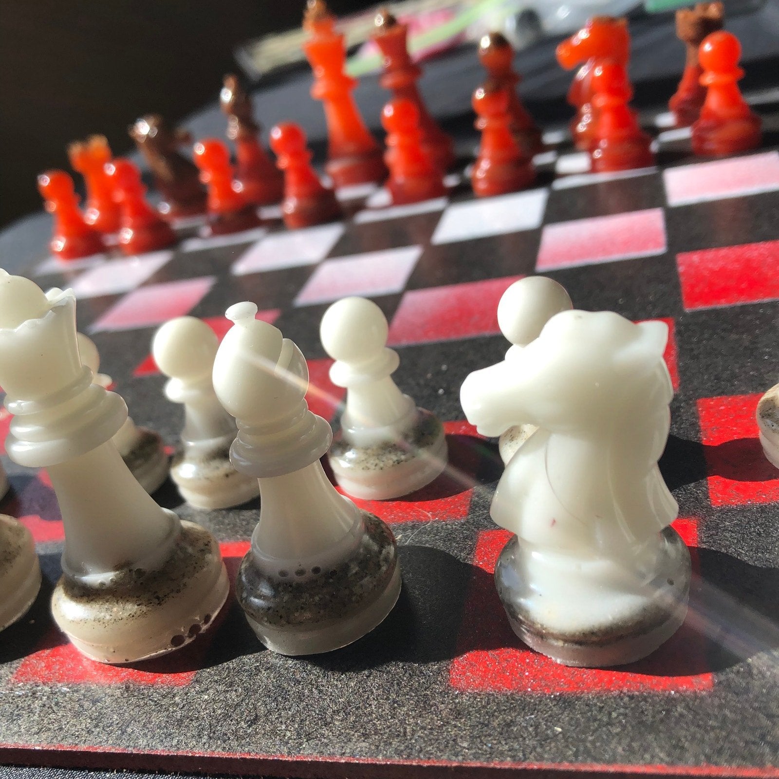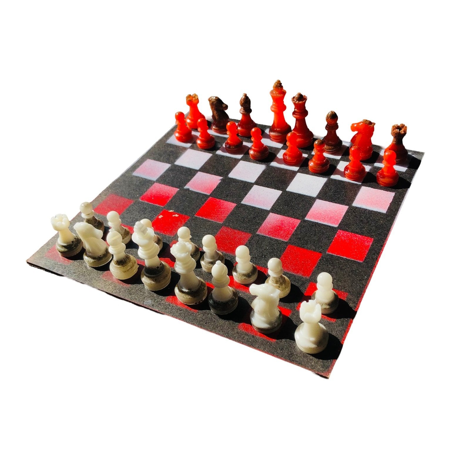 Introducing our exclusive Handcrafted Hardboard Chess Set, meticulously designed with precision and care. Measuring 12 inches by 12 inches, this chess set features a beautifully painted hardwood board that doubles as a work of art. Each set is a unique, one-of-a-kind creation, crafted by hand to ensure that no two sets are alike. Elevate your gaming experience with this exceptional chess set that combines vibrant design with the touch of artisan craftsmanship.