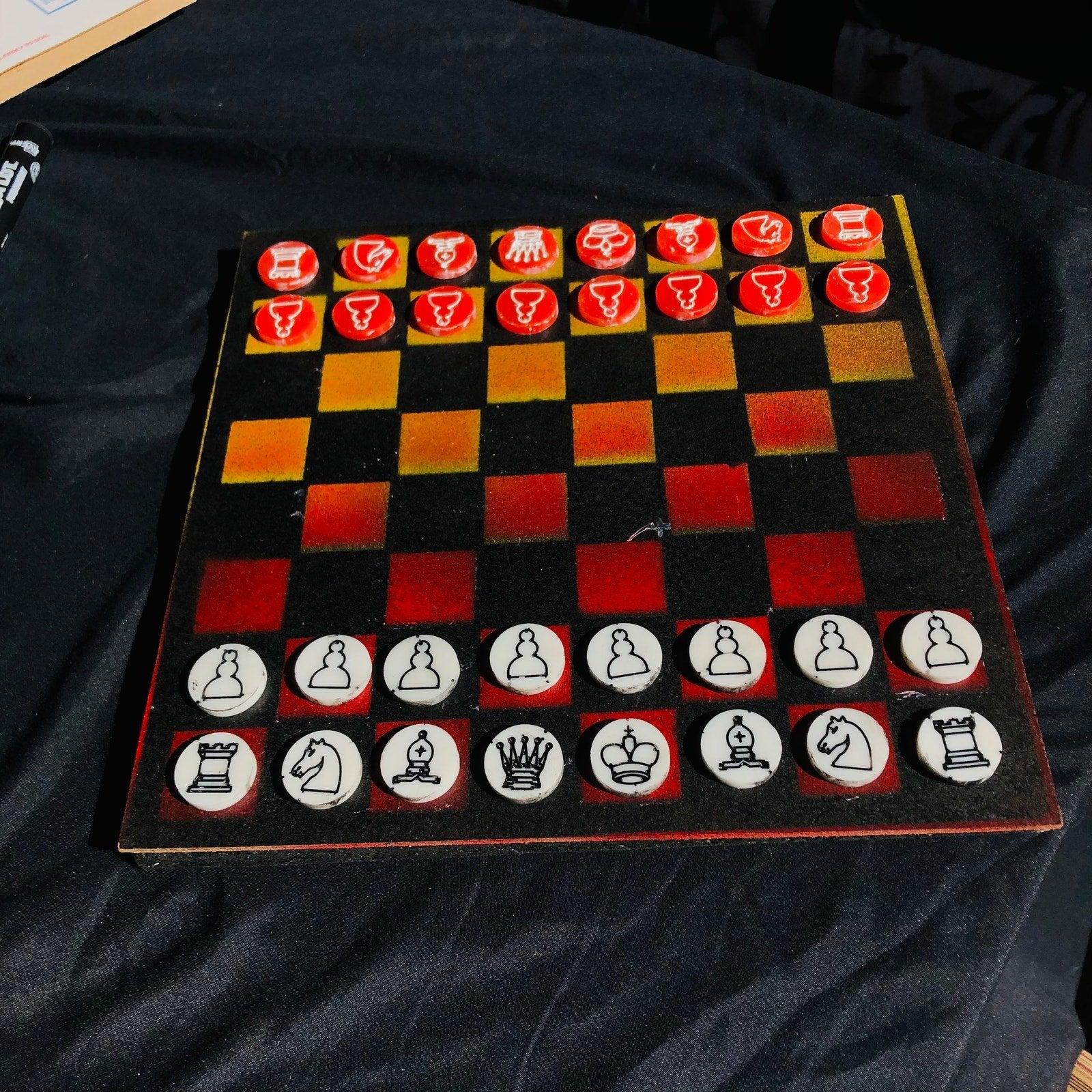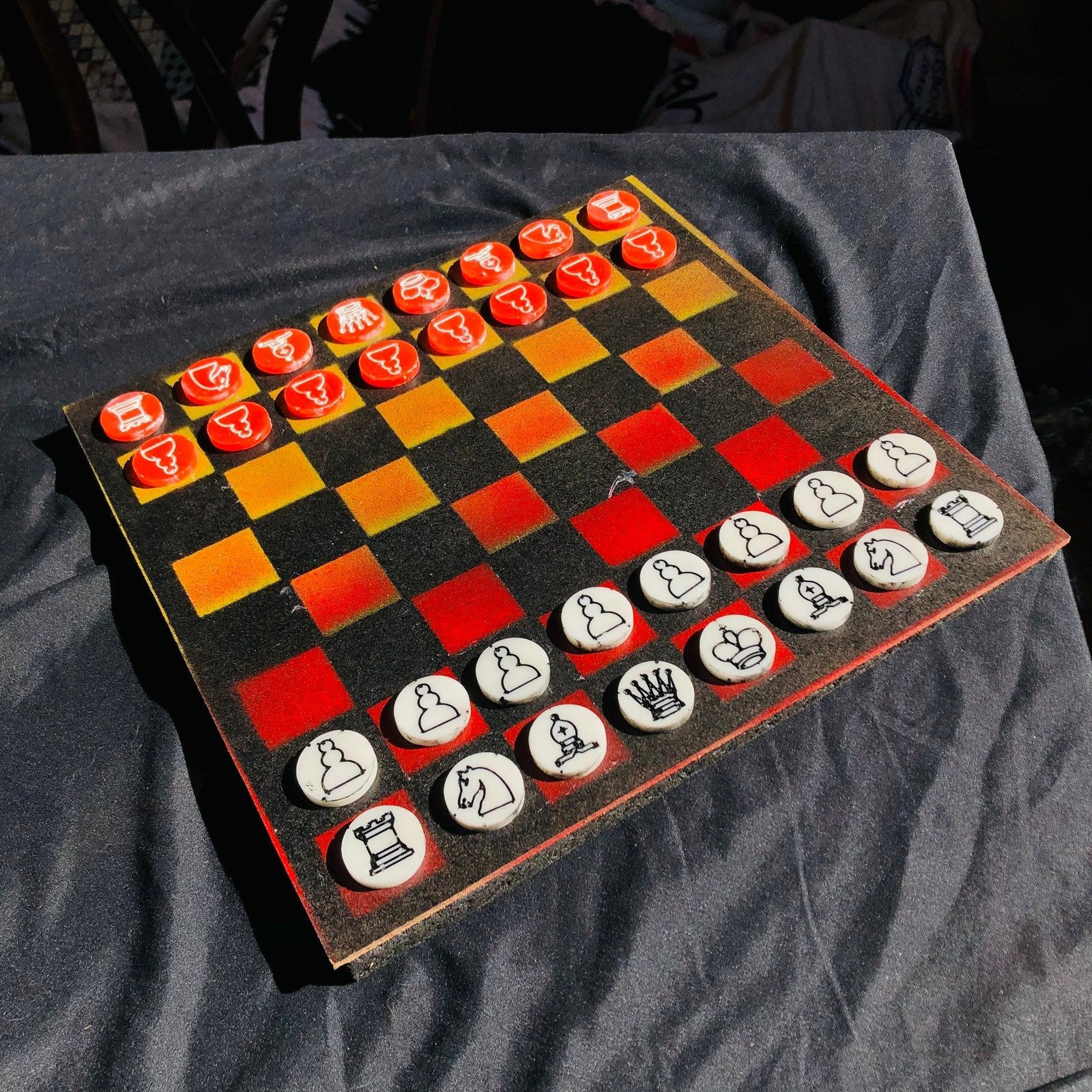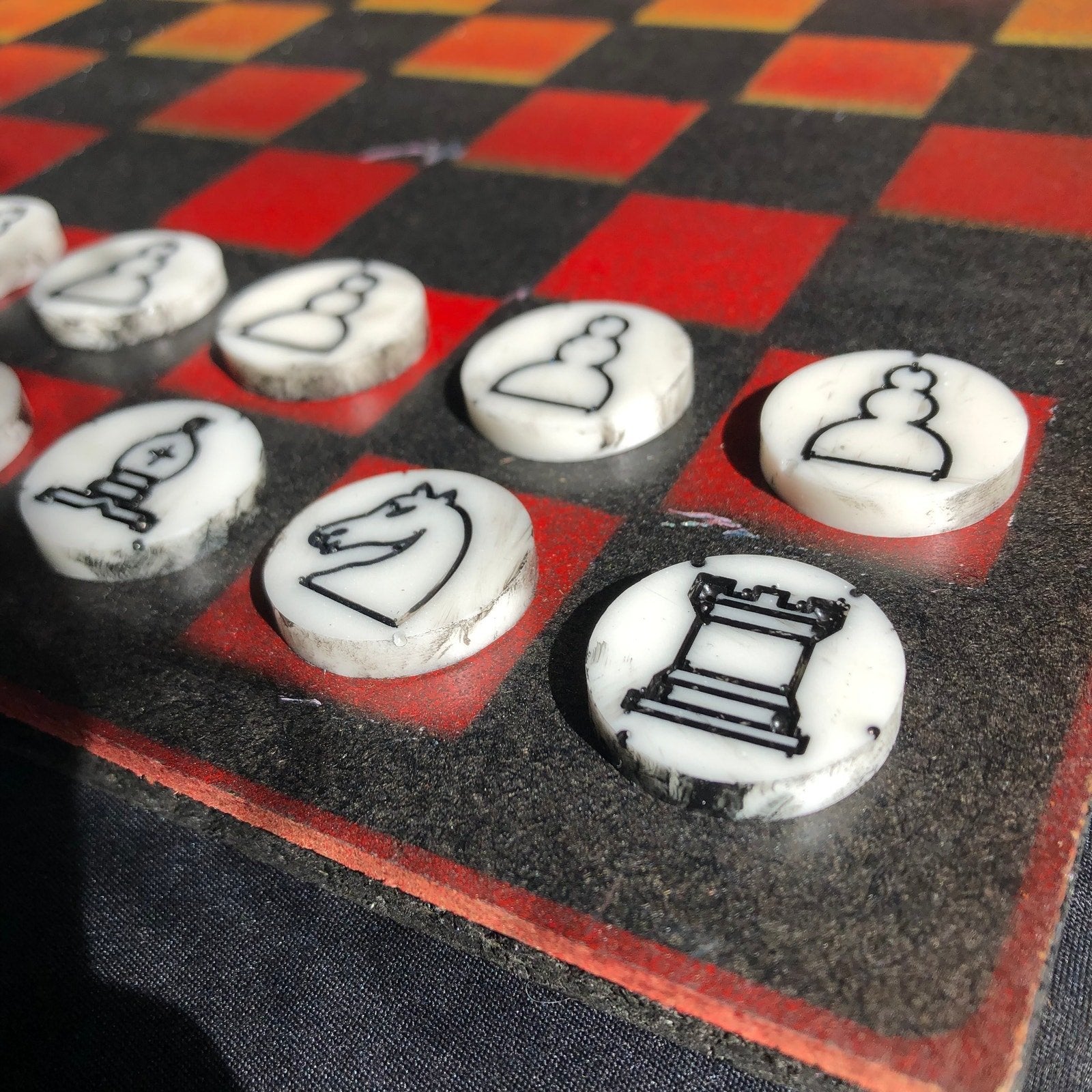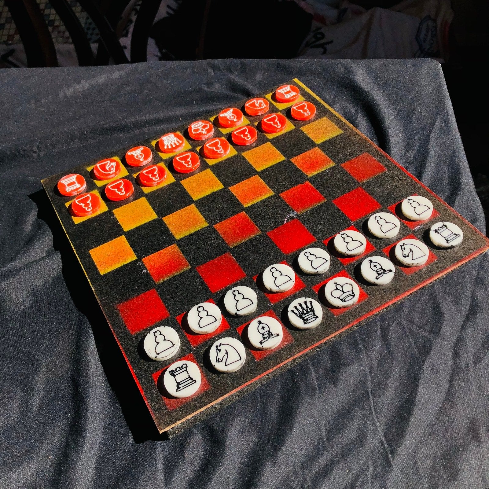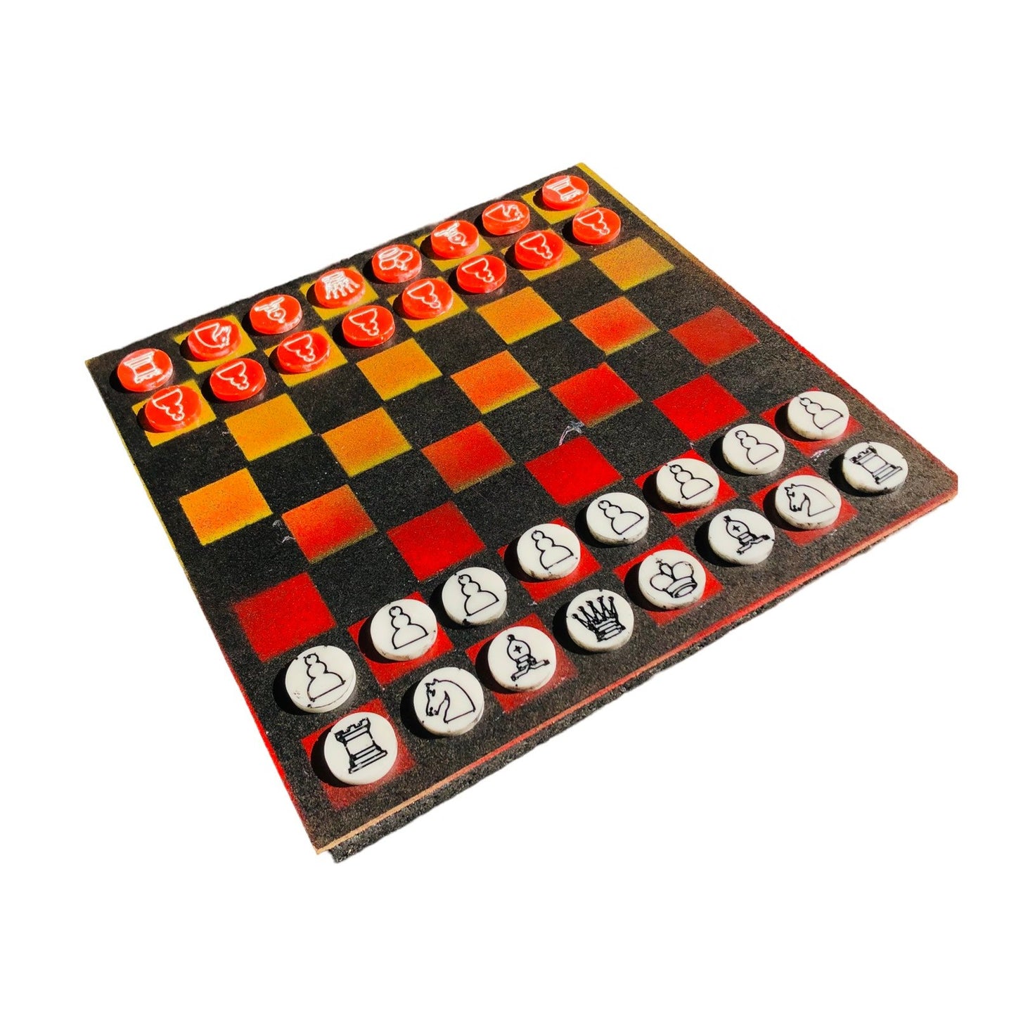 Introducing our exclusive Handcrafted Hardboard Chess Set, meticulously designed with precision and care. Measuring 12 inches by 12 inches, this chess set features a beautifully painted hardwood board that doubles as a work of art. Each set is a unique, one-of-a-kind creation, crafted by hand to ensure that no two sets are alike. Elevate your gaming experience with this exceptional chess set that combines vibrant design with the touch of artisan craftsmanship.
