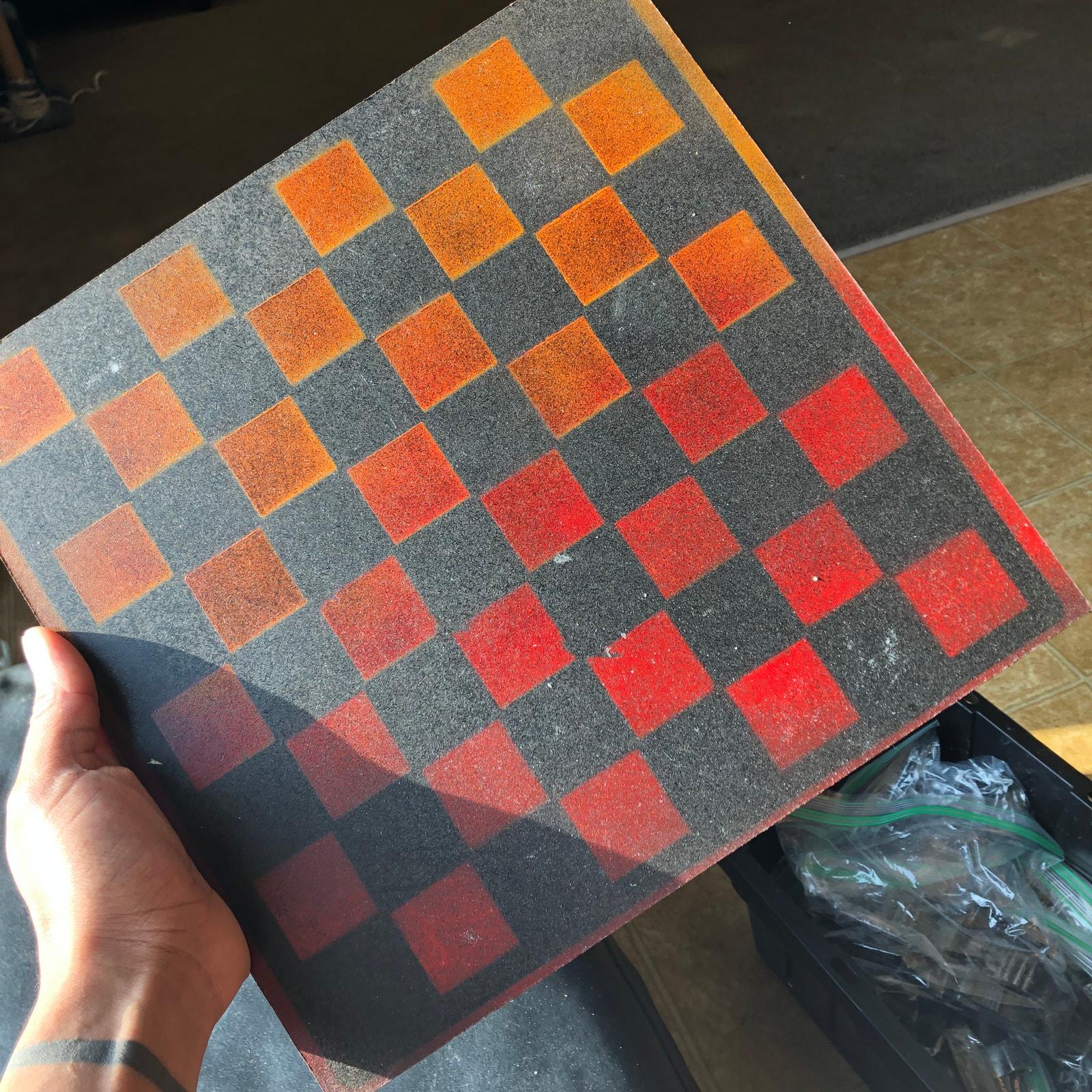 Introducing our exclusive Handcrafted Hardboard Chess Set, meticulously designed with precision and care. Measuring 12 inches by 12 inches, this chess set features a beautifully painted hardwood board that doubles as a work of art. Each set is a unique, one-of-a-kind creation, crafted by hand to ensure that no two sets are alike. Elevate your gaming experience with this exceptional chess set that combines vibrant design with the touch of artisan craftsmanship. This chess board comes with chess pieces.