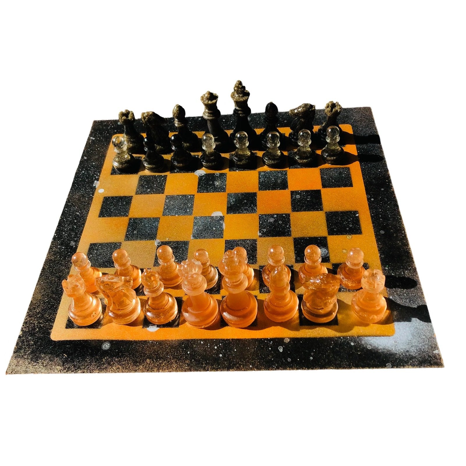 Introducing our exclusive Handcrafted Hardboard Chess Set, meticulously designed with precision and care. Measuring 12 inches by 12 inches, this chess set features a beautifully painted hardwood board that doubles as a work of art. Each set is a unique, one-of-a-kind creation, crafted by hand to ensure that no two sets are alike. Elevate your gaming experience with this exceptional chess set that combines vibrant design with the touch of artisan craftsmanship.