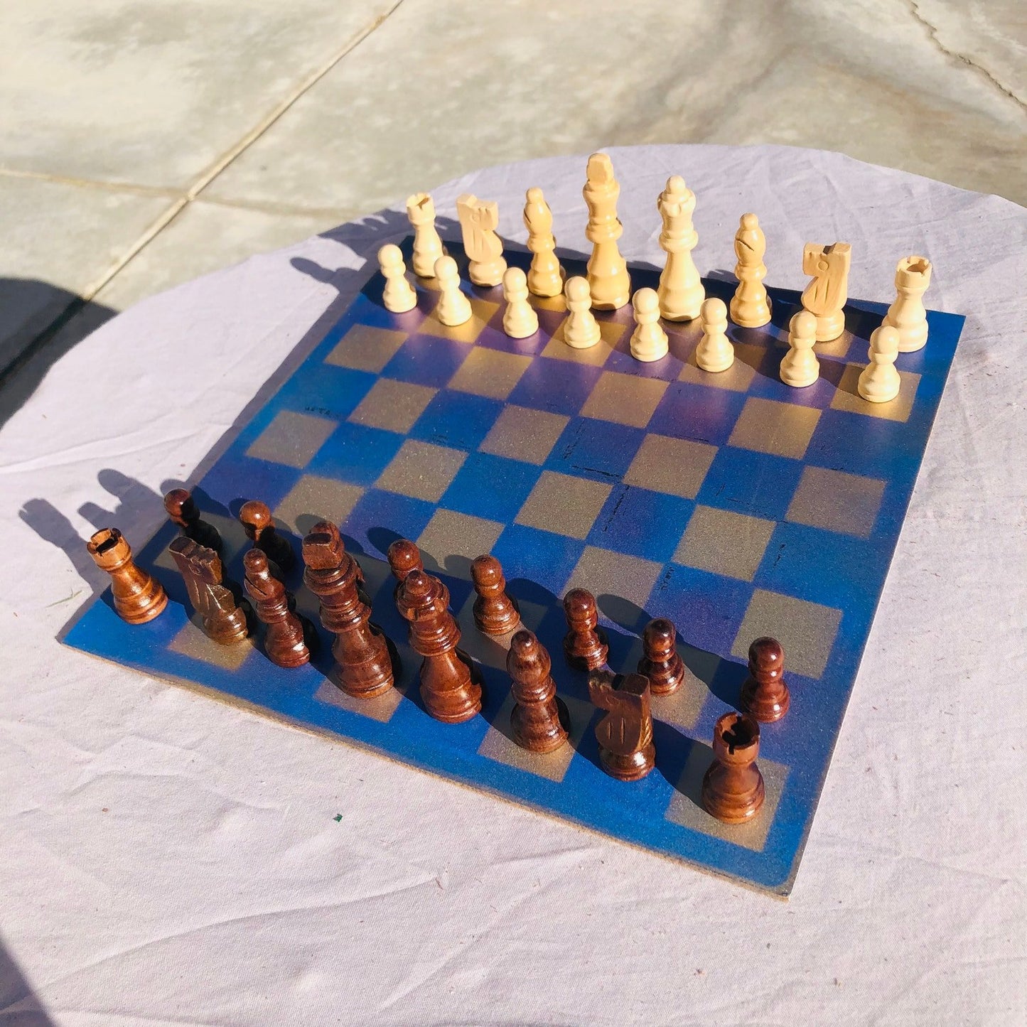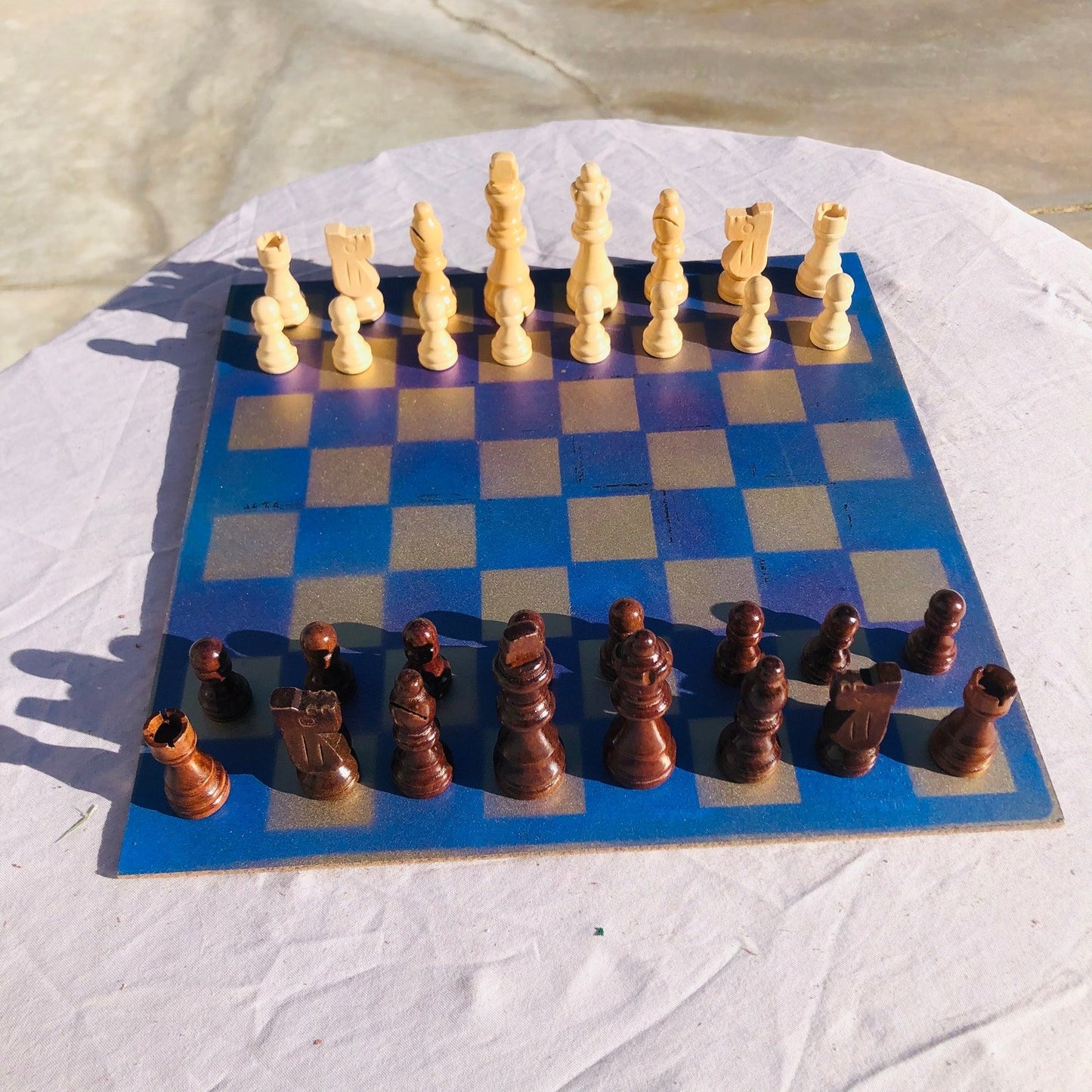 Introducing our exclusive Handcrafted Hardboard Chess Set, meticulously designed with precision and care. Measuring 12 inches by 12 inches, this chess set features a beautifully painted hardwood board that doubles as a work of art. Each set is a unique, one-of-a-kind creation, crafted by hand to ensure that no two sets are alike. Elevate your gaming experience with this exceptional chess set that combines vibrant design with the touch of artisan craftsmanship.