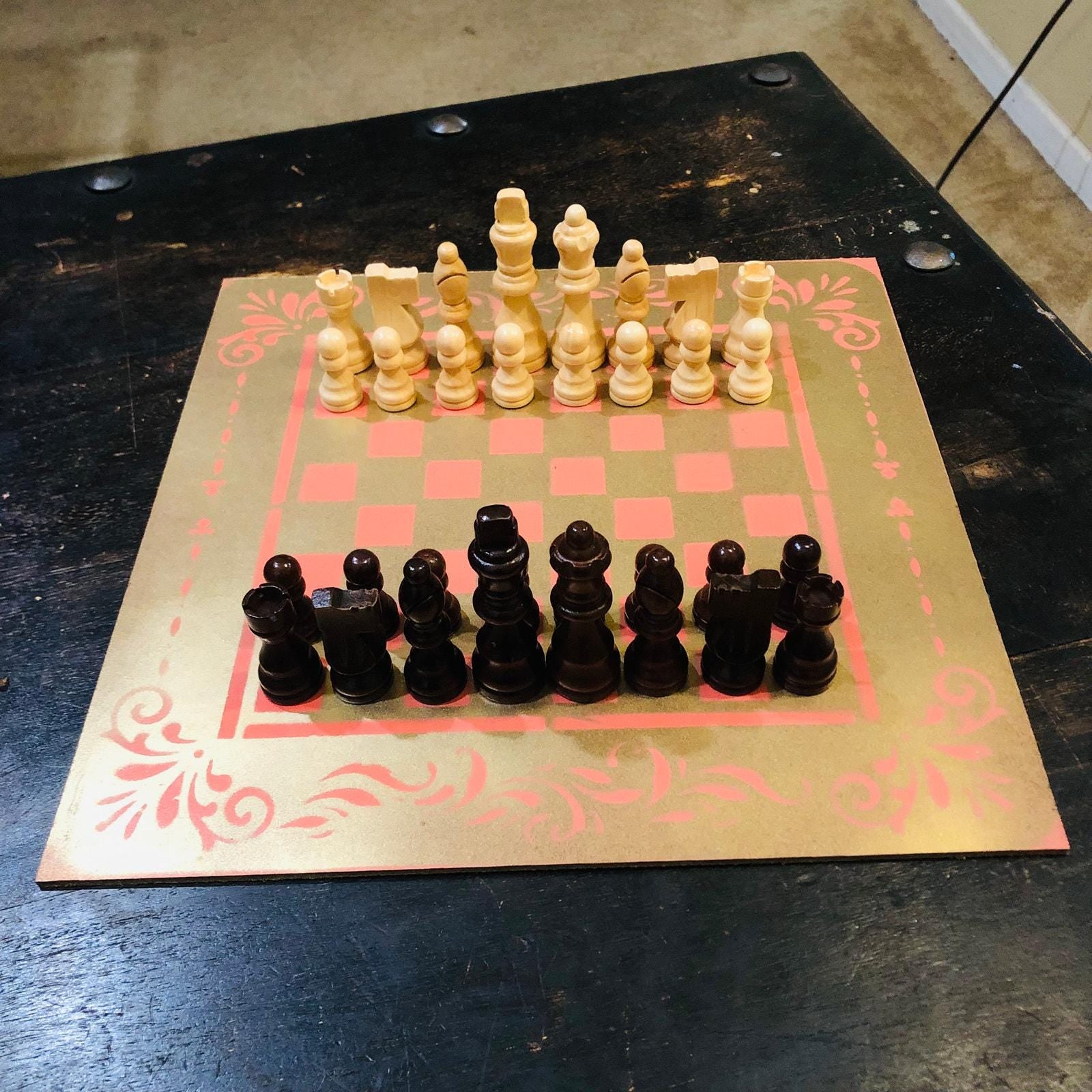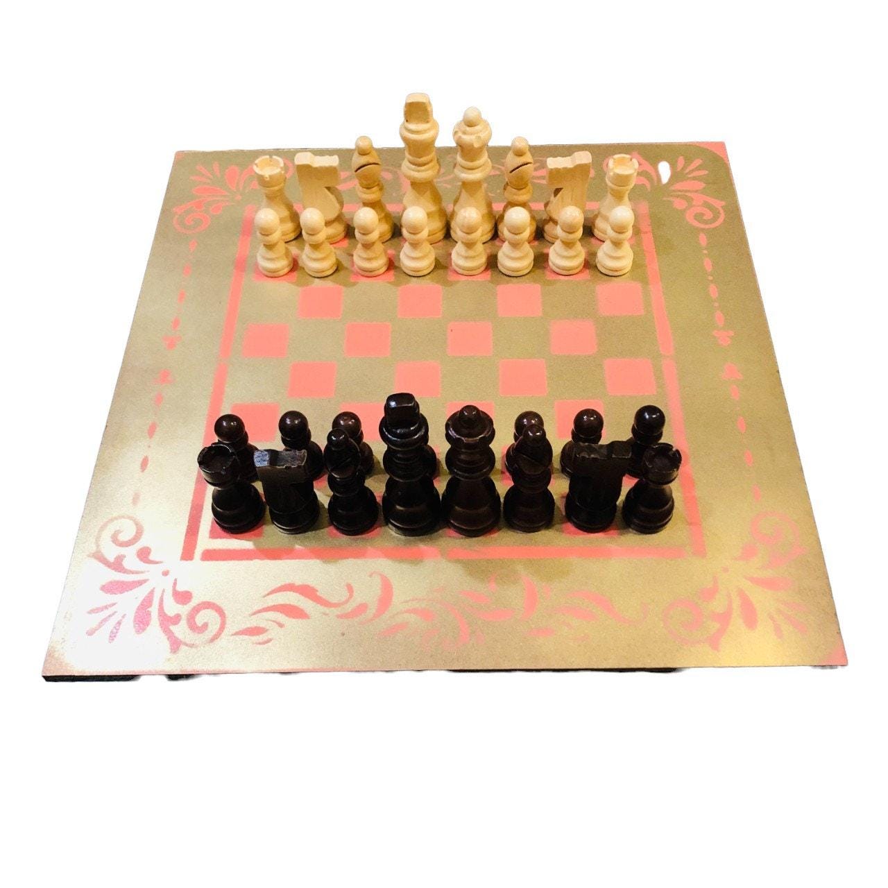 Introducing our exclusive Handcrafted Hardboard Chess Set, meticulously designed with precision and care. Measuring 12 inches by 12 inches, this chess set features a beautifully painted hardwood board that doubles as a work of art. Each set is a unique, one-of-a-kind creation, crafted by hand to ensure that no two sets are alike. Elevate your gaming experience with this exceptional chess set that combines vibrant design with the touch of artisan craftsmanship.