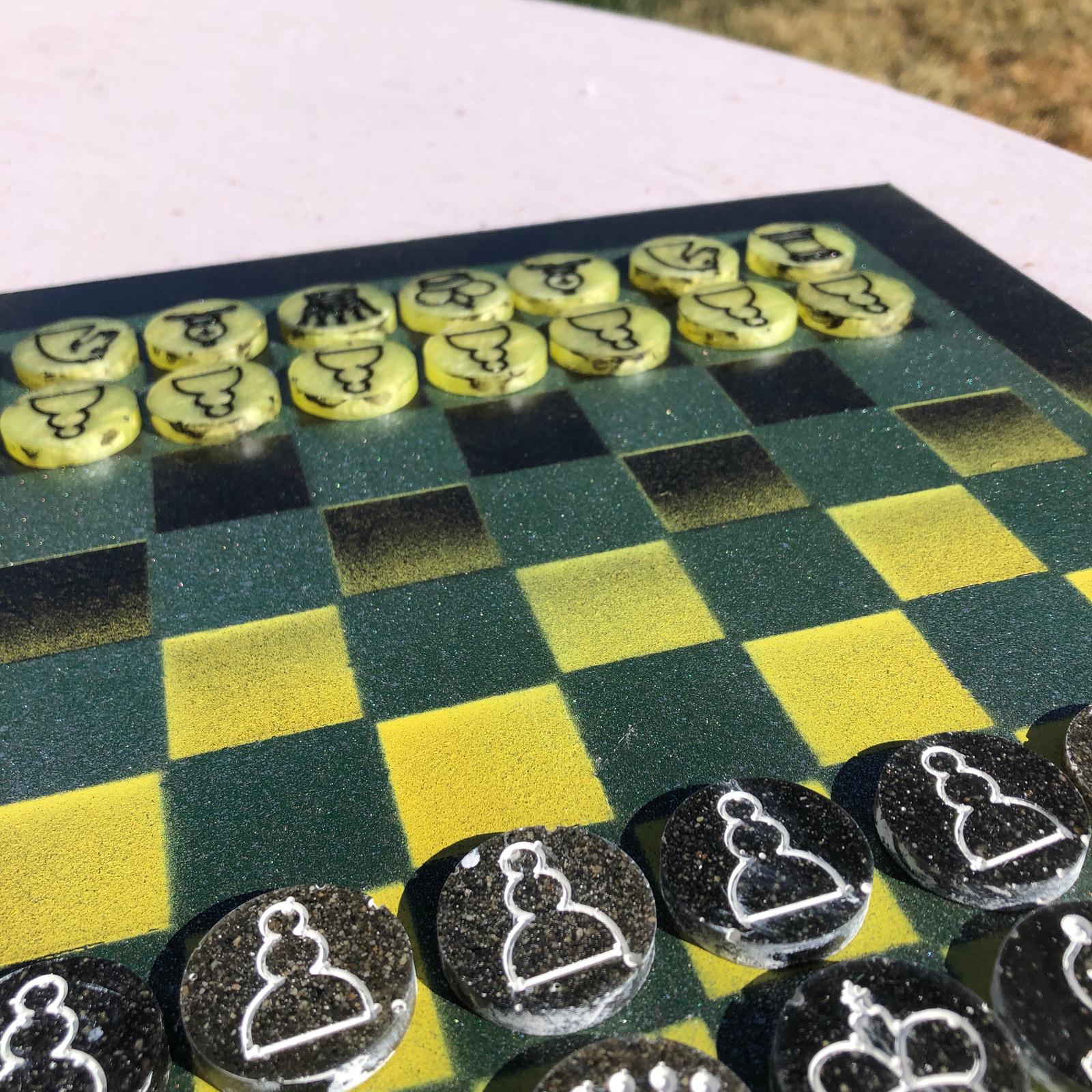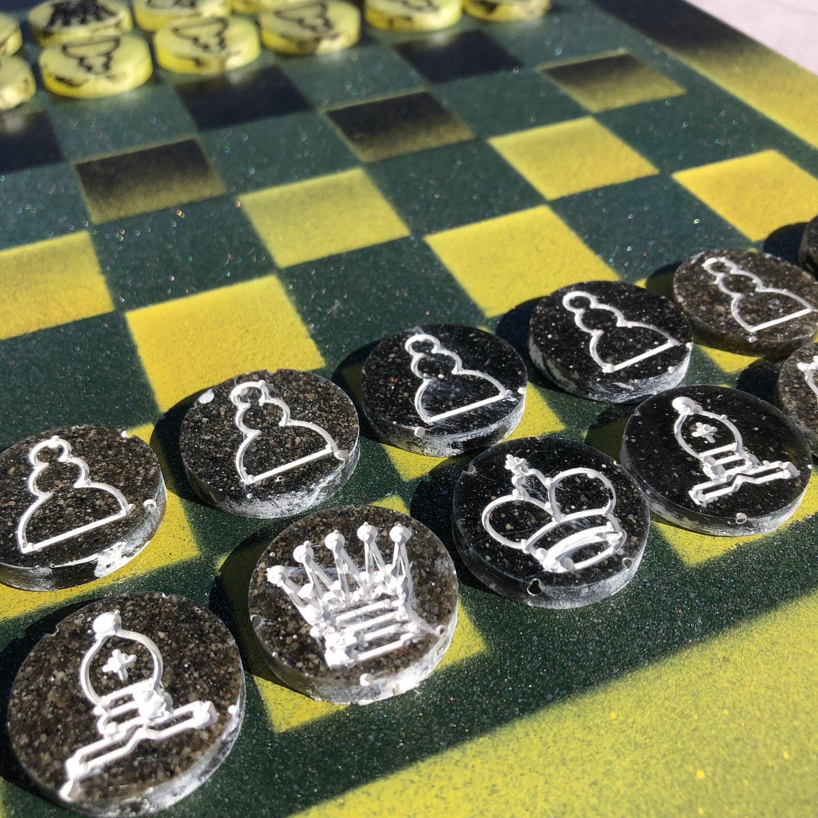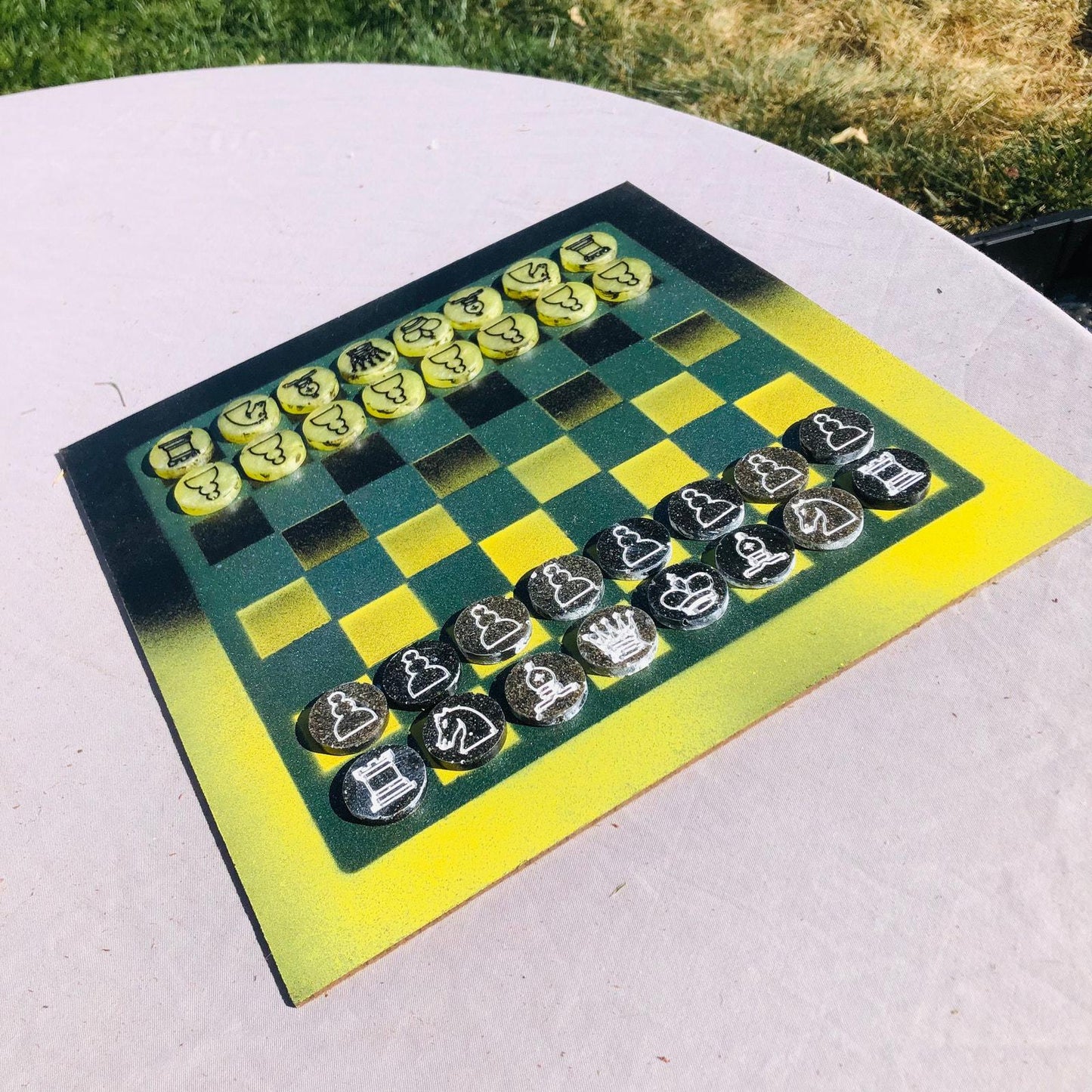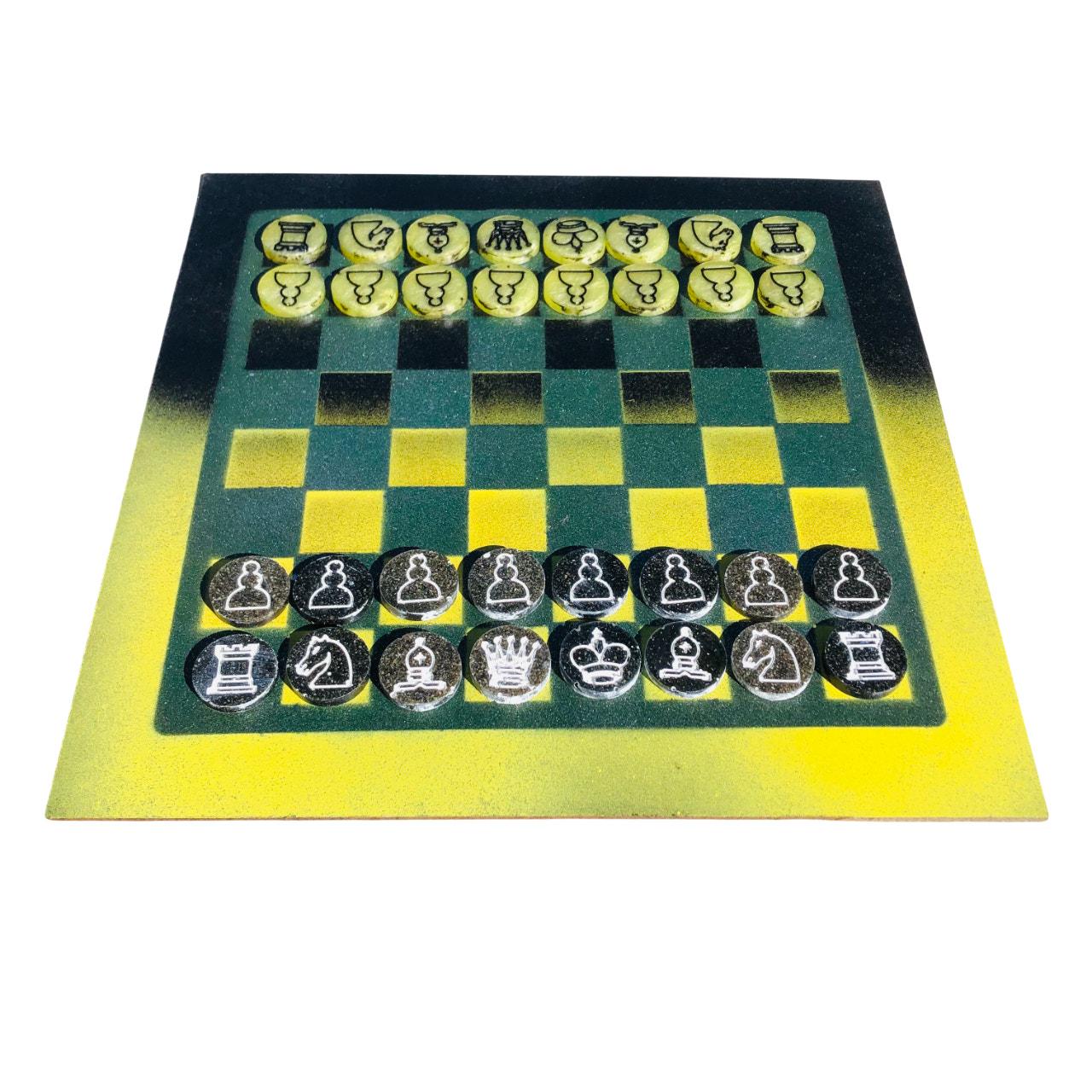 Introducing our exclusive Handcrafted Hardboard Chess Set, meticulously designed with precision and care. Measuring 12 inches by 12 inches, this chess set features a beautifully painted hardwood board that doubles as a work of art. Each set is a unique, one-of-a-kind creation, crafted by hand to ensure that no two sets are alike. Elevate your gaming experience with this exceptional chess set that combines vibrant design with the touch of artisan craftsmanship. This chess board comes with chess pieces.