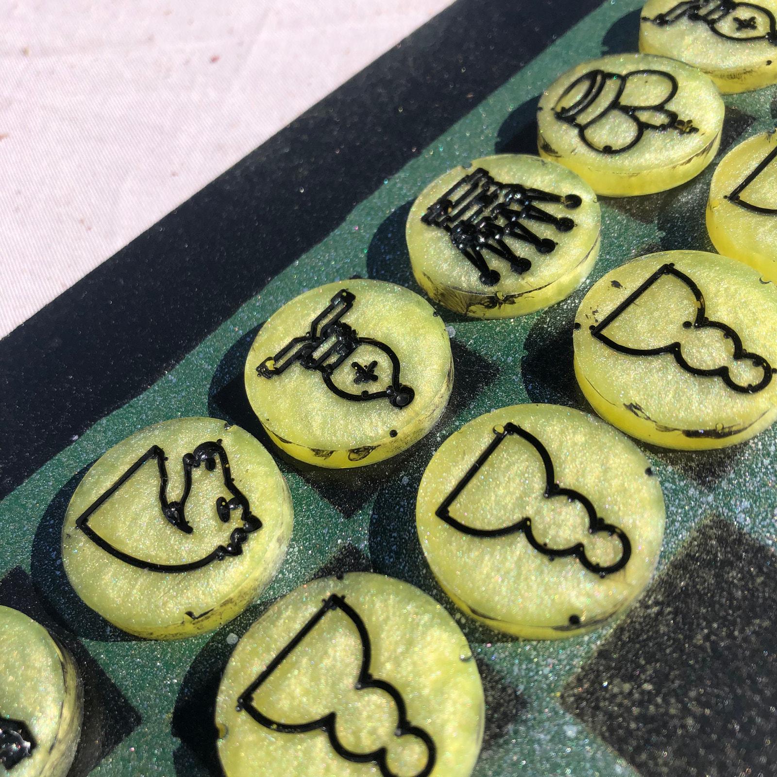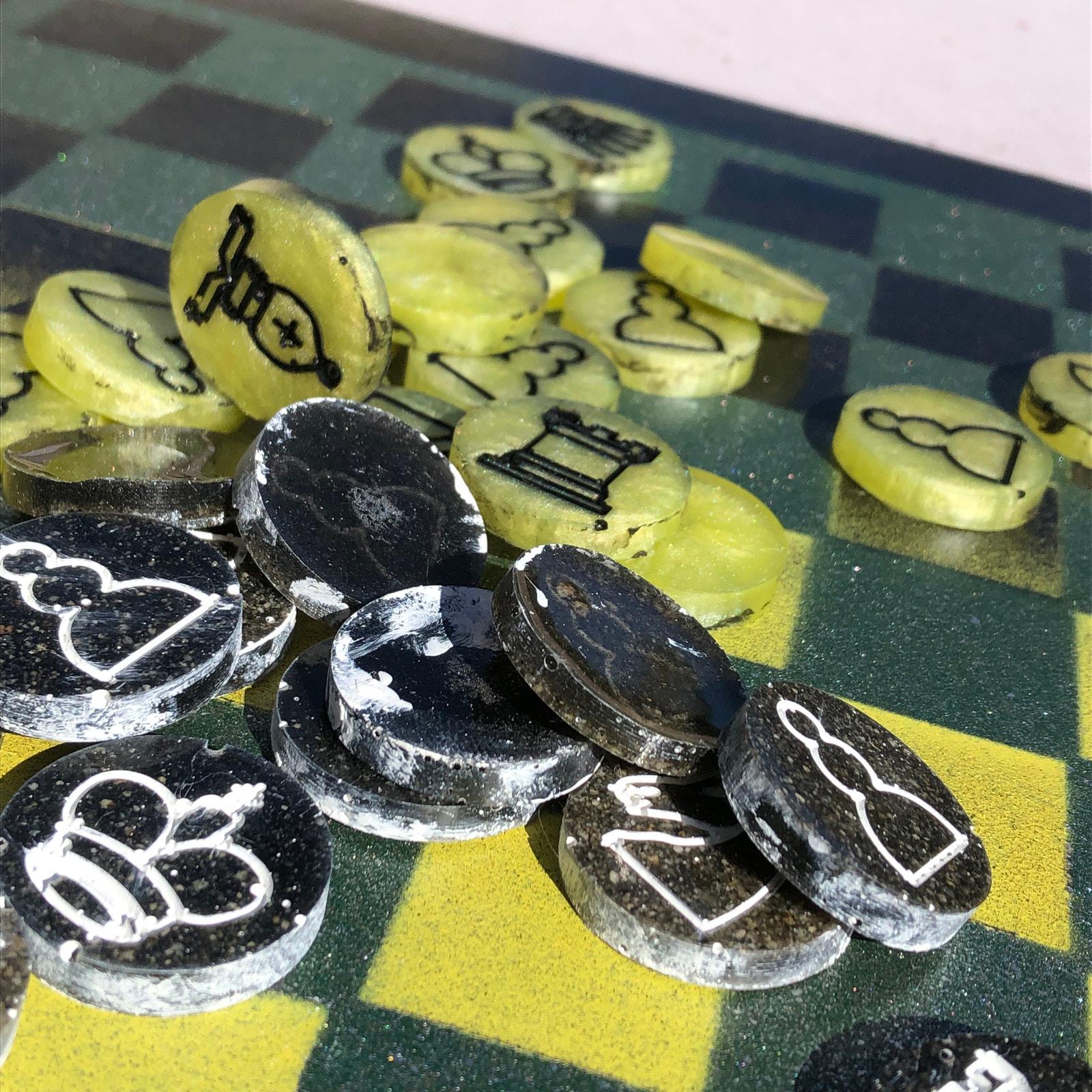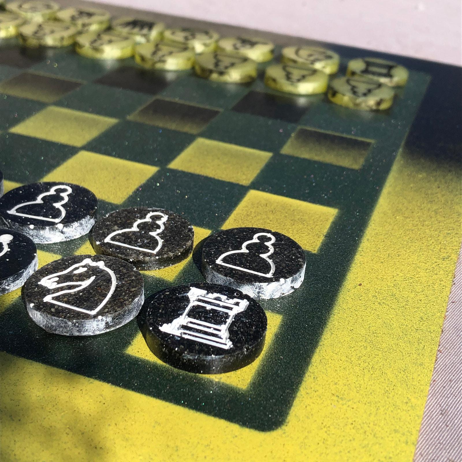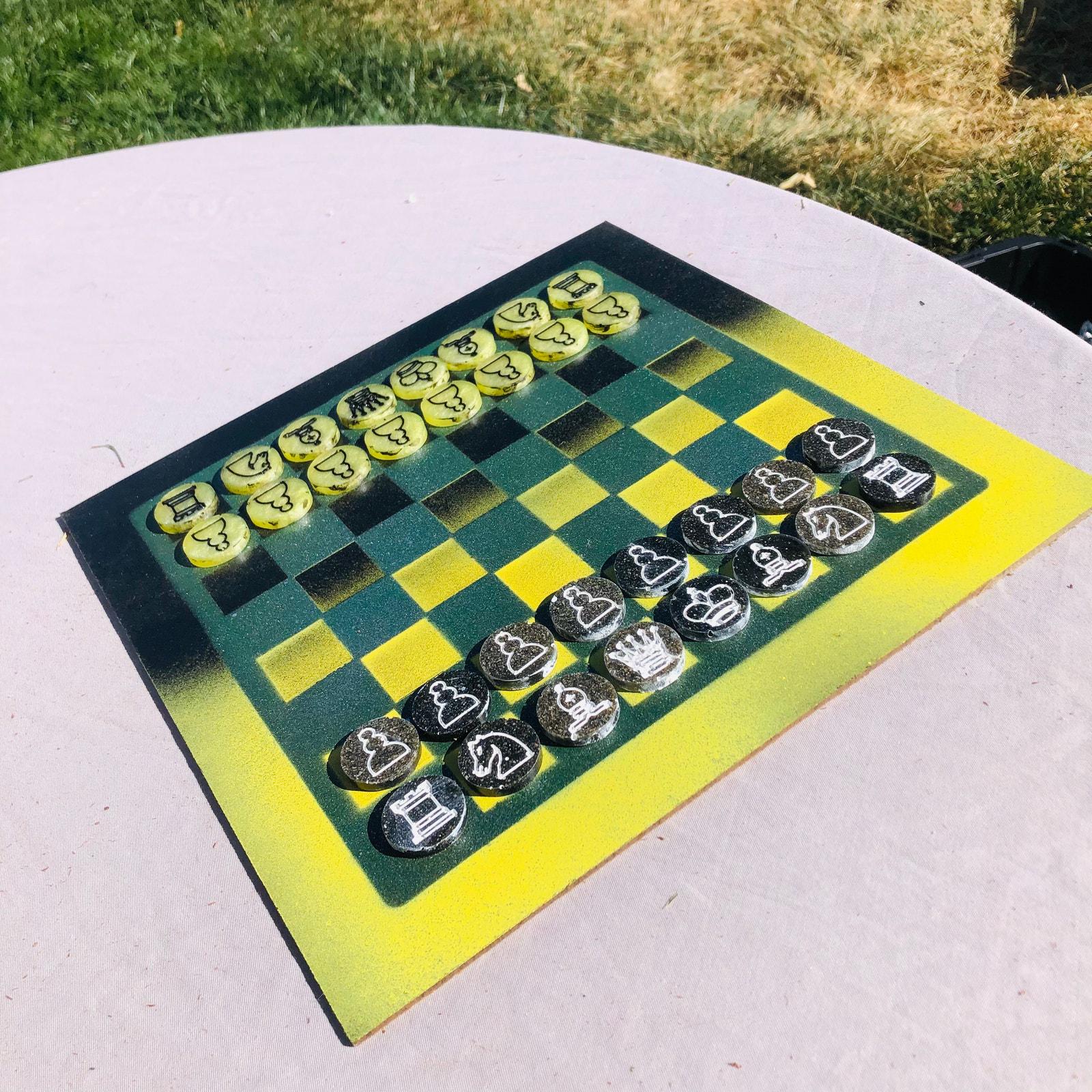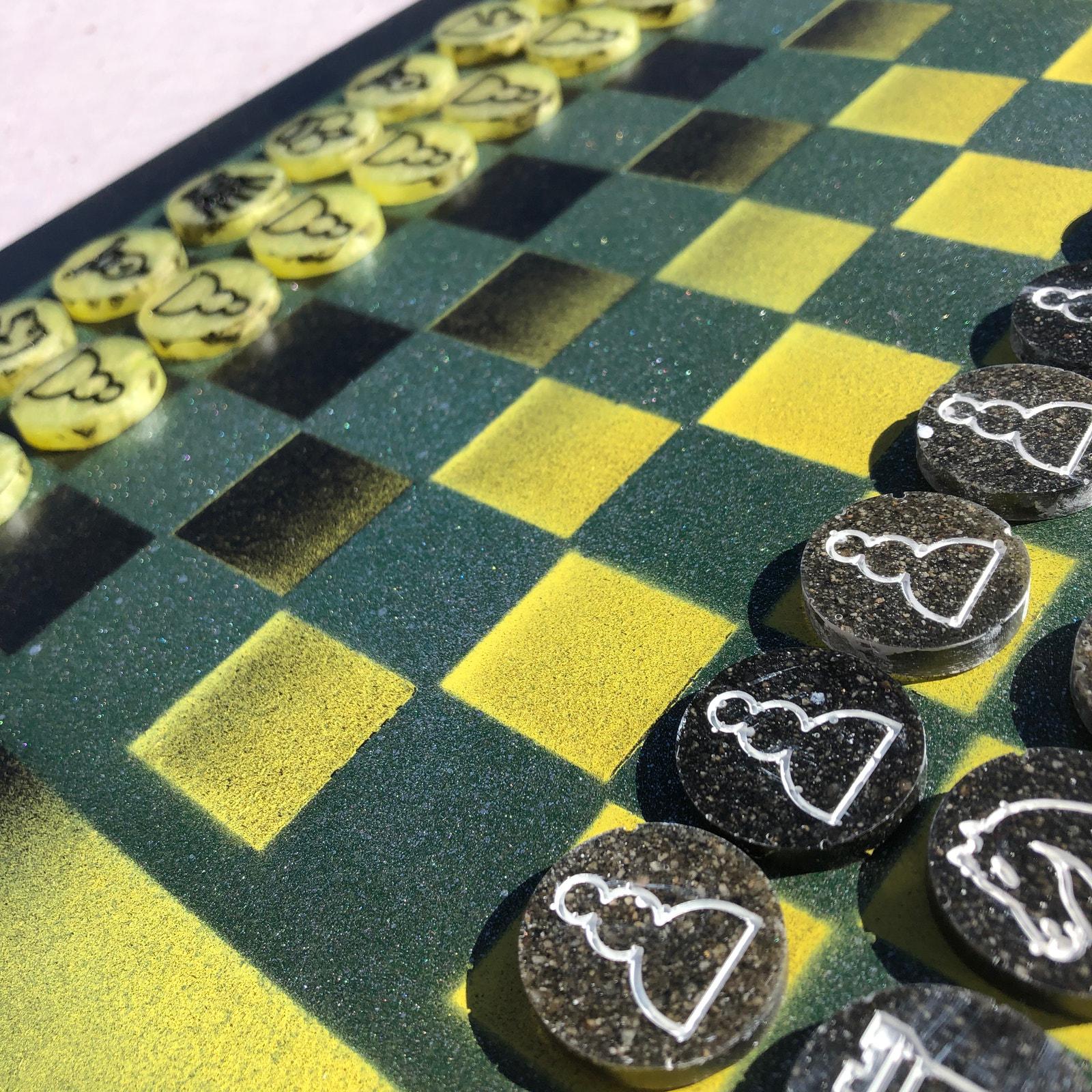 Introducing our exclusive Handcrafted Hardboard Chess Set, meticulously designed with precision and care. Measuring 12 inches by 12 inches, this chess set features a beautifully painted hardwood board that doubles as a work of art. Each set is a unique, one-of-a-kind creation, crafted by hand to ensure that no two sets are alike. Elevate your gaming experience with this exceptional chess set that combines vibrant design with the touch of artisan craftsmanship. This chess board comes with chess pieces.