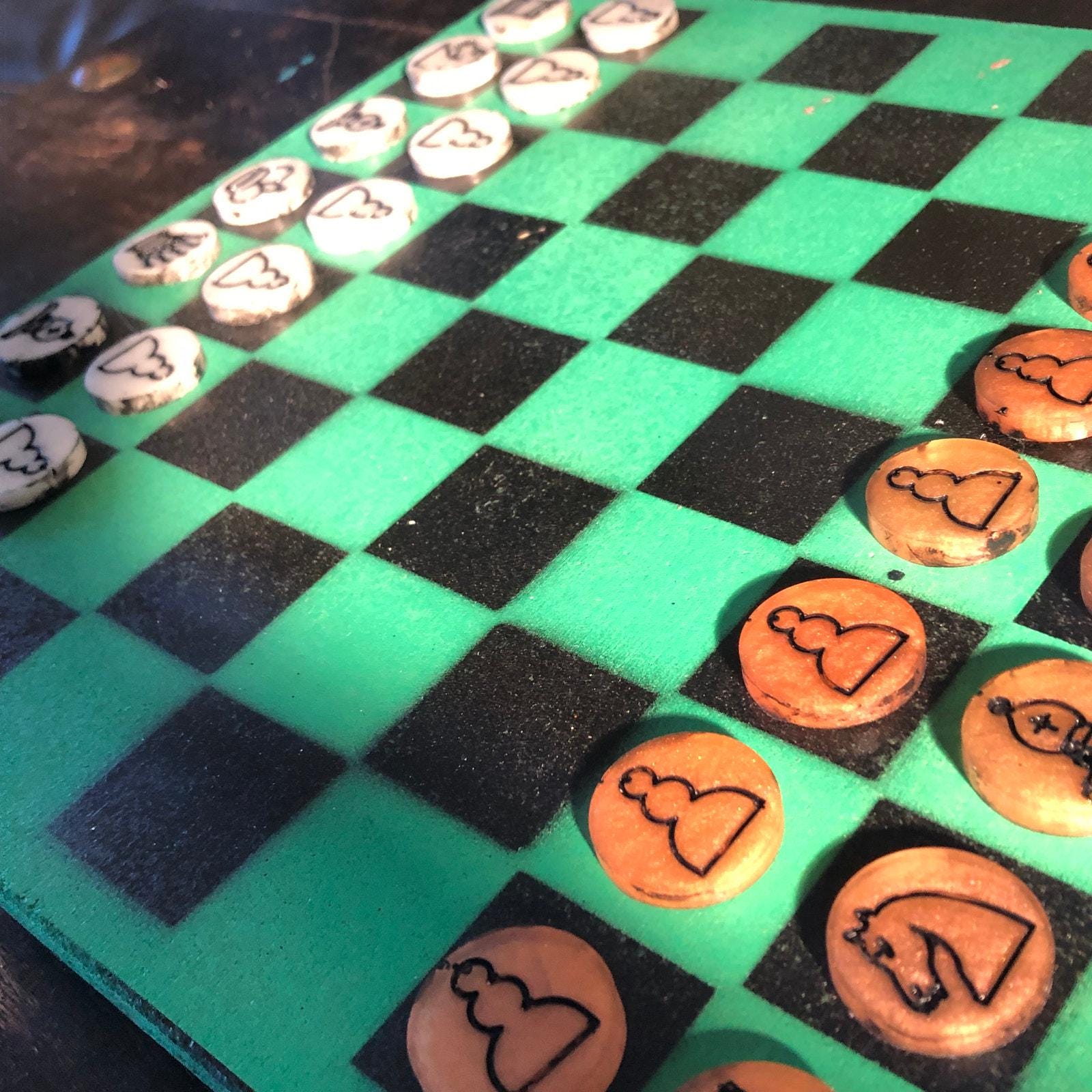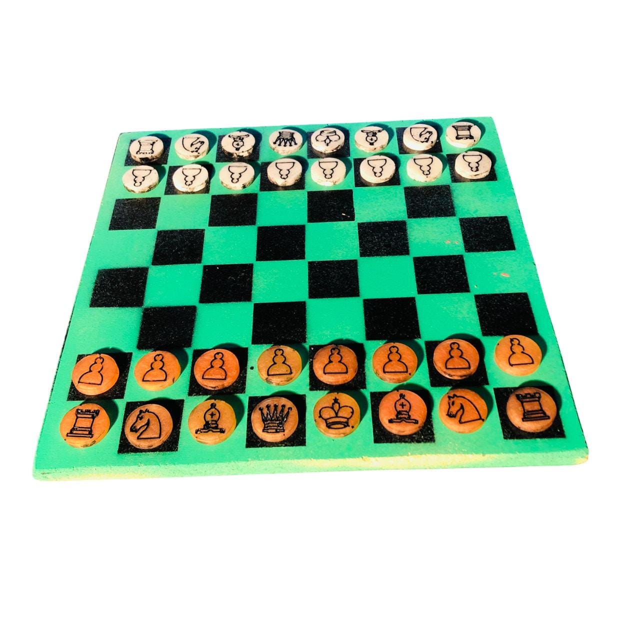 Introducing our exclusive Handcrafted Wooden Chess Set, meticulously designed with precision and care. Measuring 12 inches by 12 inches, this chess set features a beautifully painted Particle Board board that doubles as a work of art. Each set is a unique, one-of-a-kind creation, crafted by hand to ensure that no two sets are alike. Elevate your gaming experience with this exceptional chess set that combines vibrant design with the touch of artisan craftsmanship. This chess board comes with chess pieces.