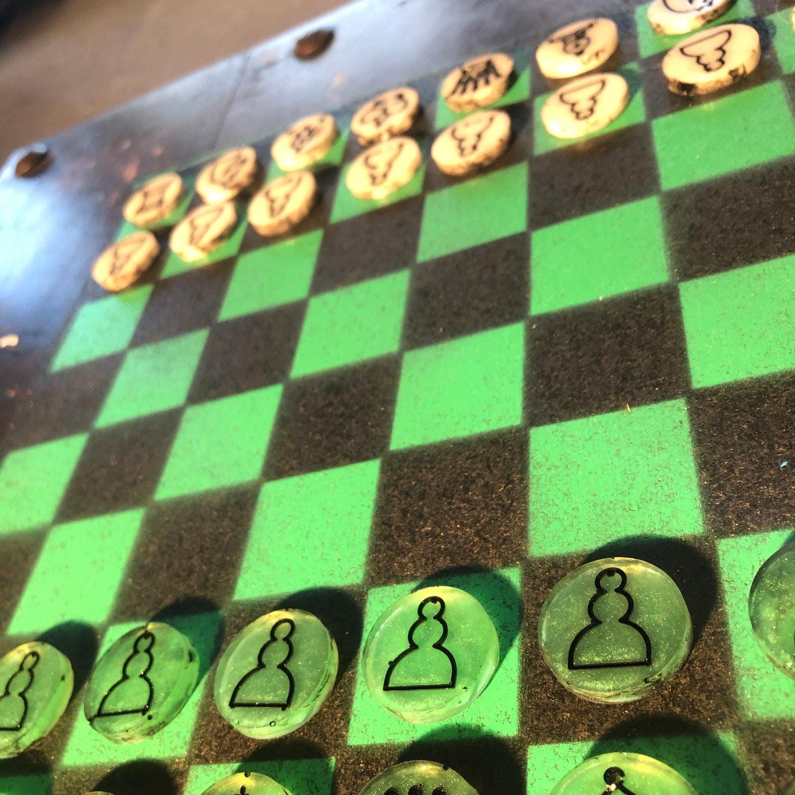 Introducing our exclusive Handcrafted Wooden Chess Set, meticulously designed with precision and care. Measuring 12 inches by 12 inches, this chess set features a beautifully painted Particle Board board that doubles as a work of art. Each set is a unique, one-of-a-kind creation, crafted by hand to ensure that no two sets are alike. Elevate your gaming experience with this exceptional chess set that combines vibrant design with the touch of artisan craftsmanship. This chess board comes with chess pieces.
