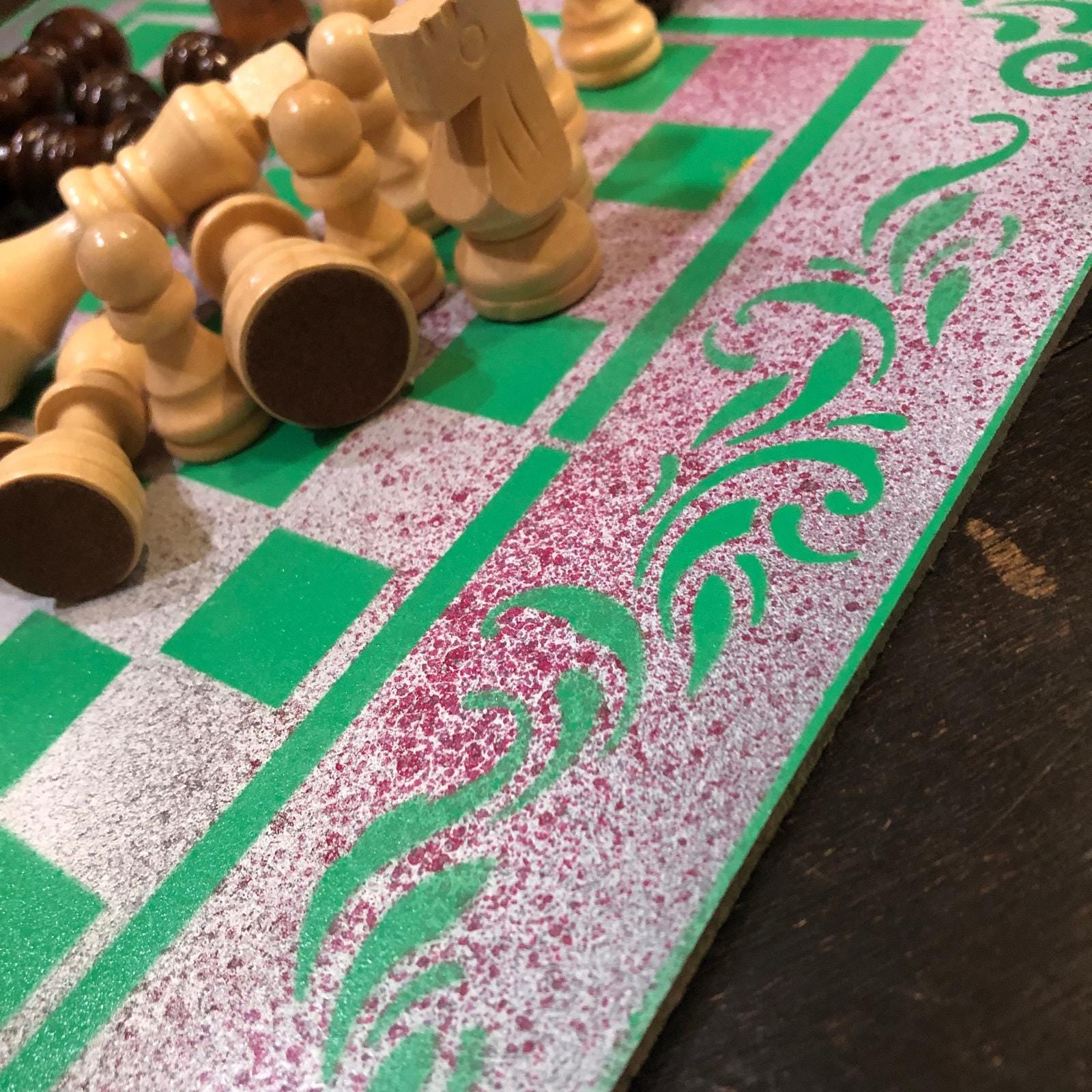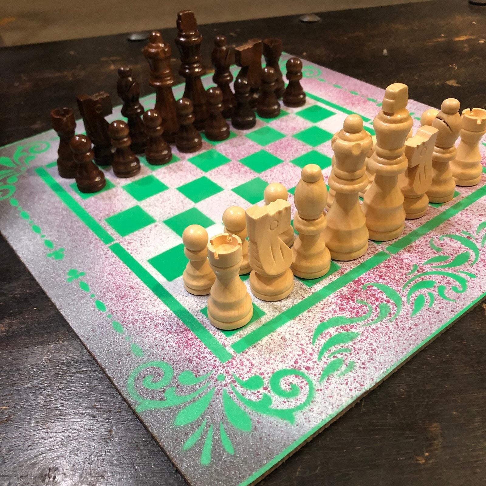 Introducing our exclusive Handcrafted Hardboard Chess Set, meticulously designed with precision and care. Measuring 12 inches by 12 inches, this chess set features a beautifully painted hardwood board that doubles as a work of art. Each set is a unique, one-of-a-kind creation, crafted by hand to ensure that no two sets are alike. Elevate your gaming experience with this exceptional chess set that combines vibrant design with the touch of artisan craftsmanship.