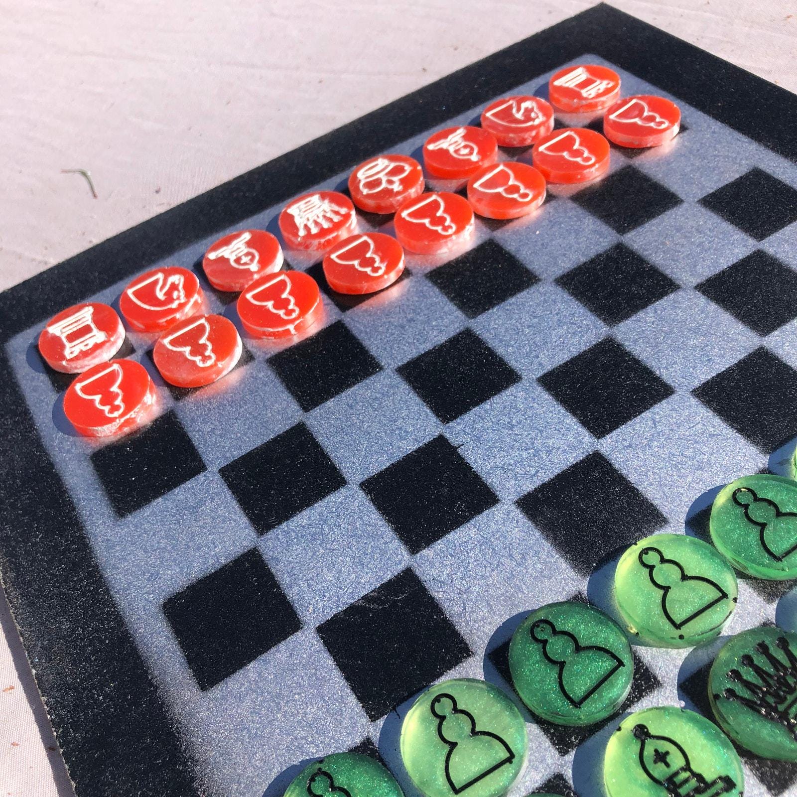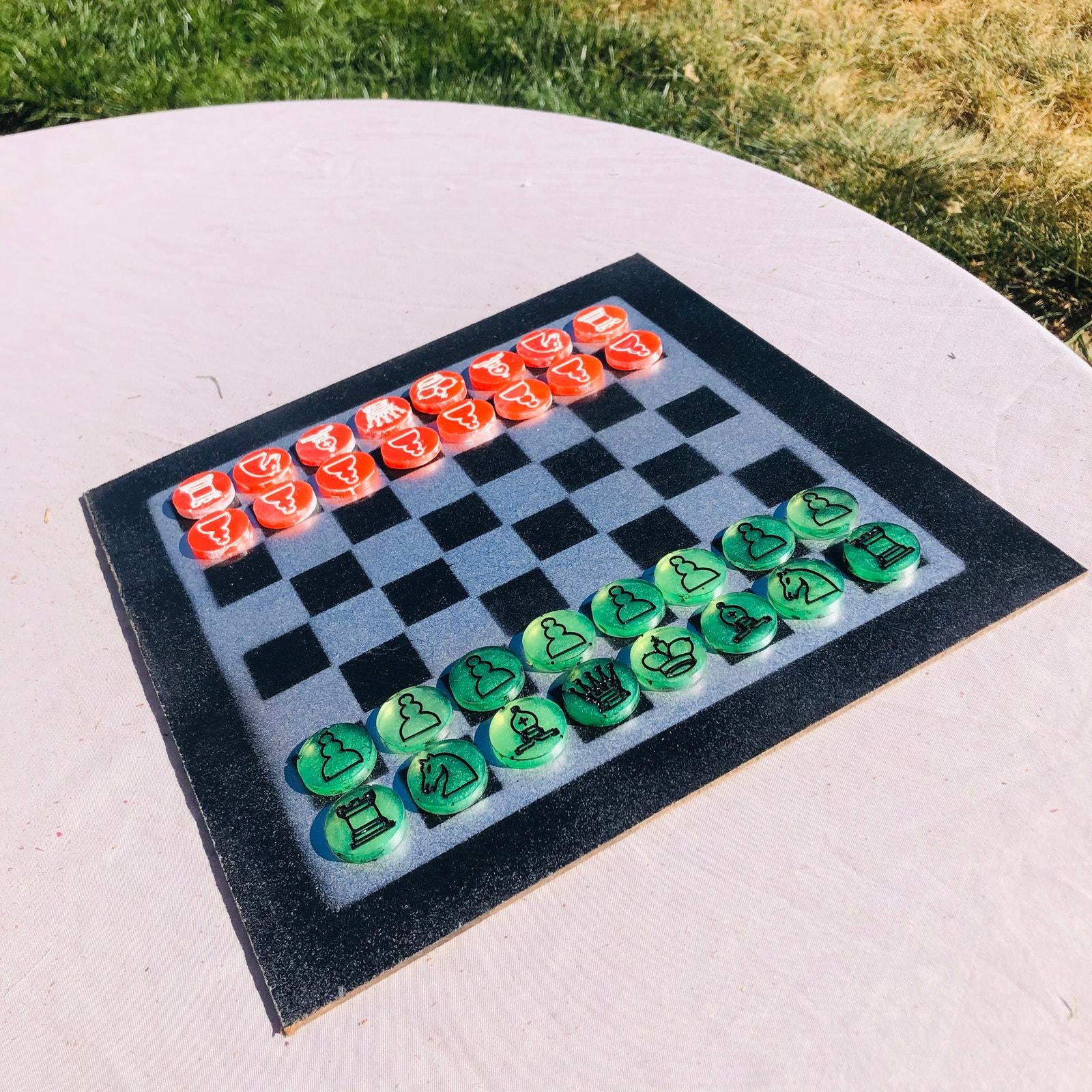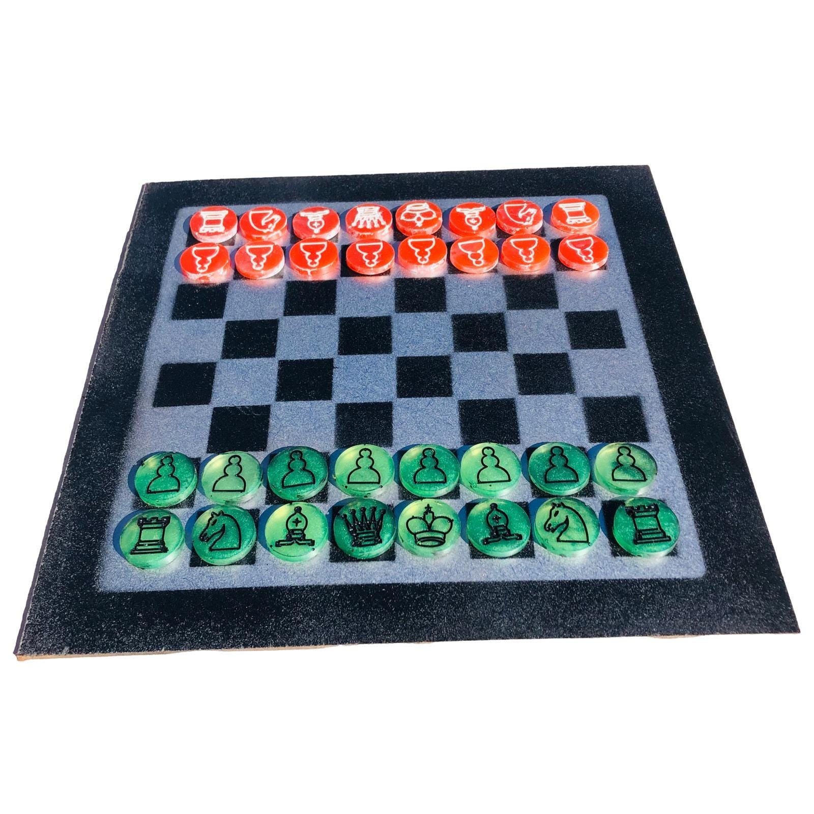 Introducing our exclusive Handcrafted Hardboard Chess Set, meticulously designed with precision and care. Measuring 12 inches by 12 inches, this chess set features a beautifully painted hardwood board that doubles as a work of art. Each set is a unique, one-of-a-kind creation, crafted by hand to ensure that no two sets are alike. Elevate your gaming experience with this exceptional chess set that combines vibrant design with the touch of artisan craftsmanship. This chess board comes with chess pieces.