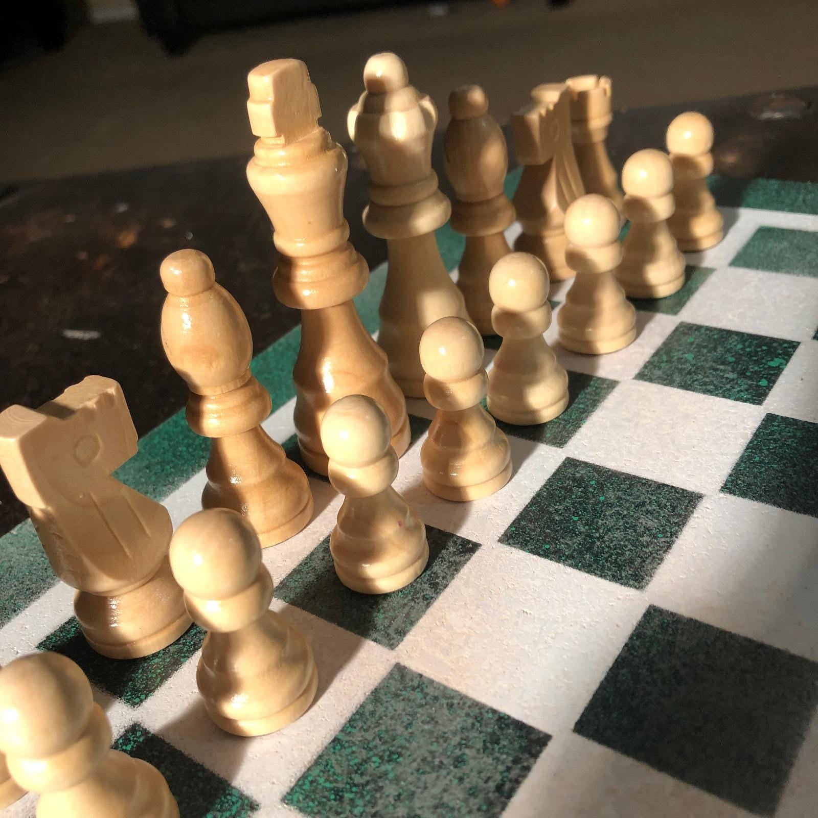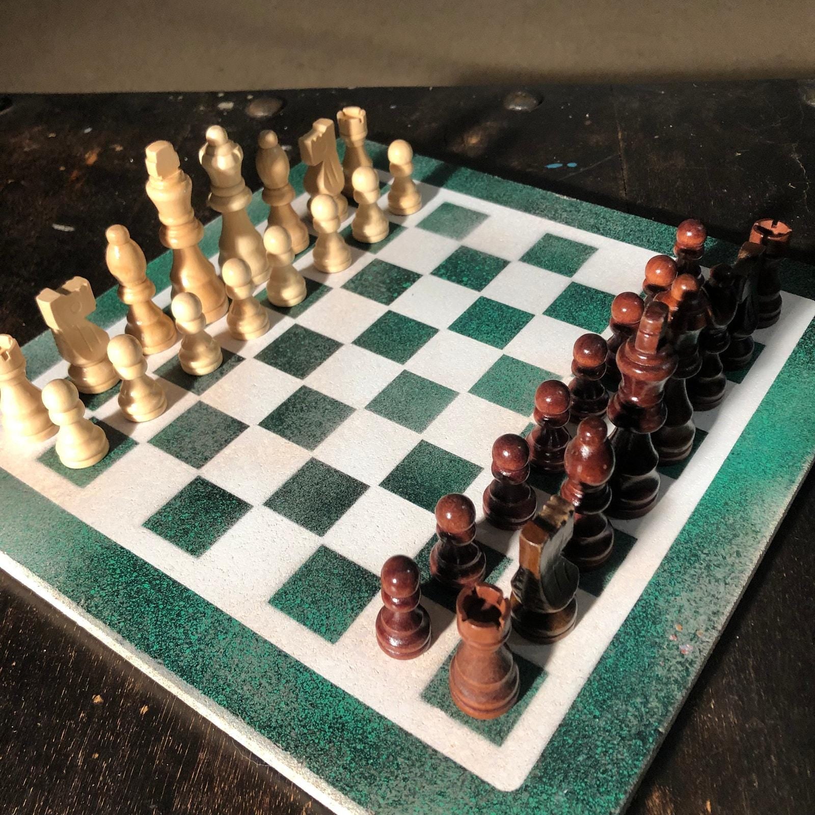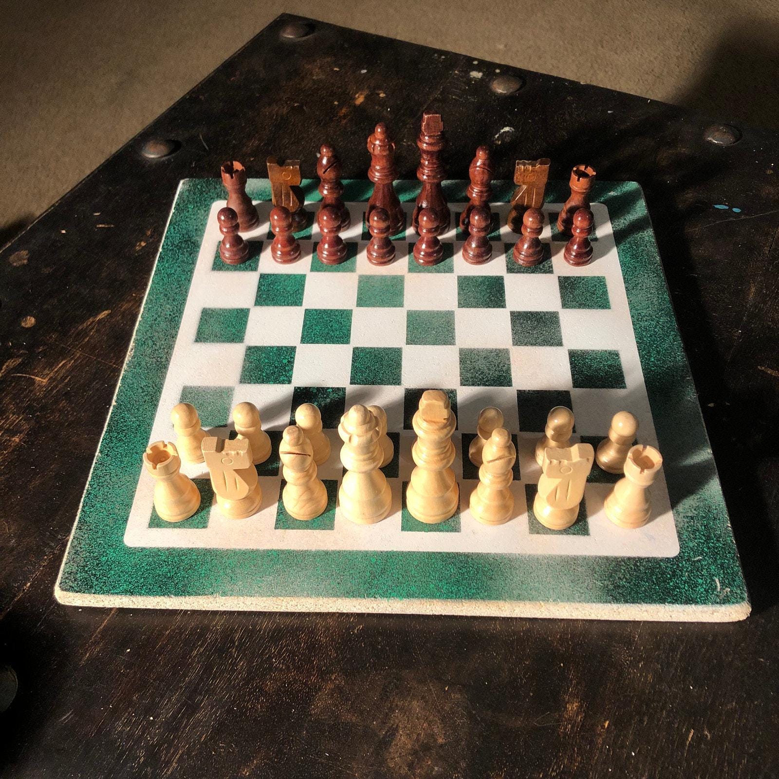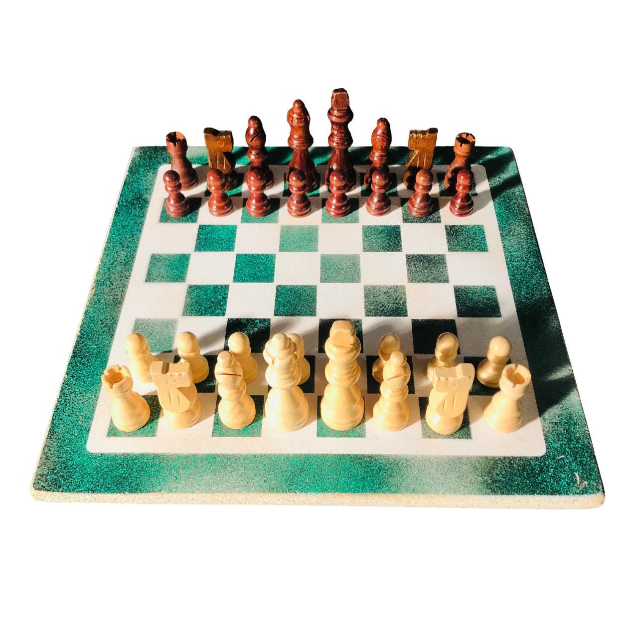 Introducing our exclusive Handcrafted Wooden Chess Set, meticulously designed with precision and care. Measuring 12 inches by 12 inches, this chess set features a beautifully painted Particle Board board that doubles as a work of art. Each set is a unique, one-of-a-kind creation, crafted by hand to ensure that no two sets are alike. Elevate your gaming experience with this exceptional chess set that combines vibrant design with the touch of artisan craftsmanship. This chess board comes with chess pieces.