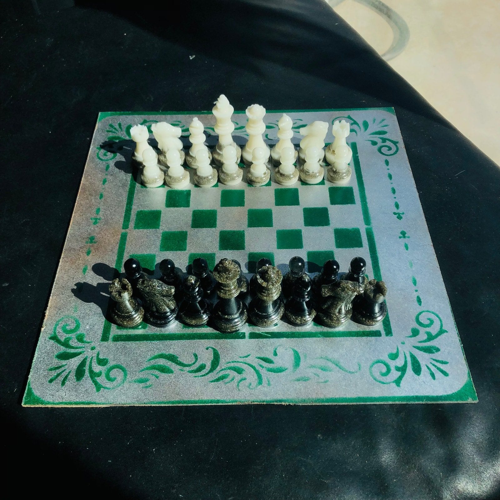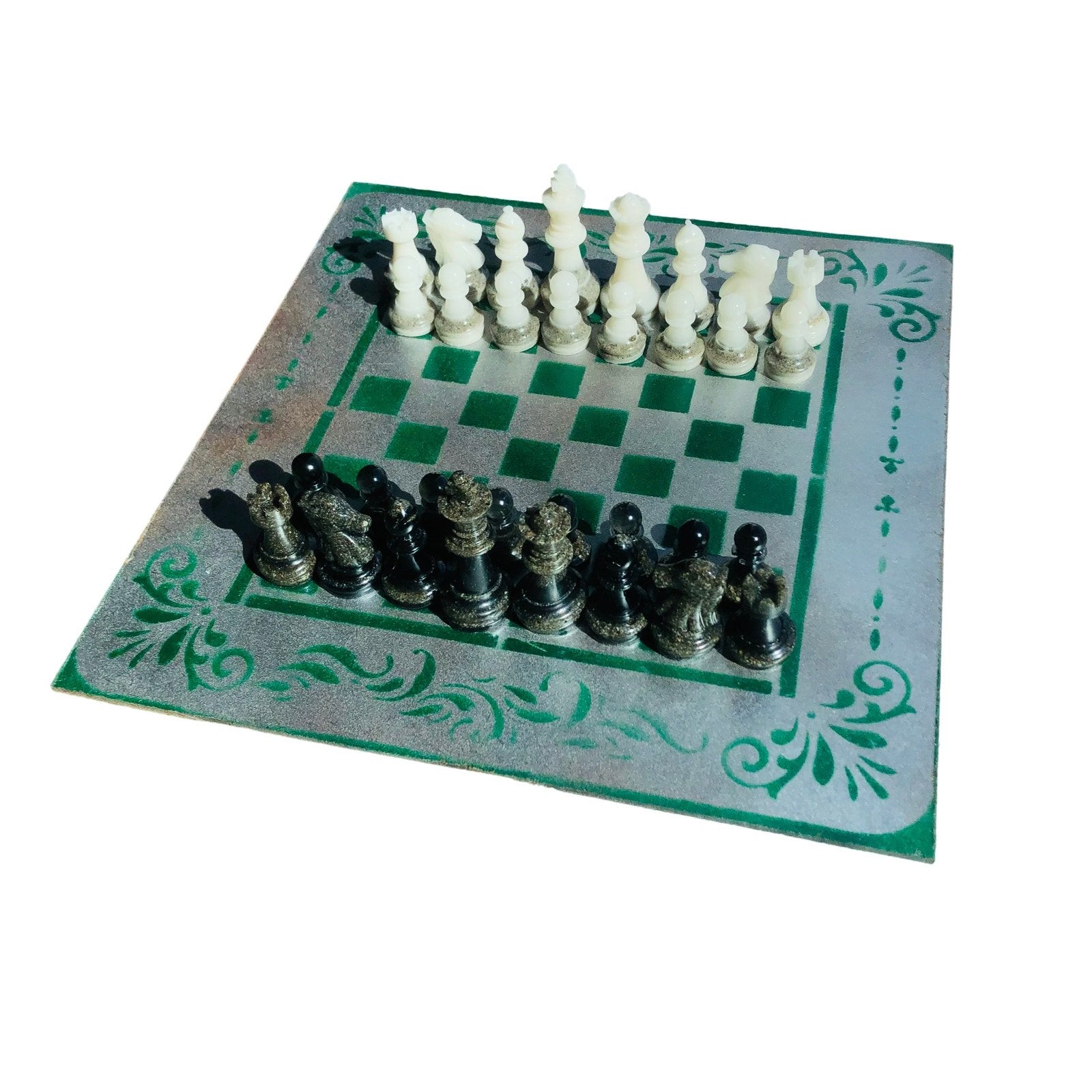 Introducing our exclusive Handcrafted Hardboard Chess Set, meticulously designed with precision and care. Measuring 12 inches by 12 inches, this chess set features a beautifully painted hardwood board that doubles as a work of art. Each set is a unique, one-of-a-kind creation, crafted by hand to ensure that no two sets are alike. Elevate your gaming experience with this exceptional chess set that combines vibrant design with the touch of artisan craftsmanship.