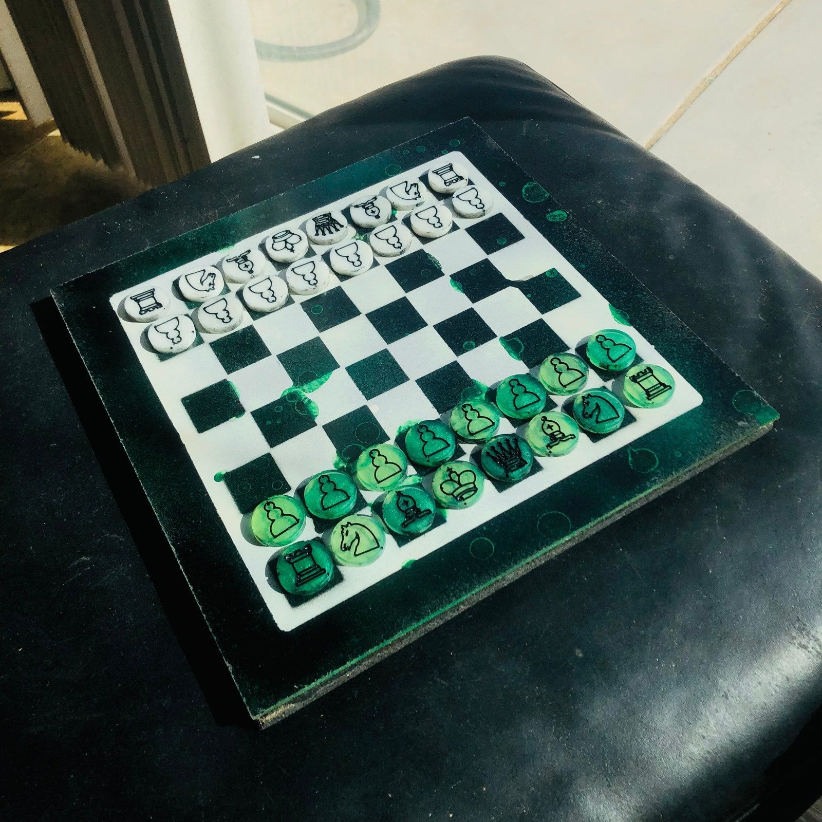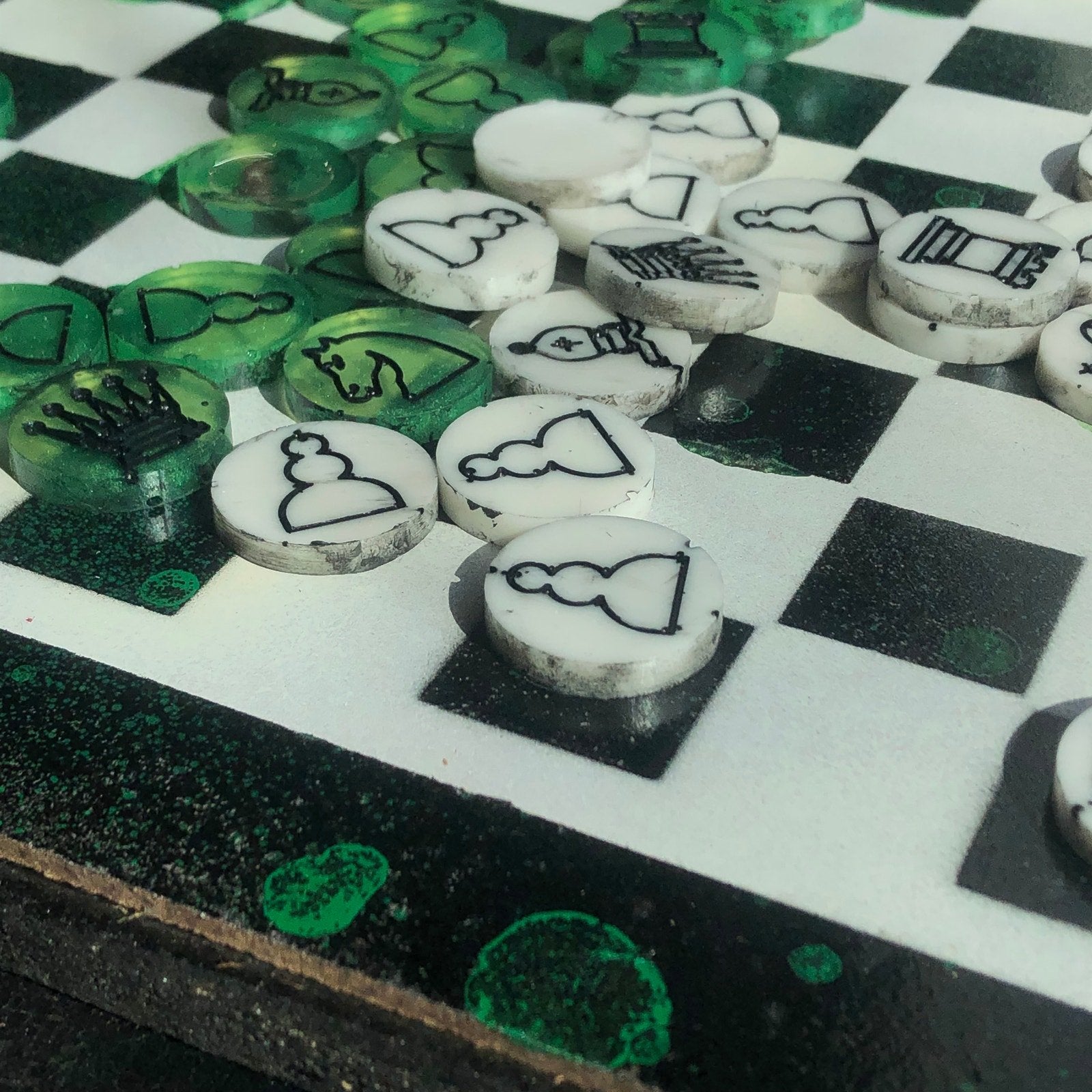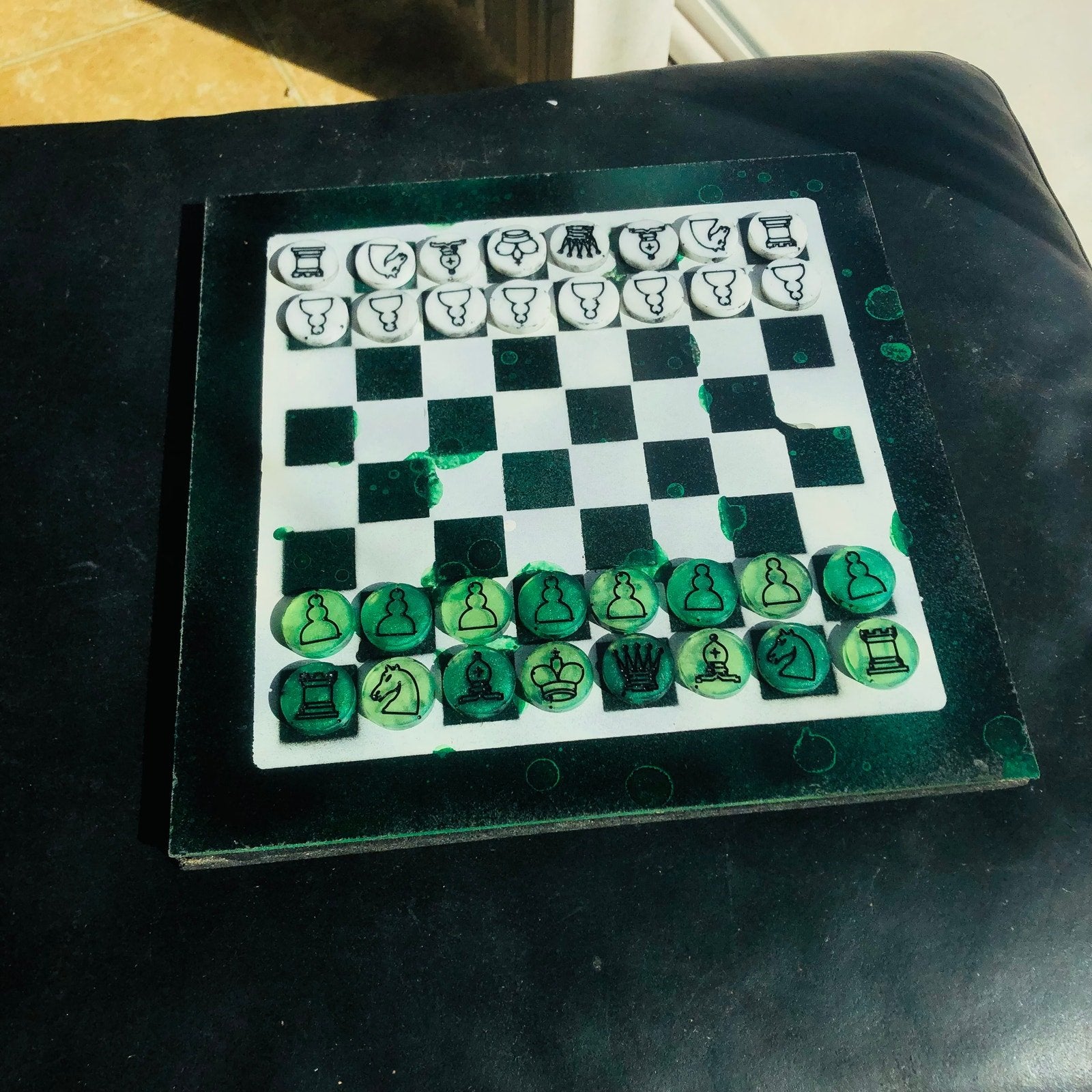 Introducing our exclusive Handcrafted Hardwood Chess Set, meticulously designed with precision and care. Measuring 12 inches by 12 inches, this chess set features a beautifully painted hardwood board that doubles as a work of art. Each set is a unique, one-of-a-kind creation, crafted by hand to ensure that no two sets are alike. Elevate your gaming experience with this exceptional chess set that combines vibrant design with the touch of artisan craftsmanship.