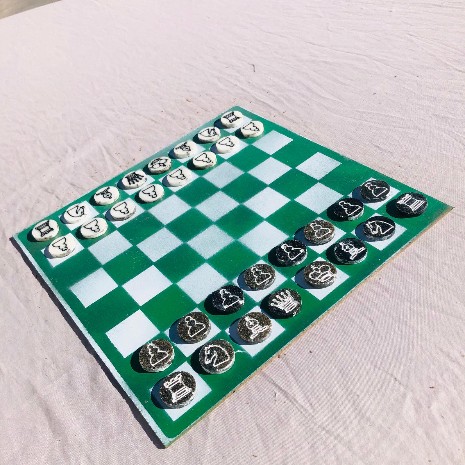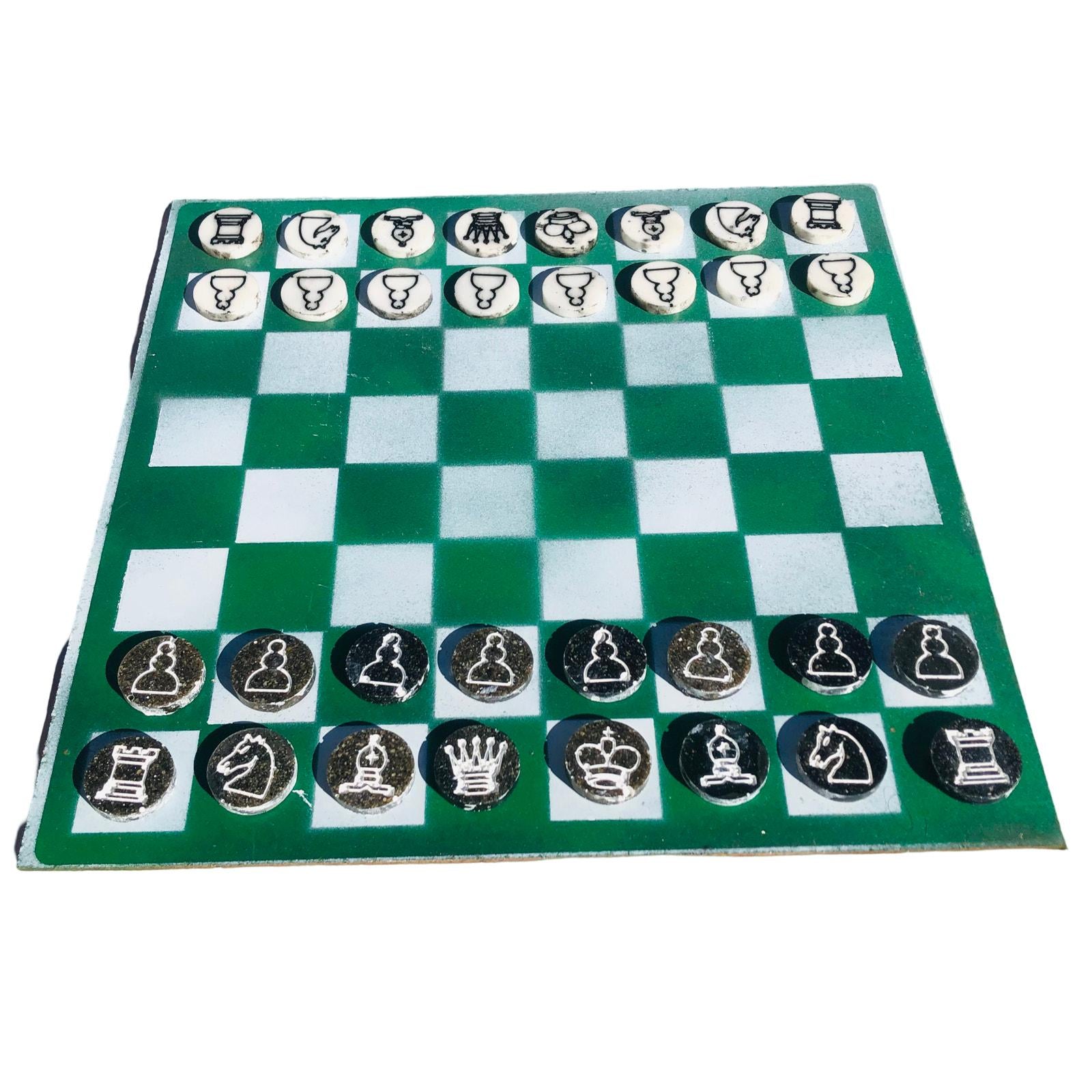 Introducing our exclusive Handcrafted Hardboard Chess Set, meticulously designed with precision and care. Measuring 12 inches by 12 inches, this chess set features a beautifully painted hardwood board that doubles as a work of art. Each set is a unique, one-of-a-kind creation, crafted by hand to ensure that no two sets are alike. Elevate your gaming experience with this exceptional chess set that combines vibrant design with the touch of artisan craftsmanship. This chess board comes with chess pieces.