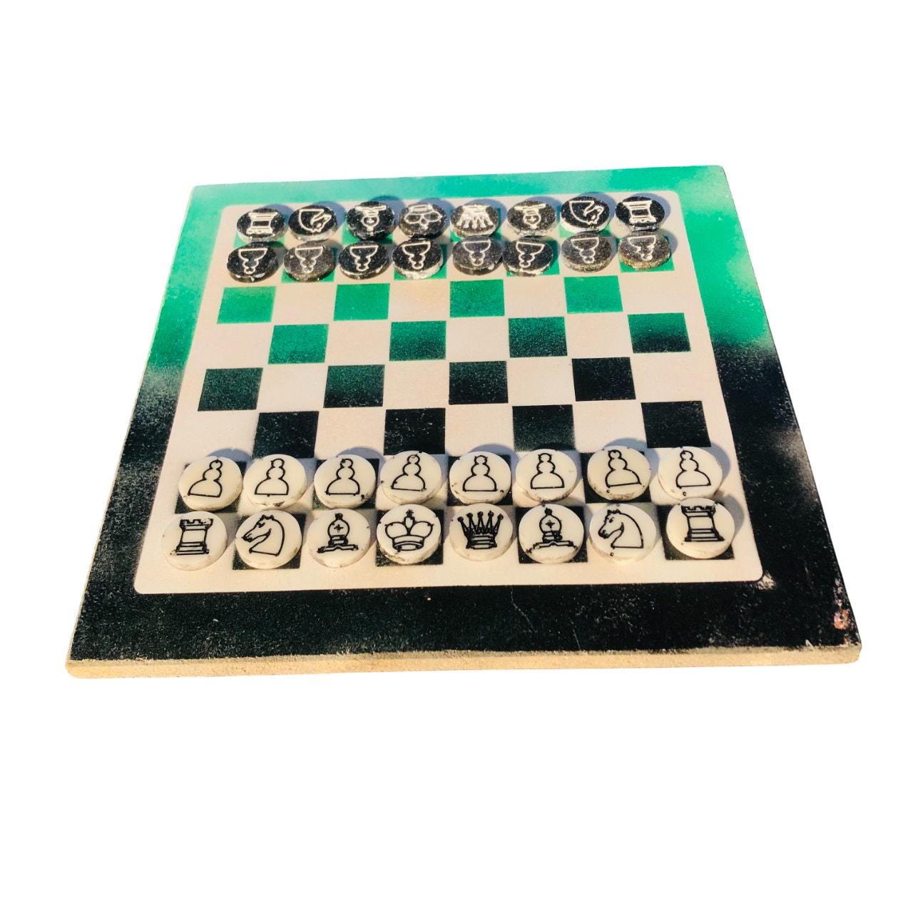 Introducing our exclusive Handcrafted Wooden Chess Set, meticulously designed with precision and care. Measuring 12 inches by 12 inches, this chess set features a beautifully painted Particle Board board that doubles as a work of art. Each set is a unique, one-of-a-kind creation, crafted by hand to ensure that no two sets are alike. Elevate your gaming experience with this exceptional chess set that combines vibrant design with the touch of artisan craftsmanship. This chess board comes with chess pieces.