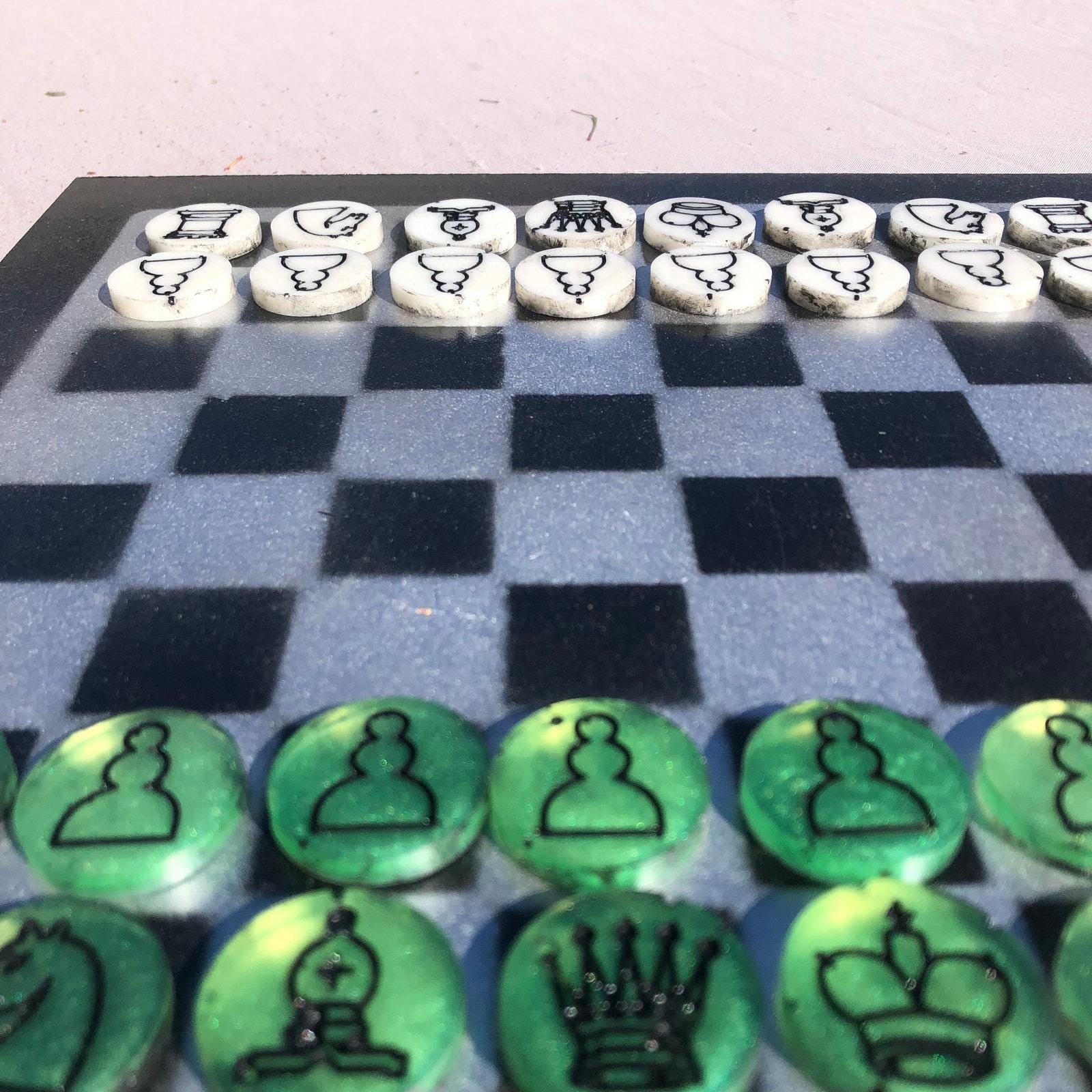 Introducing our exclusive Handcrafted Hardboard Chess Set, meticulously designed with precision and care. Measuring 12 inches by 12 inches, this chess set features a beautifully painted hardwood board that doubles as a work of art. Each set is a unique, one-of-a-kind creation, crafted by hand to ensure that no two sets are alike. Elevate your gaming experience with this exceptional chess set that combines vibrant design with the touch of artisan craftsmanship. This chess board comes with chess pieces.