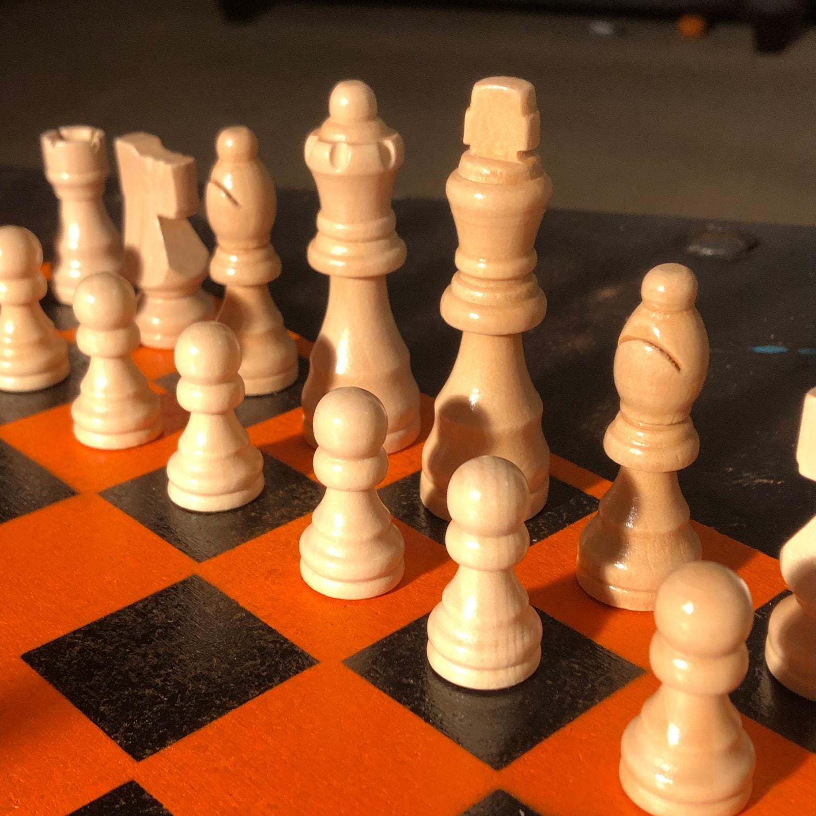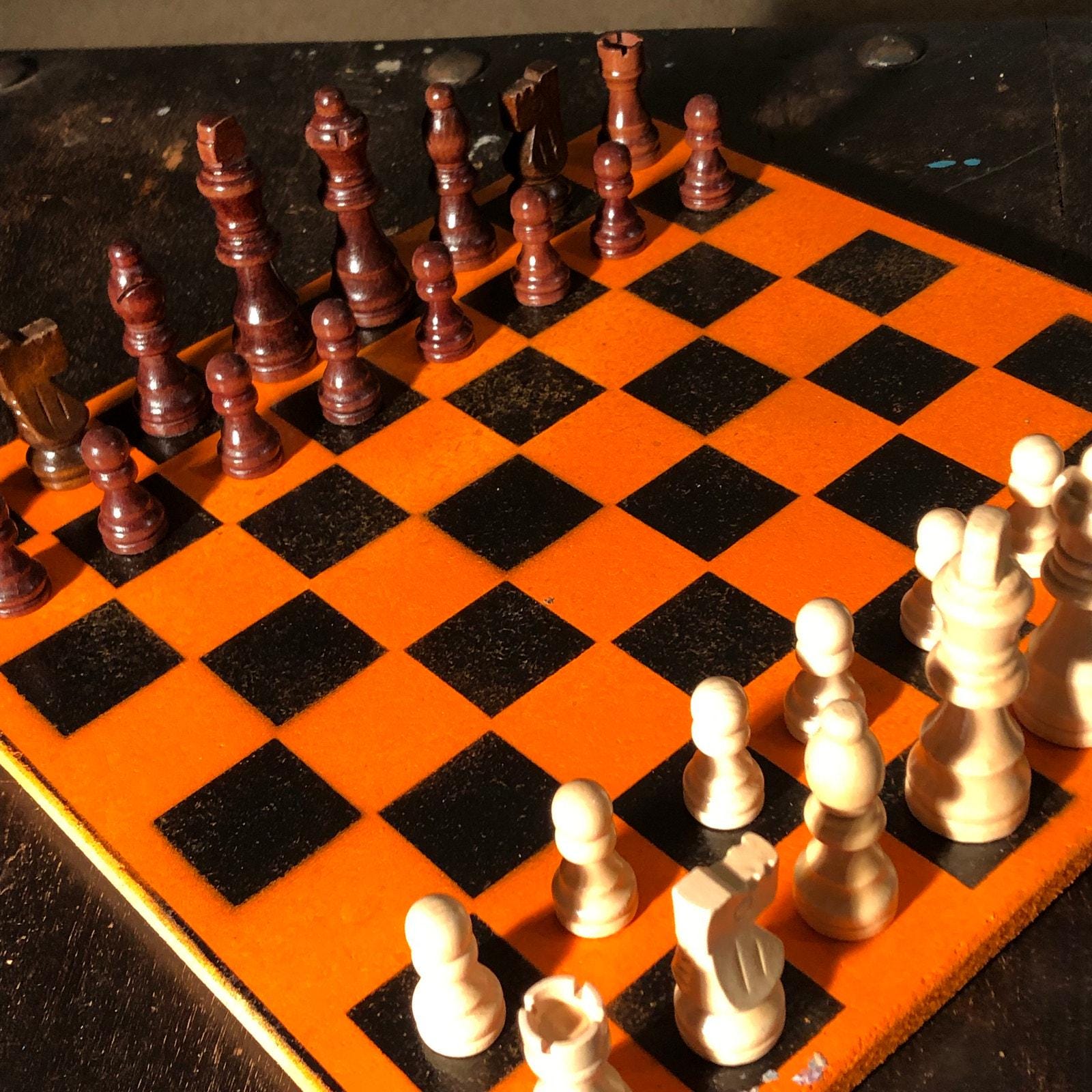 Introducing our exclusive Handcrafted Wooden Chess Set, meticulously designed with precision and care. Measuring 12 inches by 12 inches, this chess set features a beautifully painted Particle Board board that doubles as a work of art. Each set is a unique, one-of-a-kind creation, crafted by hand to ensure that no two sets are alike. Elevate your gaming experience with this exceptional chess set that combines vibrant design with the touch of artisan craftsmanship. This chess board comes with chess pieces.
