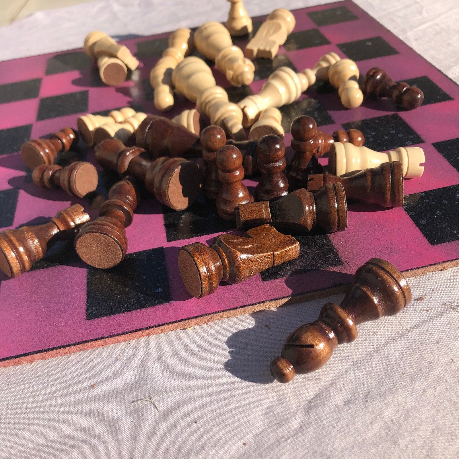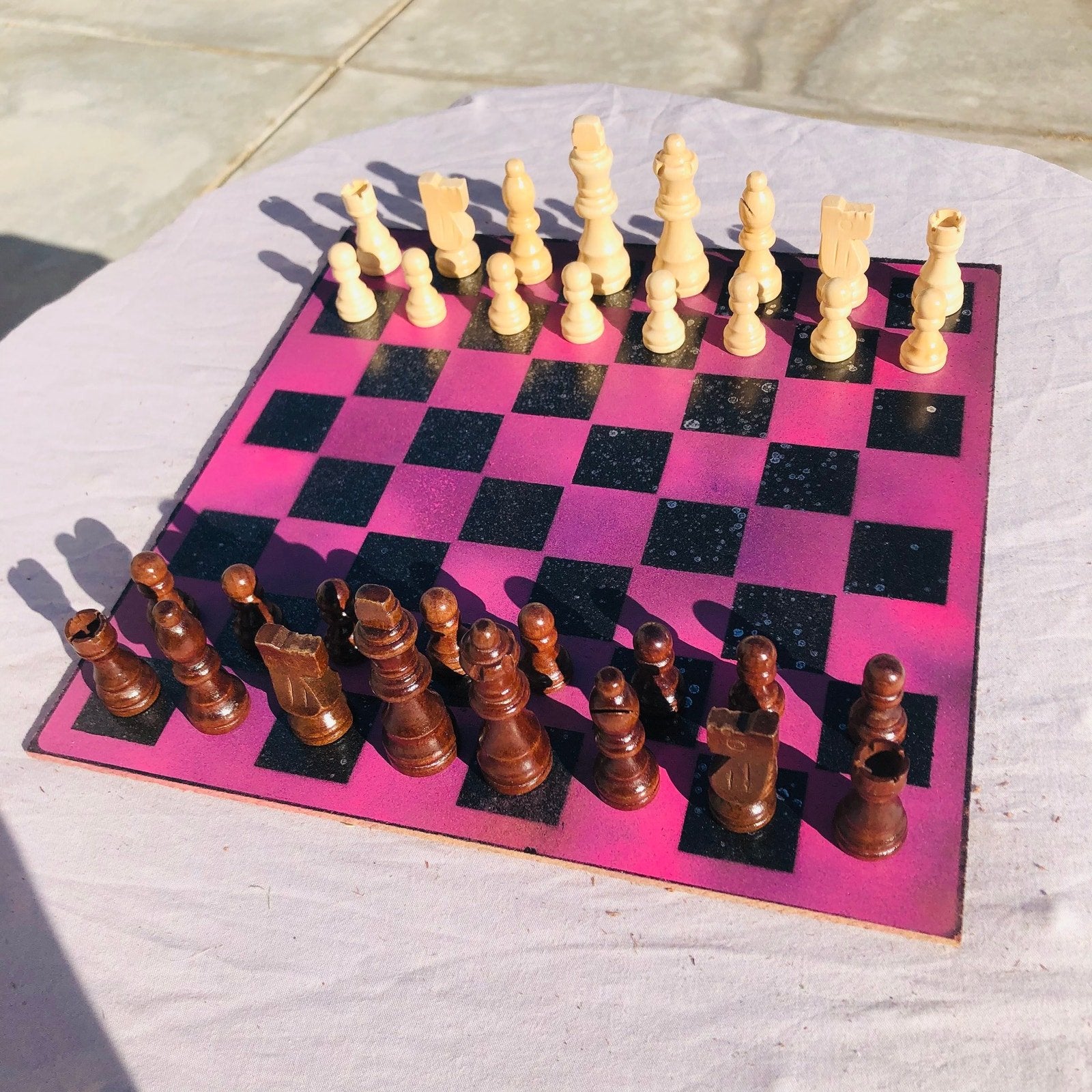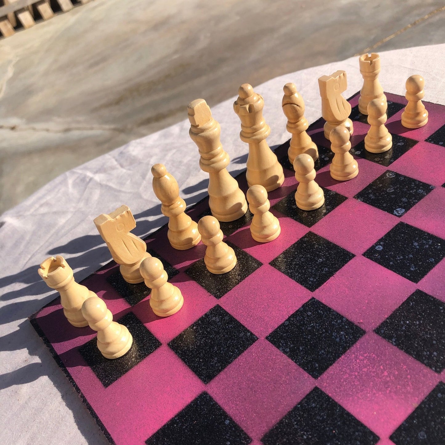 Introducing our exclusive Handcrafted Hardboard Chess Set, meticulously designed with precision and care. Measuring 12 inches by 12 inches, this chess set features a beautifully painted hardwood board that doubles as a work of art. Each set is a unique, one-of-a-kind creation, crafted by hand to ensure that no two sets are alike. Elevate your gaming experience with this exceptional chess set that combines vibrant design with the touch of artisan craftsmanship.