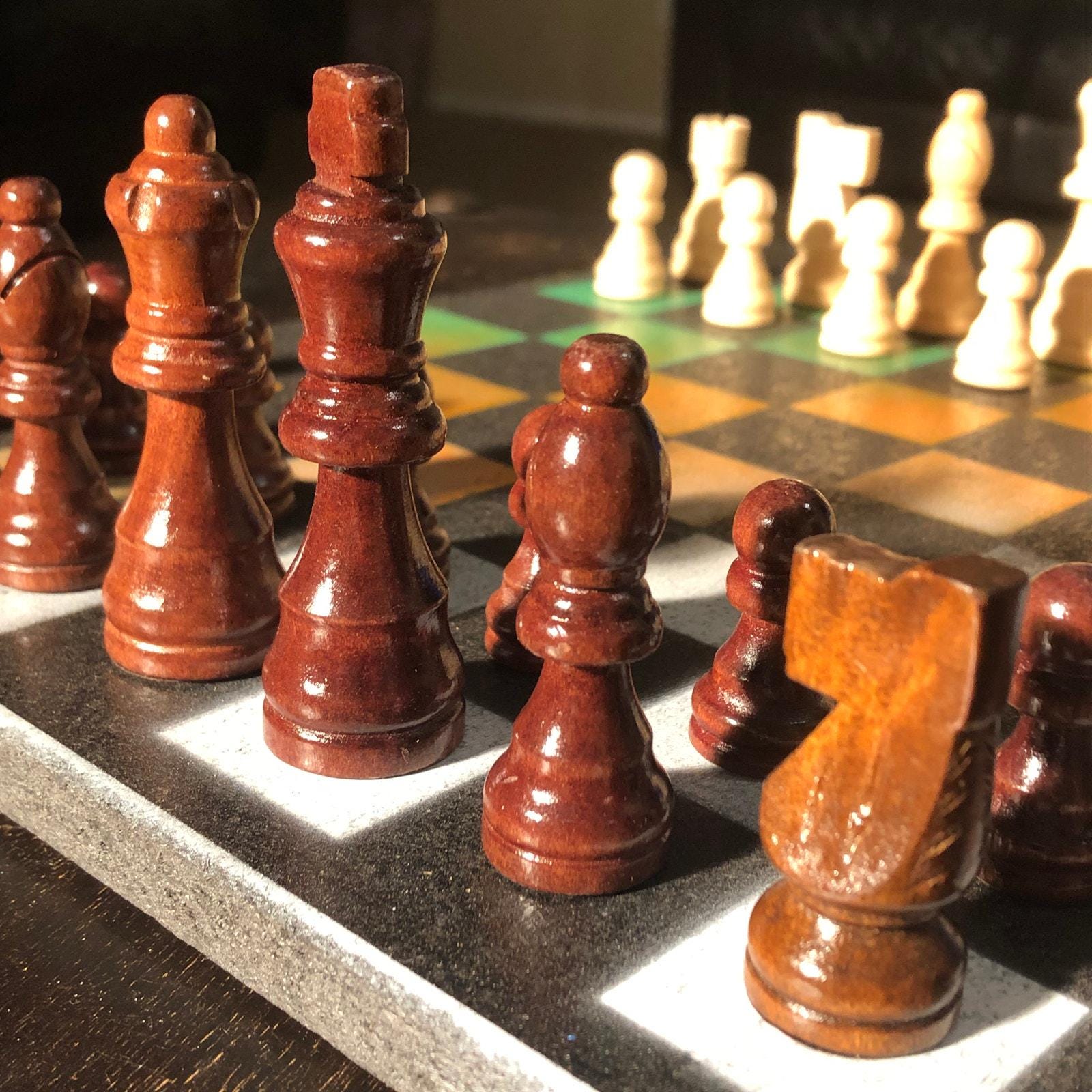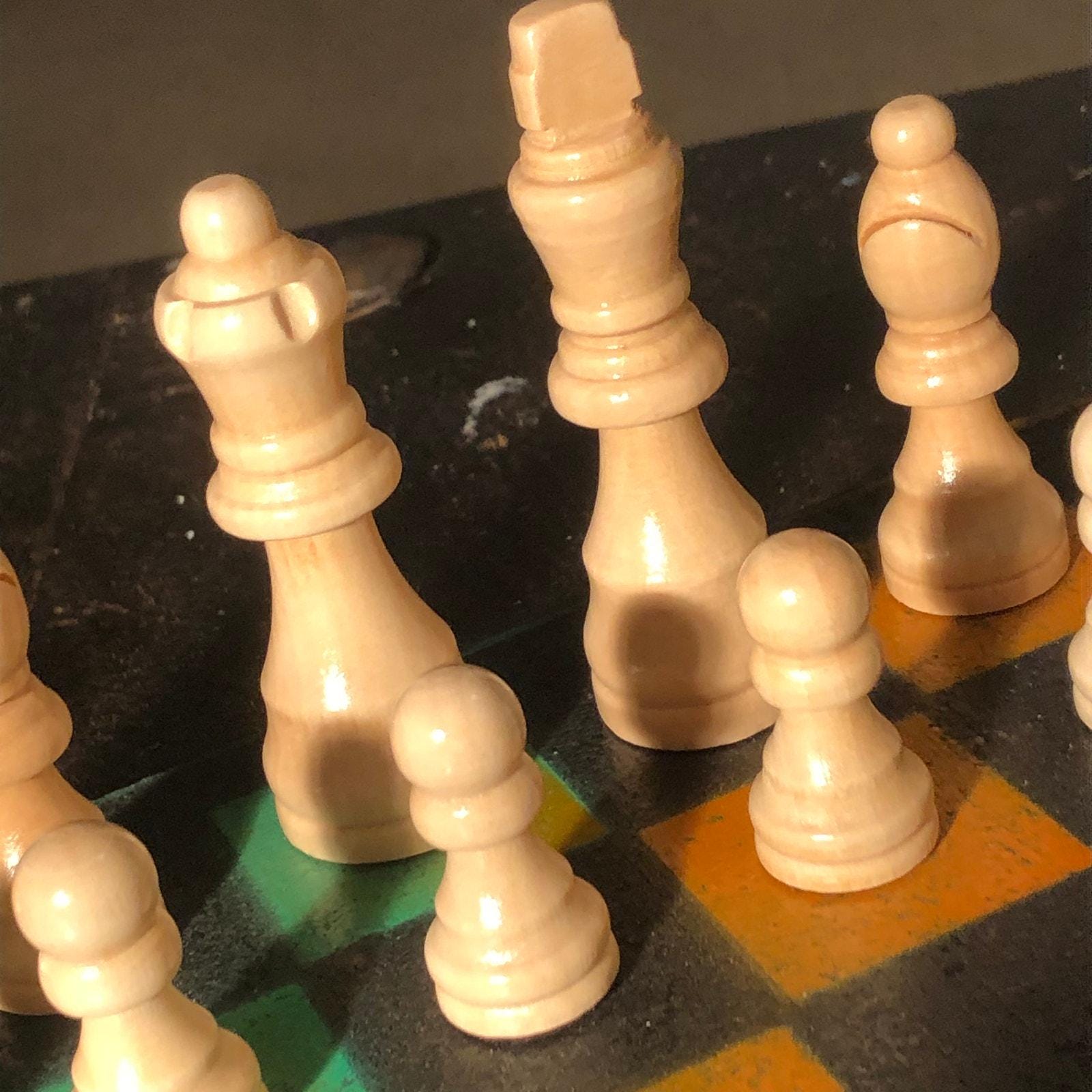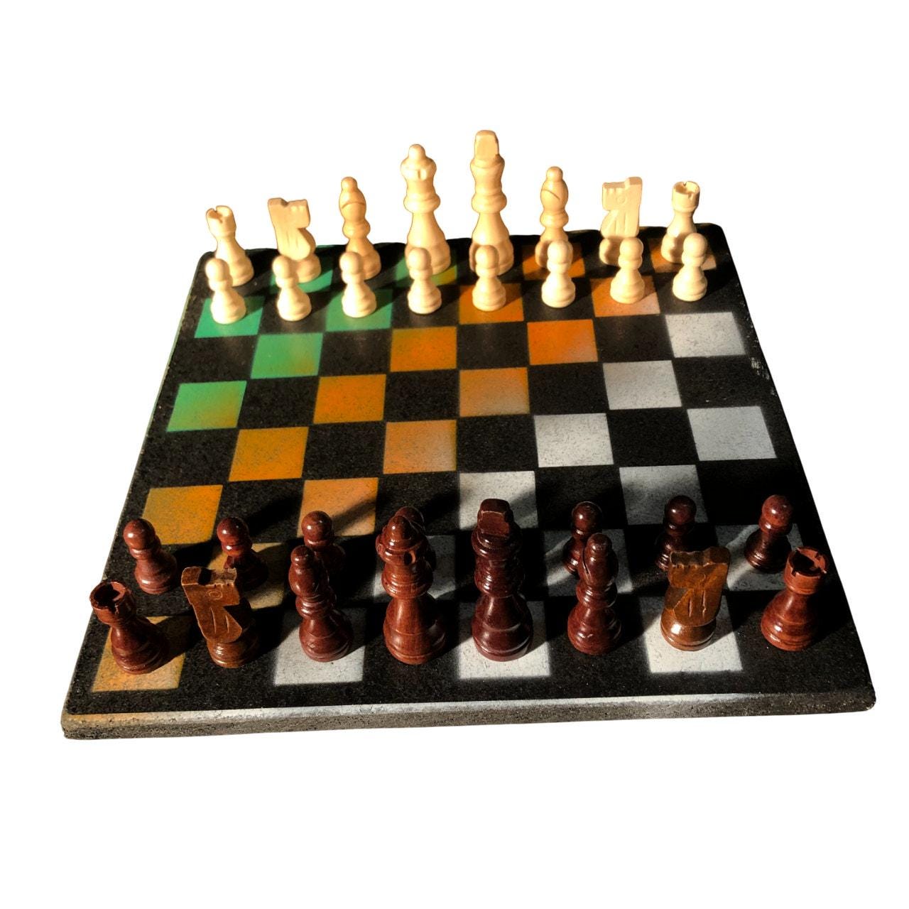 Introducing our exclusive Handcrafted Wooden Chess Set, meticulously designed with precision and care. Measuring 12 inches by 12 inches, this chess set features a beautifully painted Particle Board board that doubles as a work of art. Each set is a unique, one-of-a-kind creation, crafted by hand to ensure that no two sets are alike. Elevate your gaming experience with this exceptional chess set that combines vibrant design with the touch of artisan craftsmanship. This chess board comes with chess pieces.