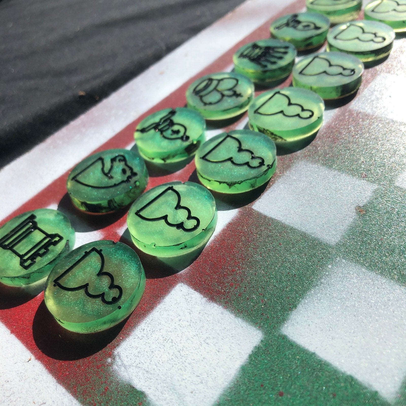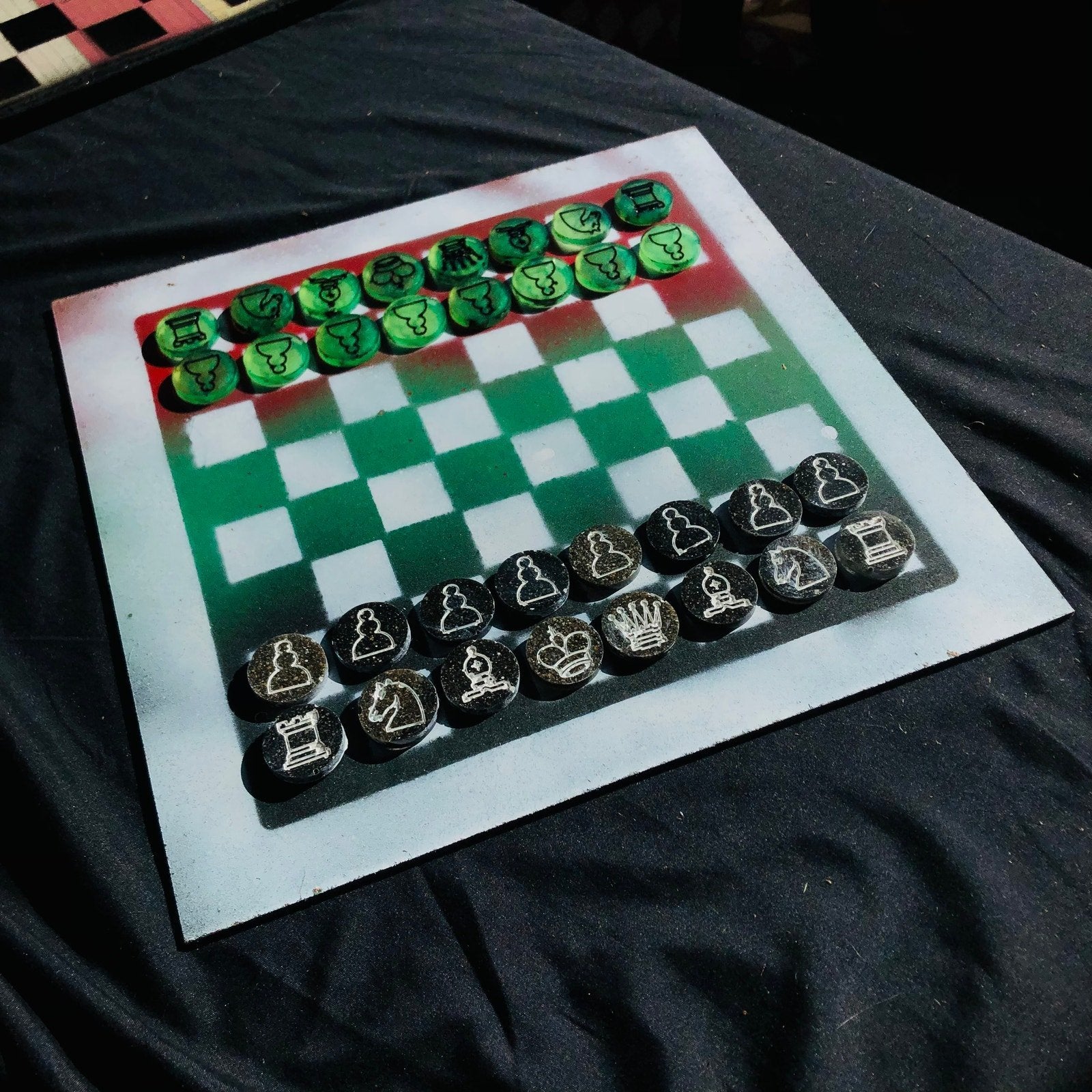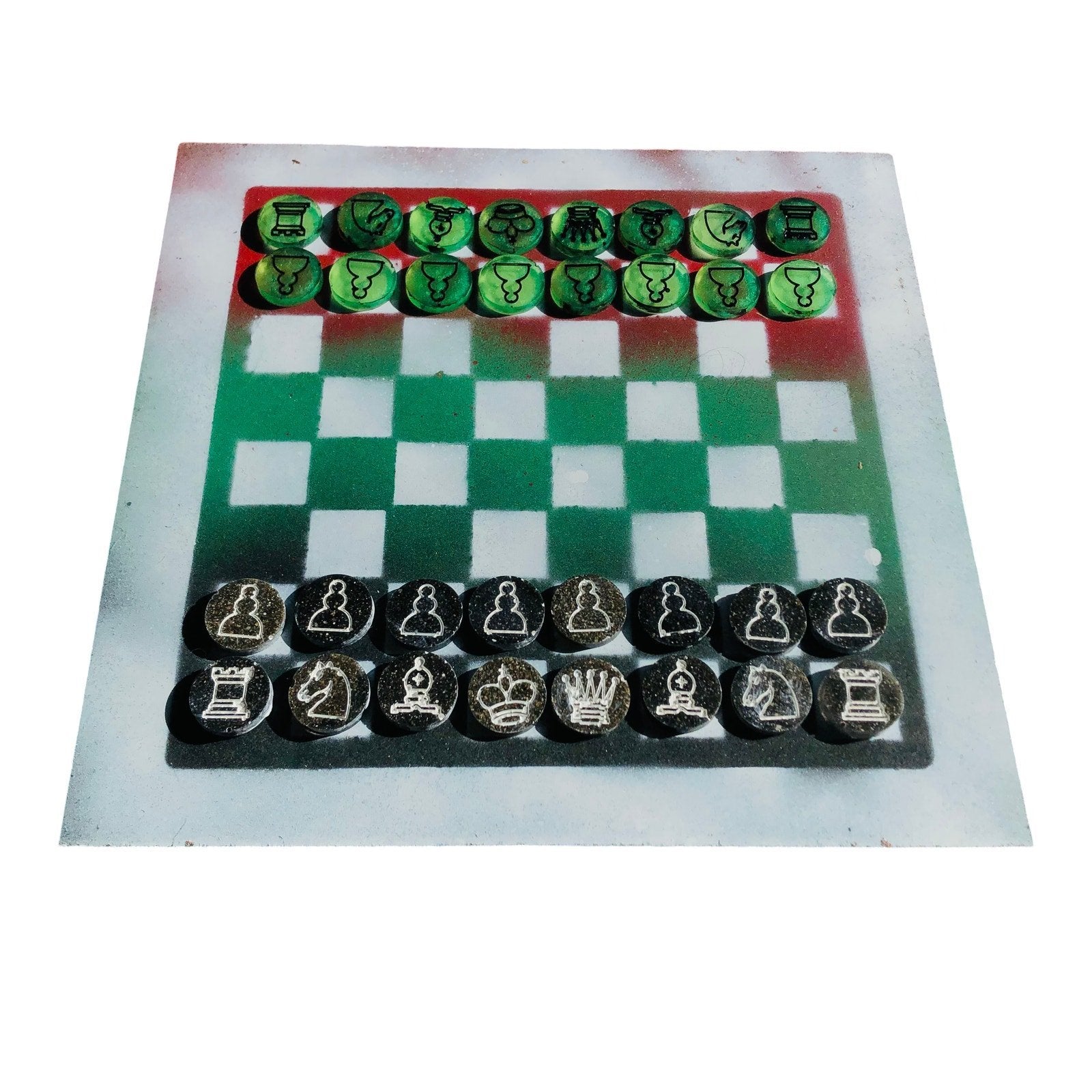 Introducing our exclusive Handcrafted Hardboard Chess Set, meticulously designed with precision and care. Measuring 12 inches by 12 inches, this chess set features a beautifully painted hardwood board that doubles as a work of art. Each set is a unique, one-of-a-kind creation, crafted by hand to ensure that no two sets are alike. Elevate your gaming experience with this exceptional chess set that combines vibrant design with the touch of artisan craftsmanship.