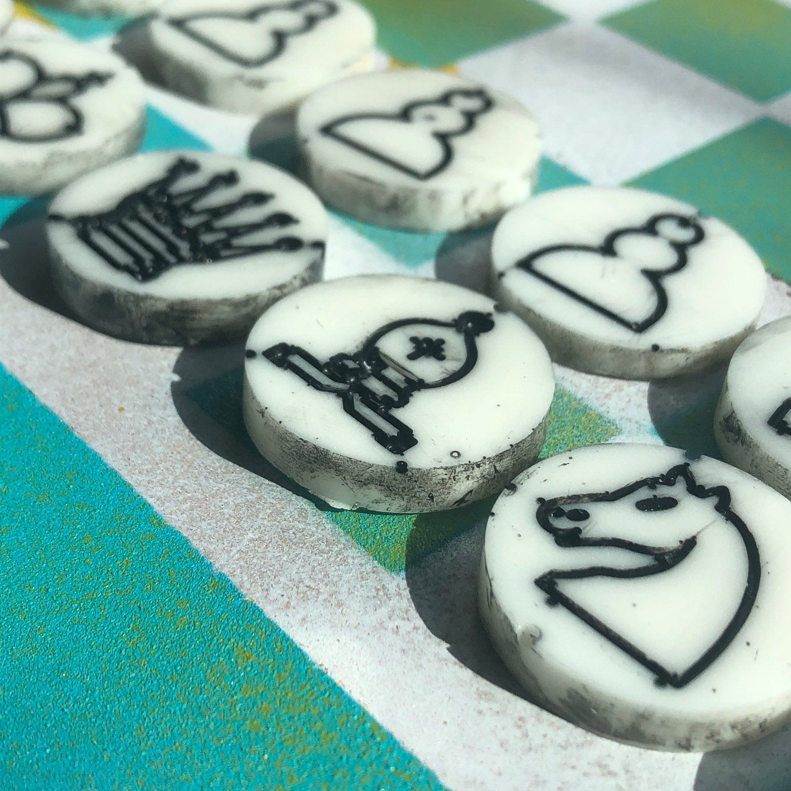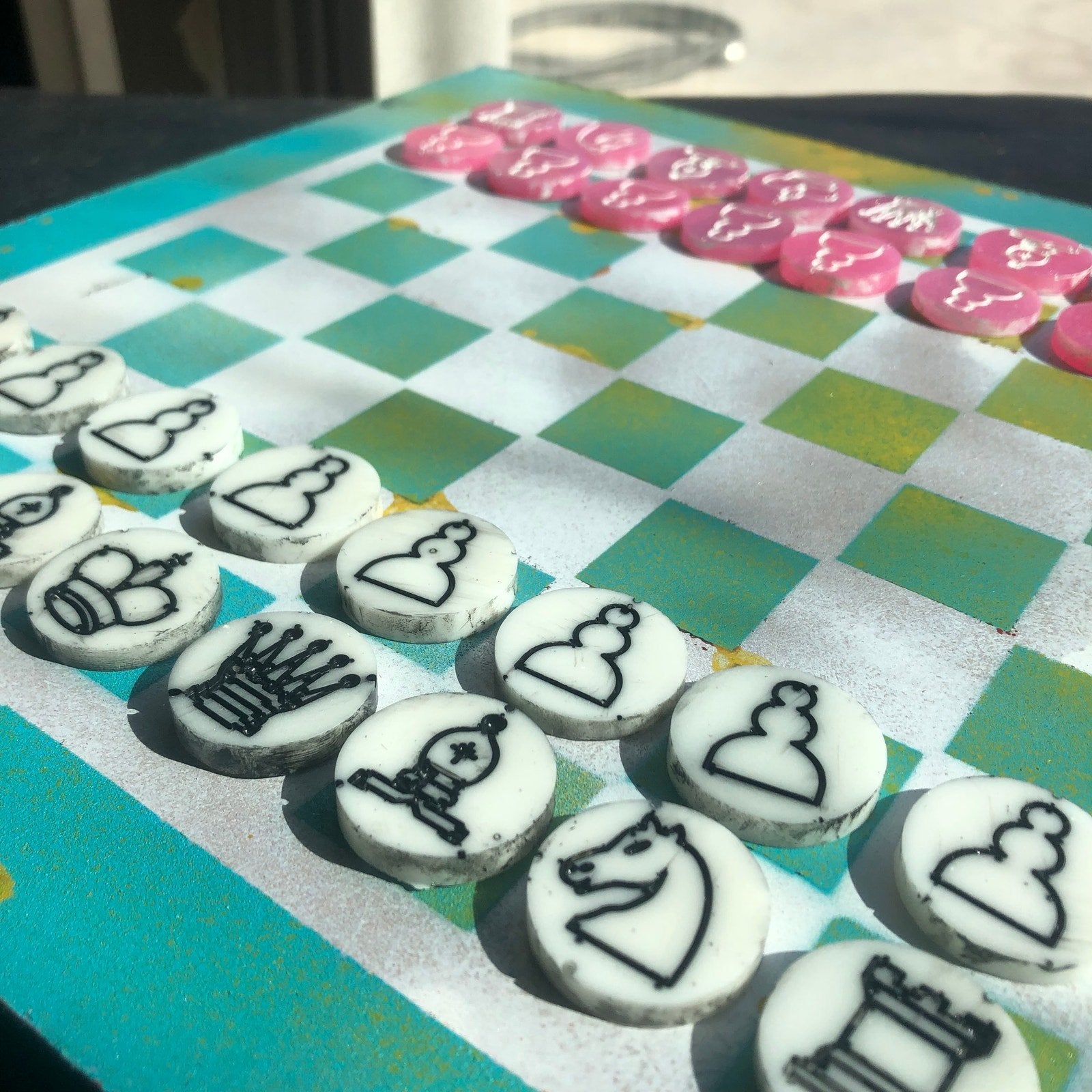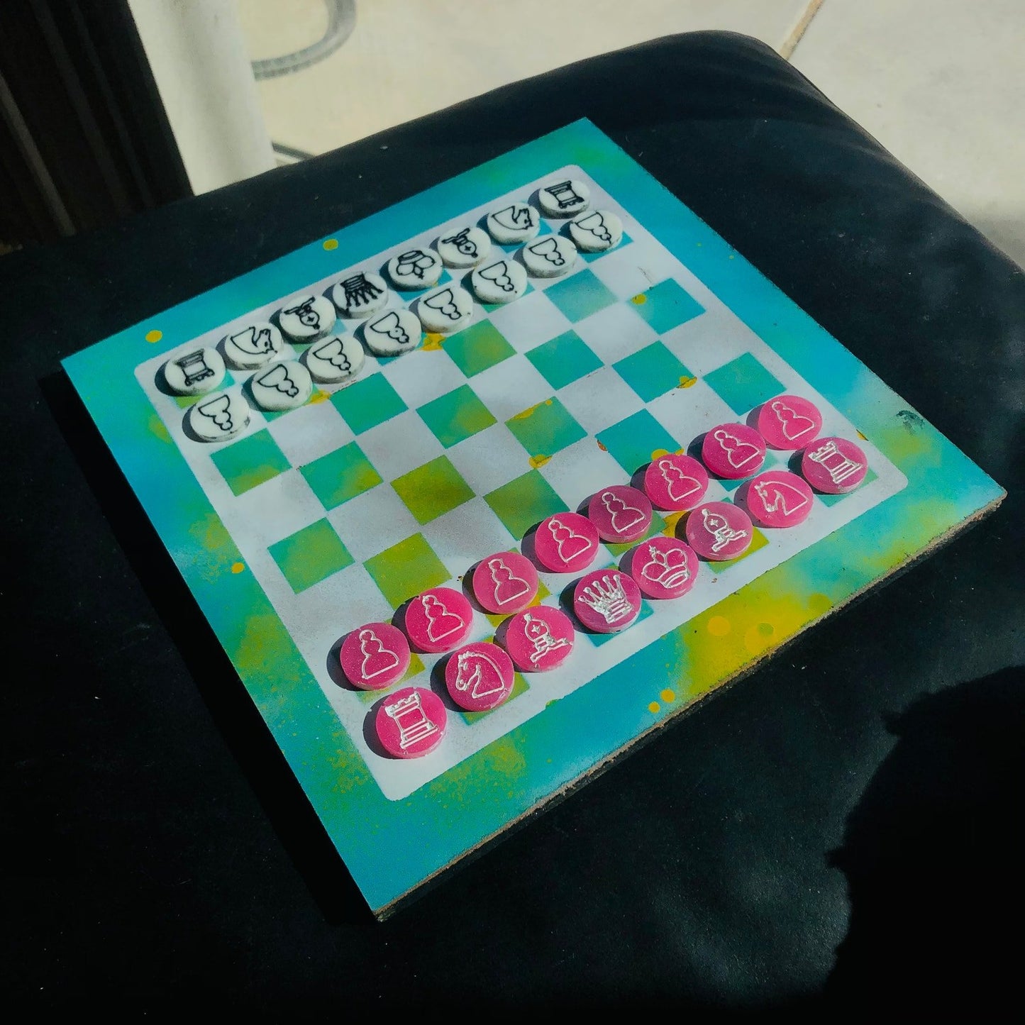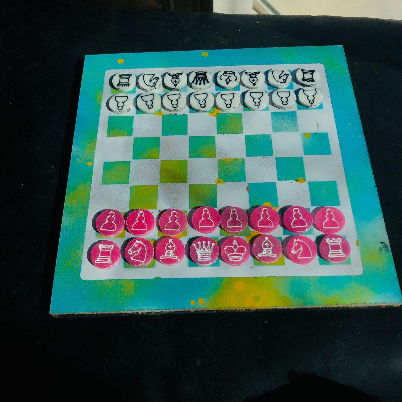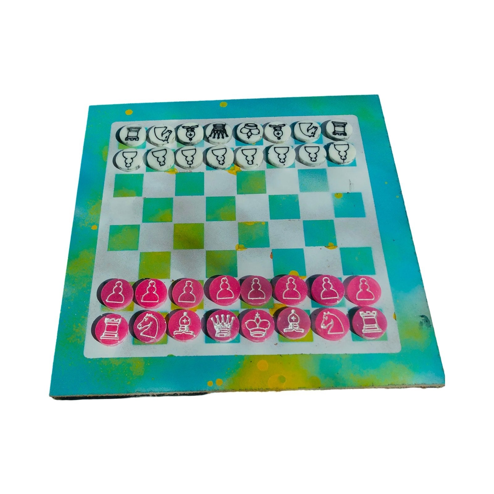 Introducing our exclusive Handcrafted Hardwood Chess Set, meticulously designed with precision and care. Measuring 12 inches by 12 inches, this chess set features a beautifully painted hardwood board that doubles as a work of art. Each set is a unique, one-of-a-kind creation, crafted by hand to ensure that no two sets are alike. Elevate your gaming experience with this exceptional chess set that combines vibrant design with the touch of artisan craftsmanship.