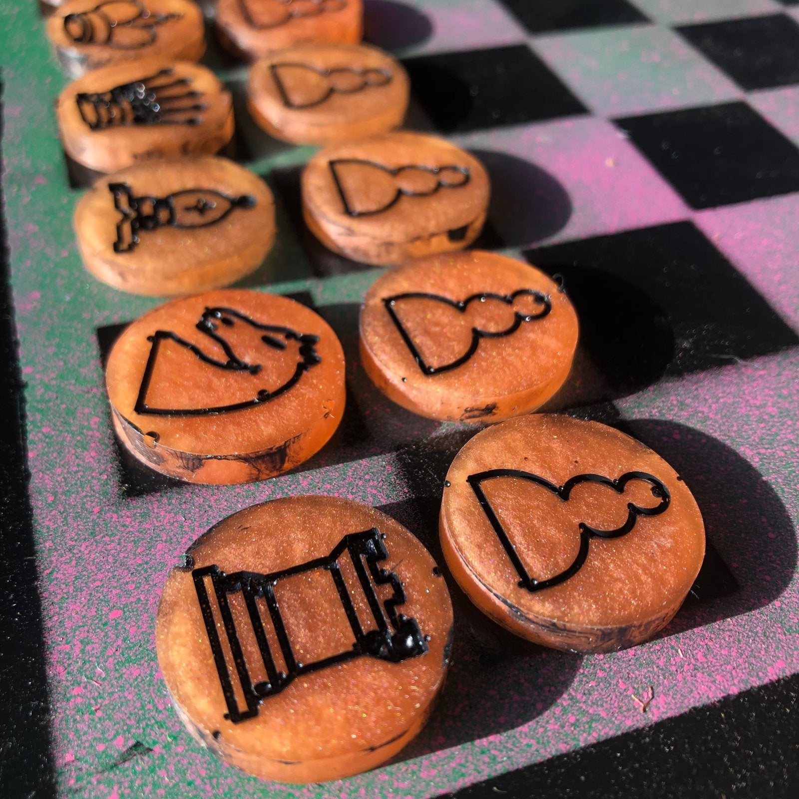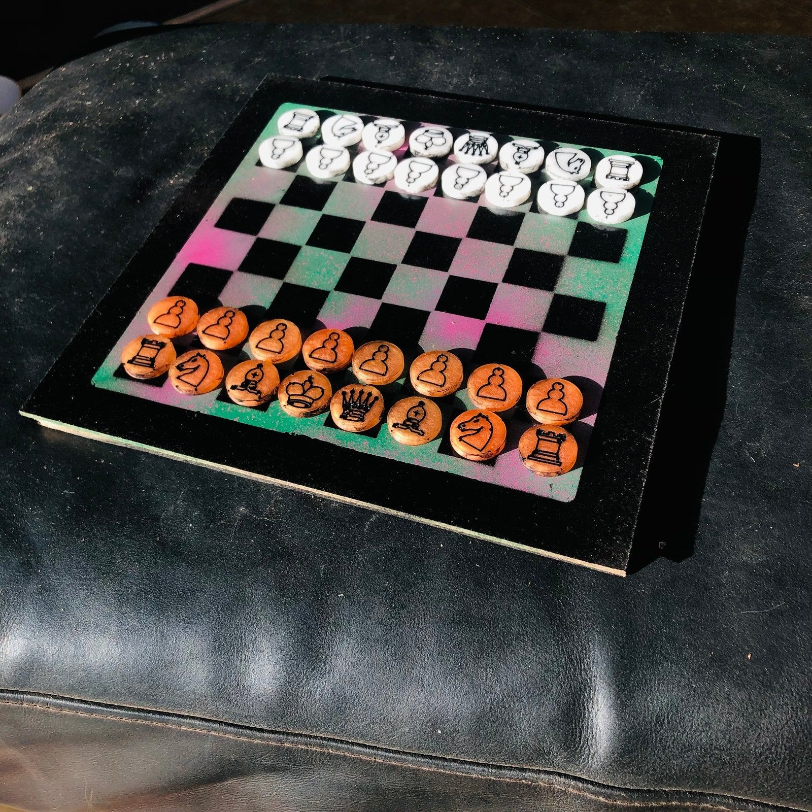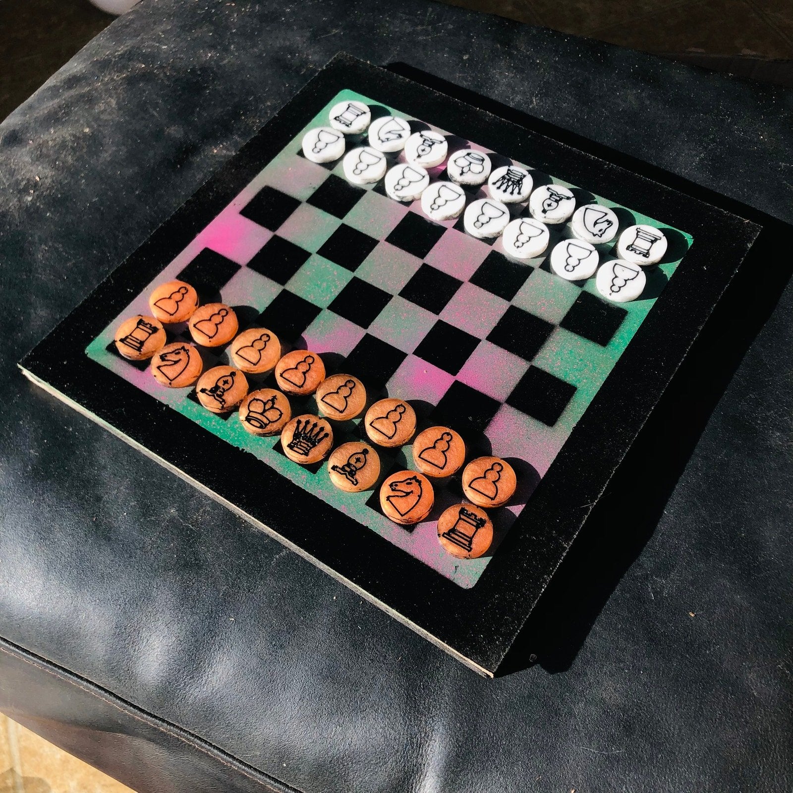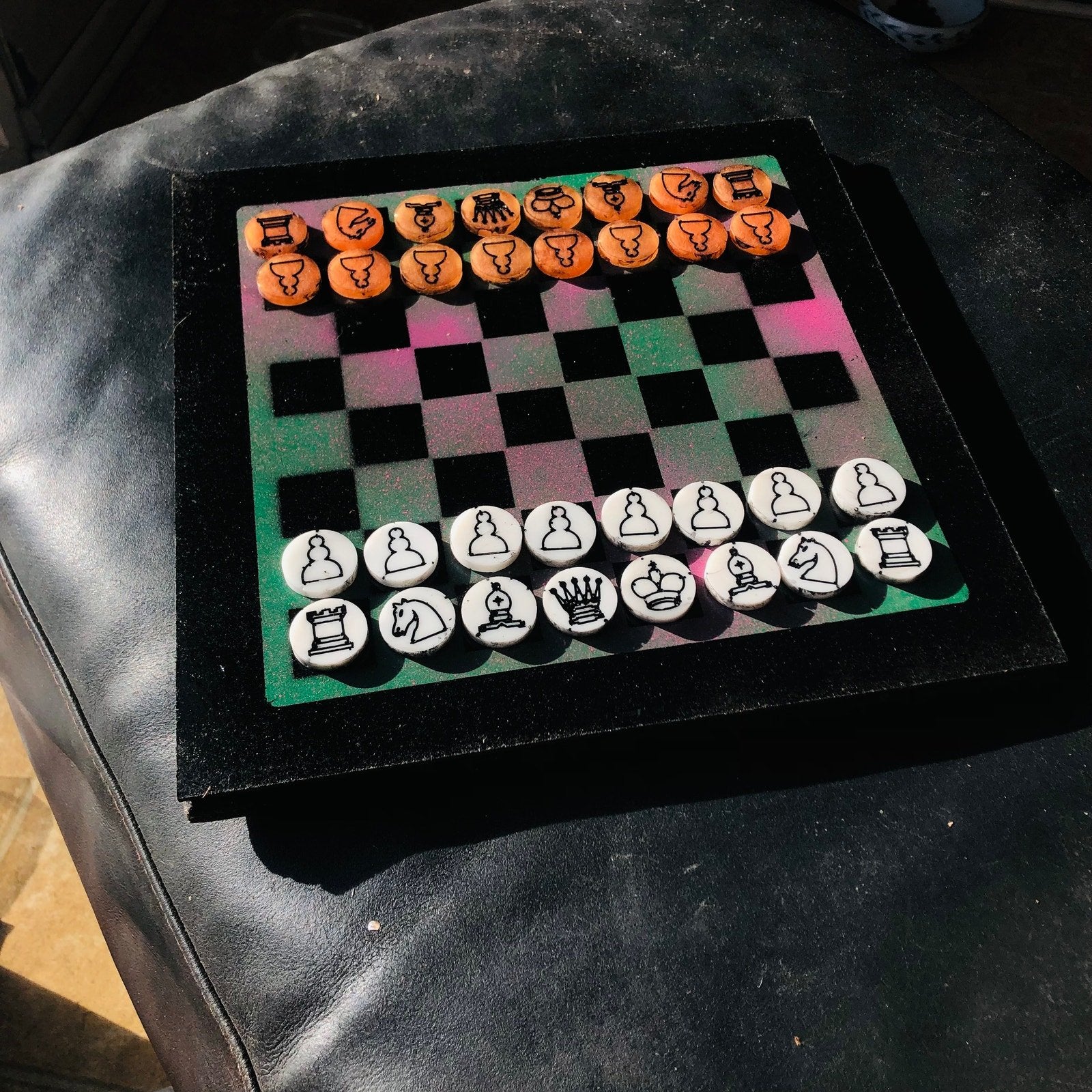 Introducing our exclusive Handcrafted Hardwood Chess Set, meticulously designed with precision and care. Measuring 12 inches by 12 inches, this chess set features a beautifully painted hardwood board that doubles as a work of art. Each set is a unique, one-of-a-kind creation, crafted by hand to ensure that no two sets are alike. Elevate your gaming experience with this exceptional chess set that combines vibrant design with the touch of artisan craftsmanship.
