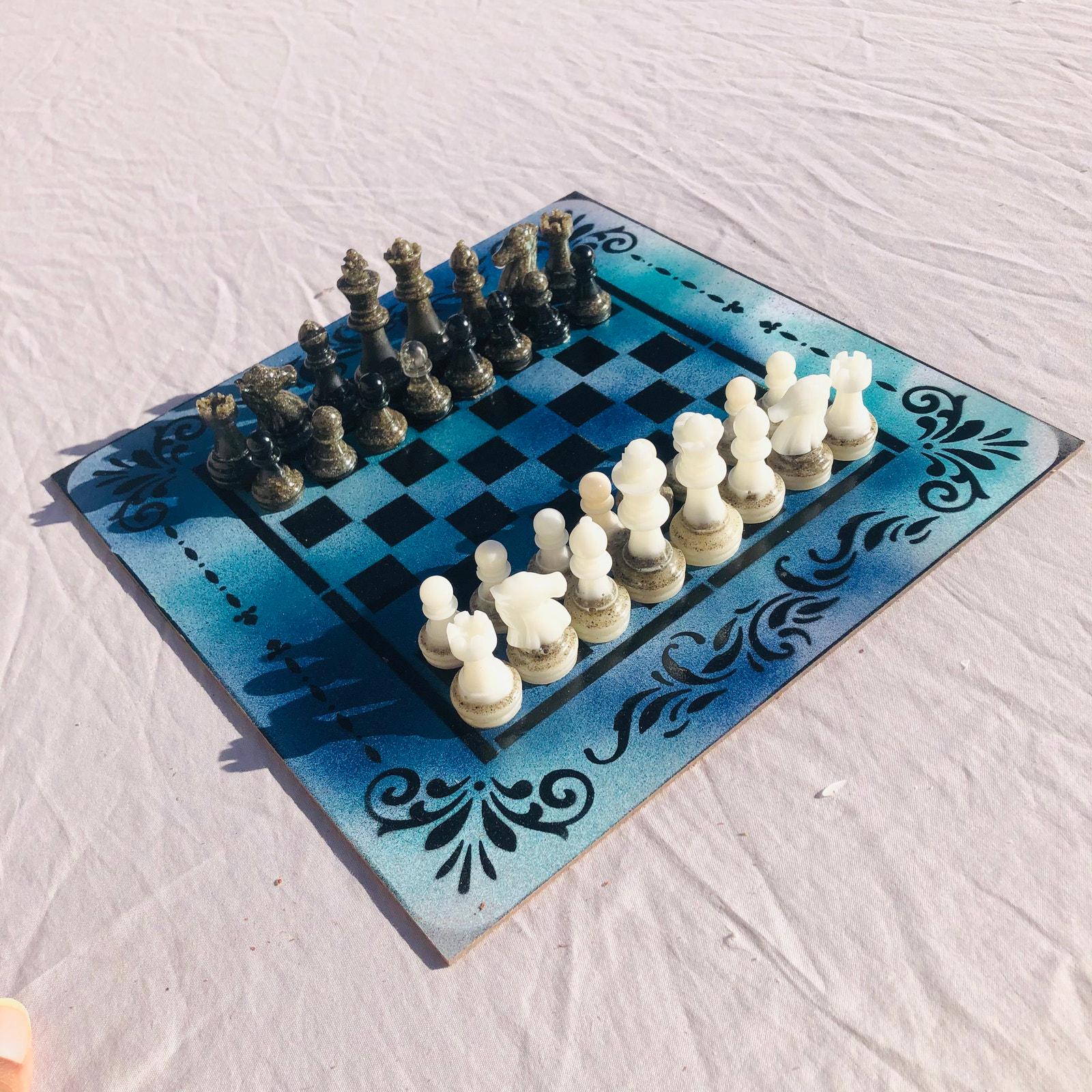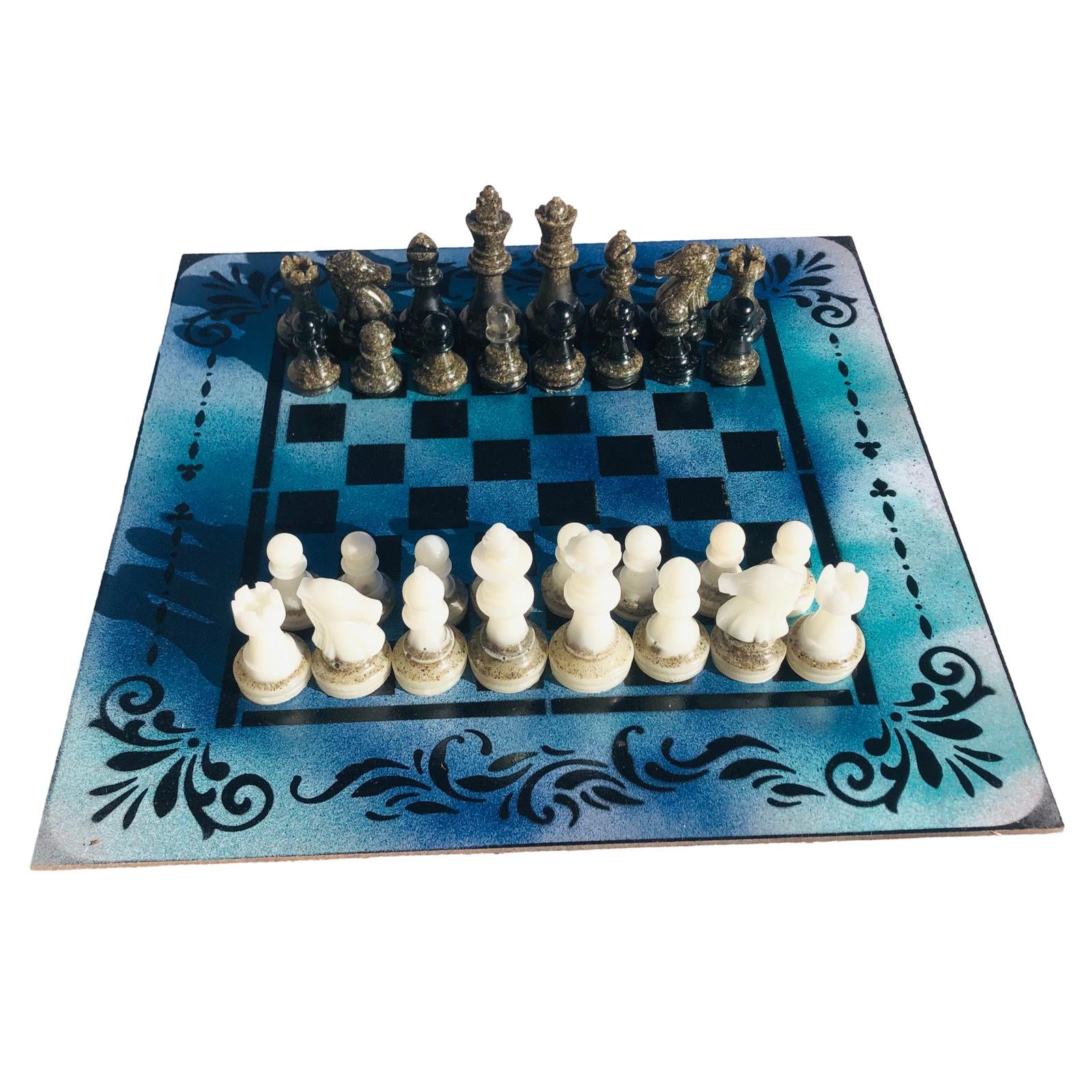 Introducing our exclusive Handcrafted Hardboard Chess Set, meticulously designed with precision and care. Measuring 12 inches by 12 inches, this chess set features a beautifully painted hardwood board that doubles as a work of art. Each set is a unique, one-of-a-kind creation, crafted by hand to ensure that no two sets are alike. Elevate your gaming experience with this exceptional chess set that combines vibrant design with the touch of artisan craftsmanship. This chess board comes with chess pieces.