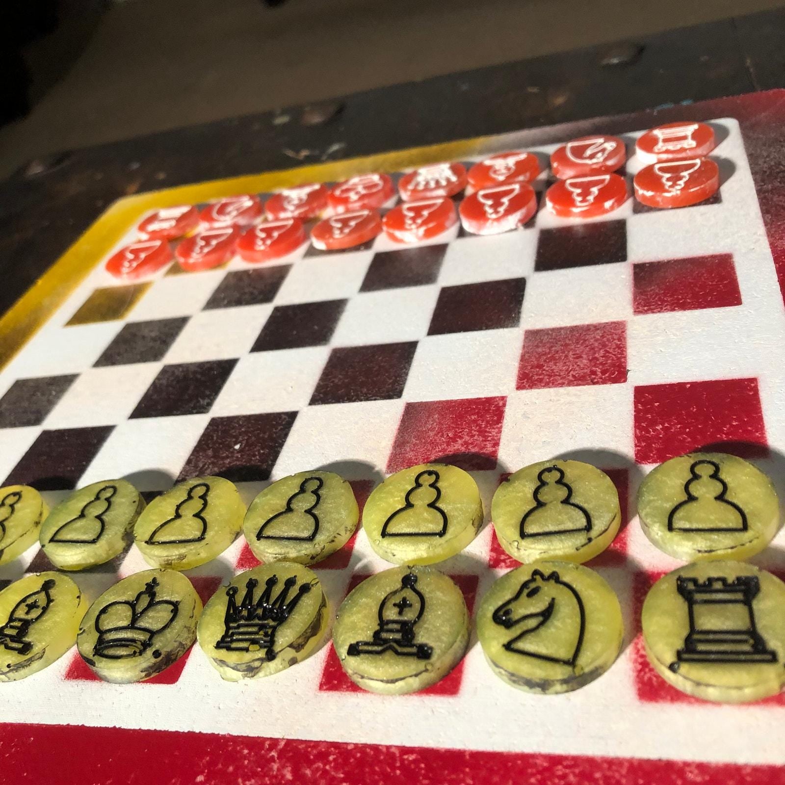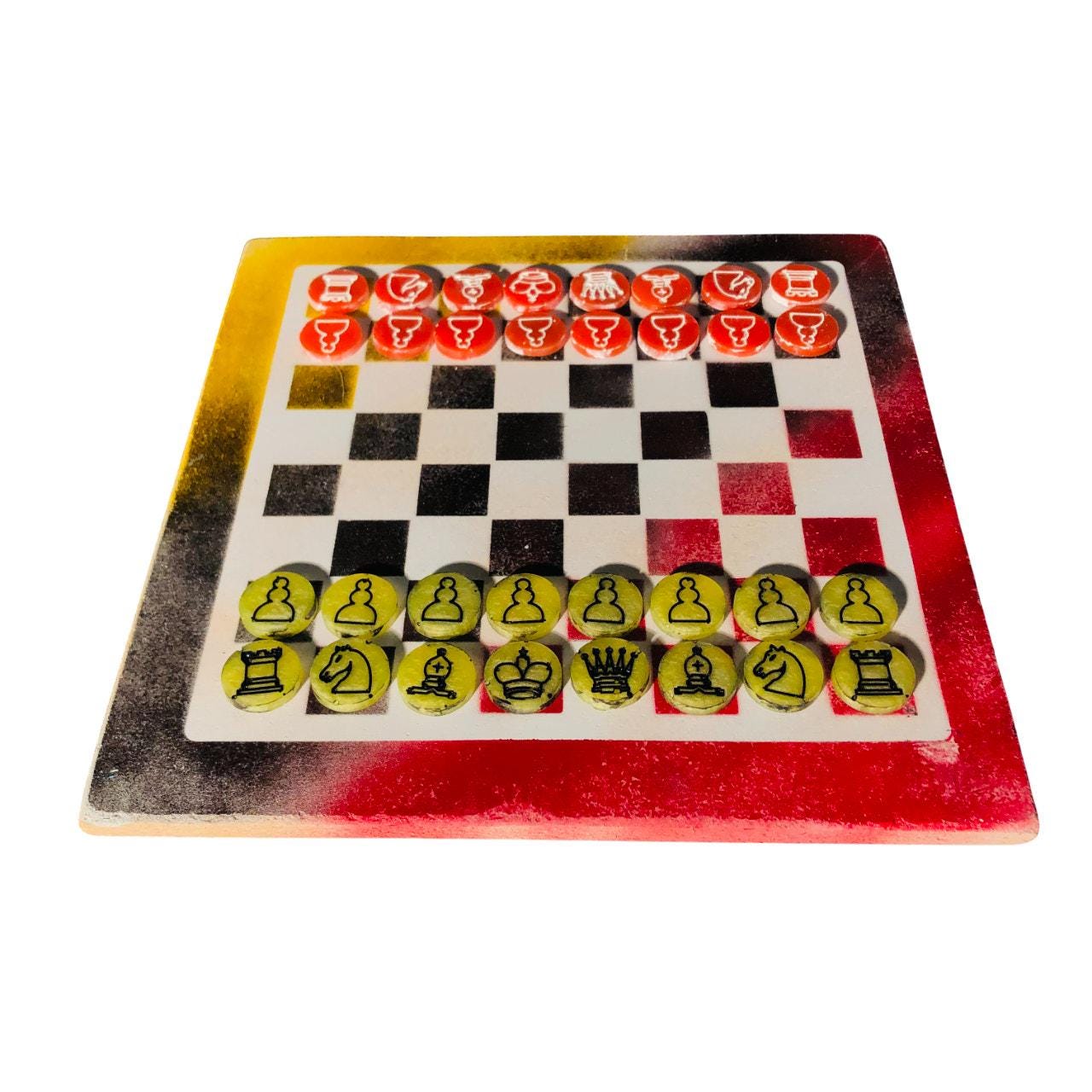 Introducing our exclusive Handcrafted Wooden Chess Set, meticulously designed with precision and care. Measuring 12 inches by 12 inches, this chess set features a beautifully painted Particle Board board that doubles as a work of art. Each set is a unique, one-of-a-kind creation, crafted by hand to ensure that no two sets are alike. Elevate your gaming experience with this exceptional chess set that combines vibrant design with the touch of artisan craftsmanship. This chess board comes with chess pieces.