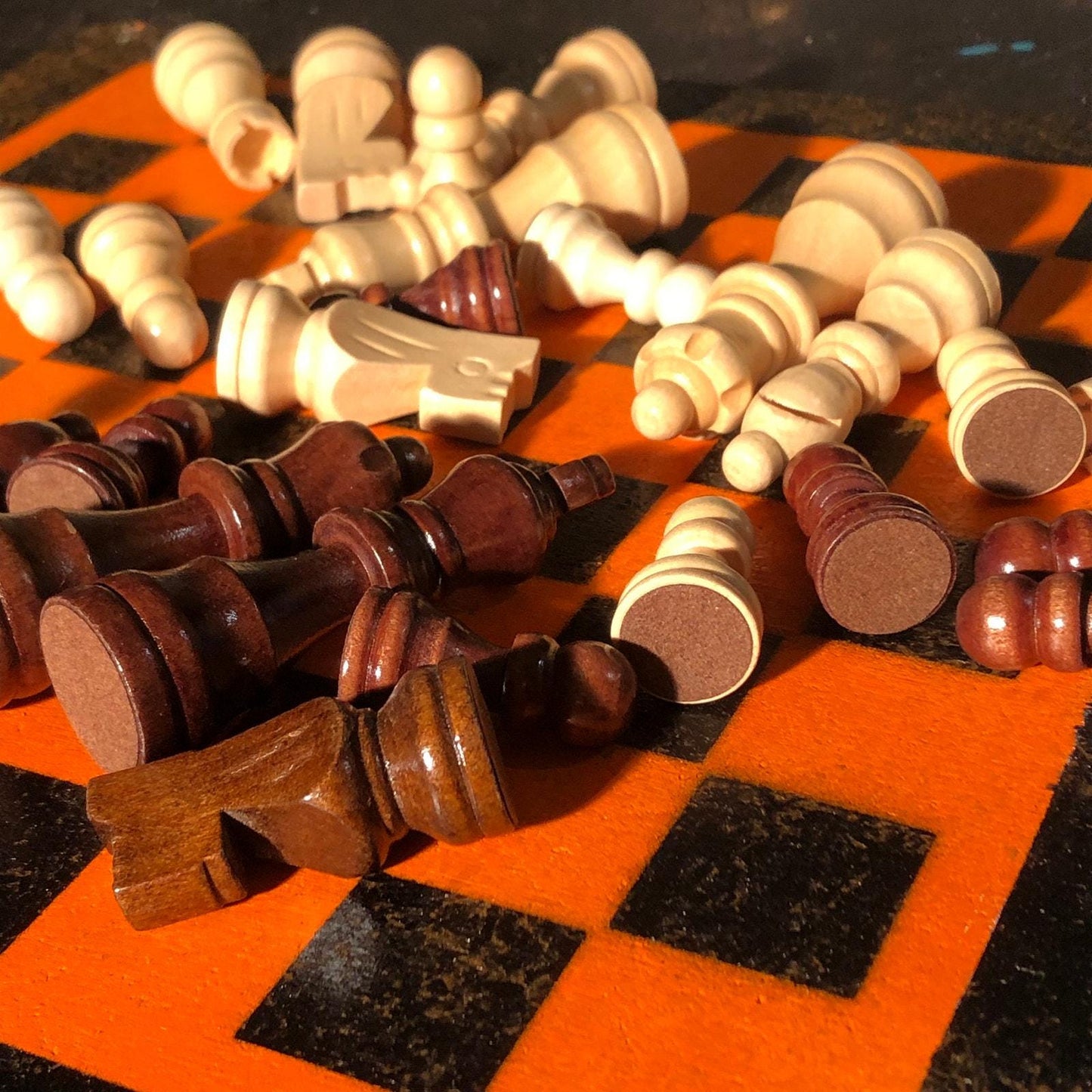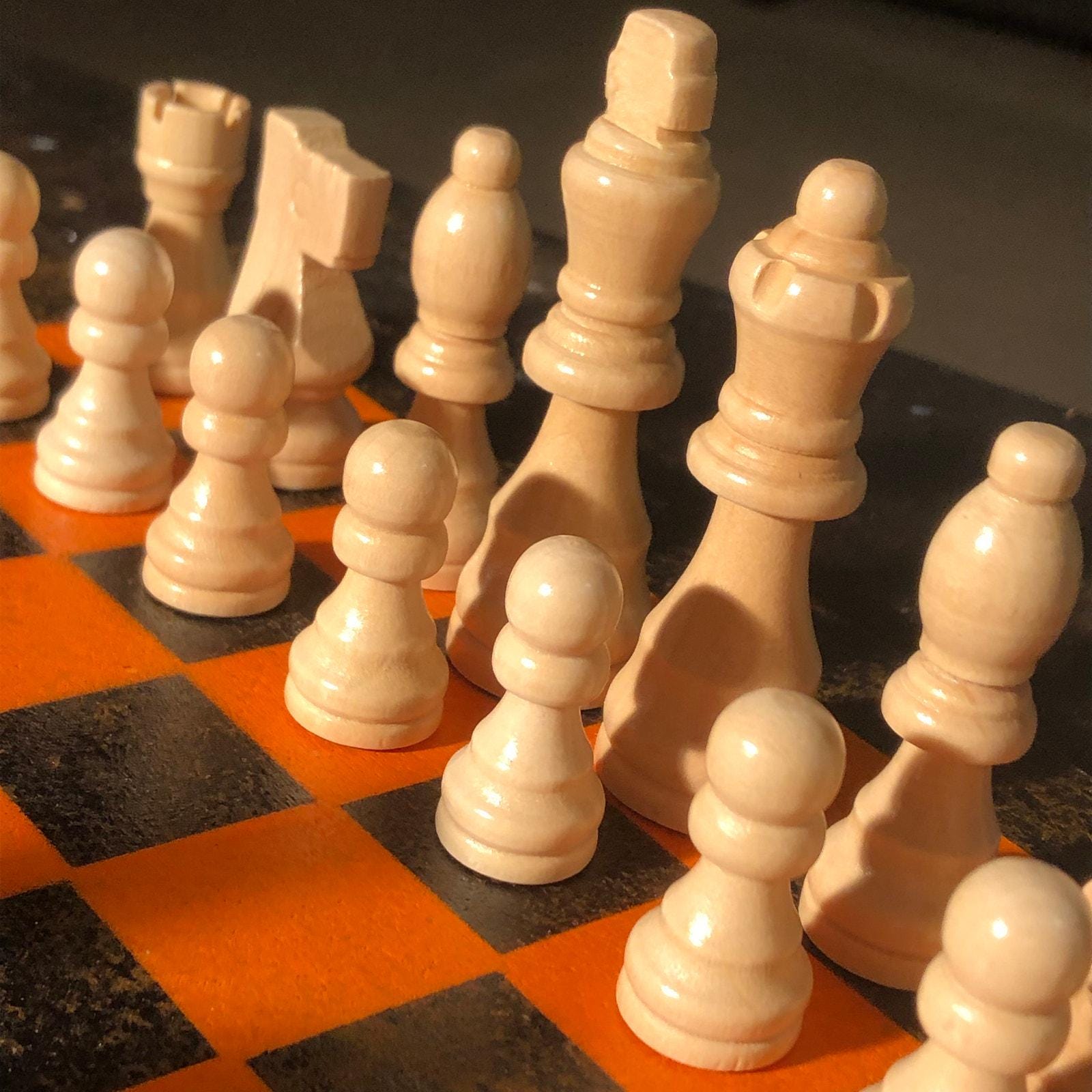 Introducing our exclusive Handcrafted Wooden Chess Set, meticulously designed with precision and care. Measuring 12 inches by 12 inches, this chess set features a beautifully painted Particle Board board that doubles as a work of art. Each set is a unique, one-of-a-kind creation, crafted by hand to ensure that no two sets are alike. Elevate your gaming experience with this exceptional chess set that combines vibrant design with the touch of artisan craftsmanship. This chess board comes with chess pieces.