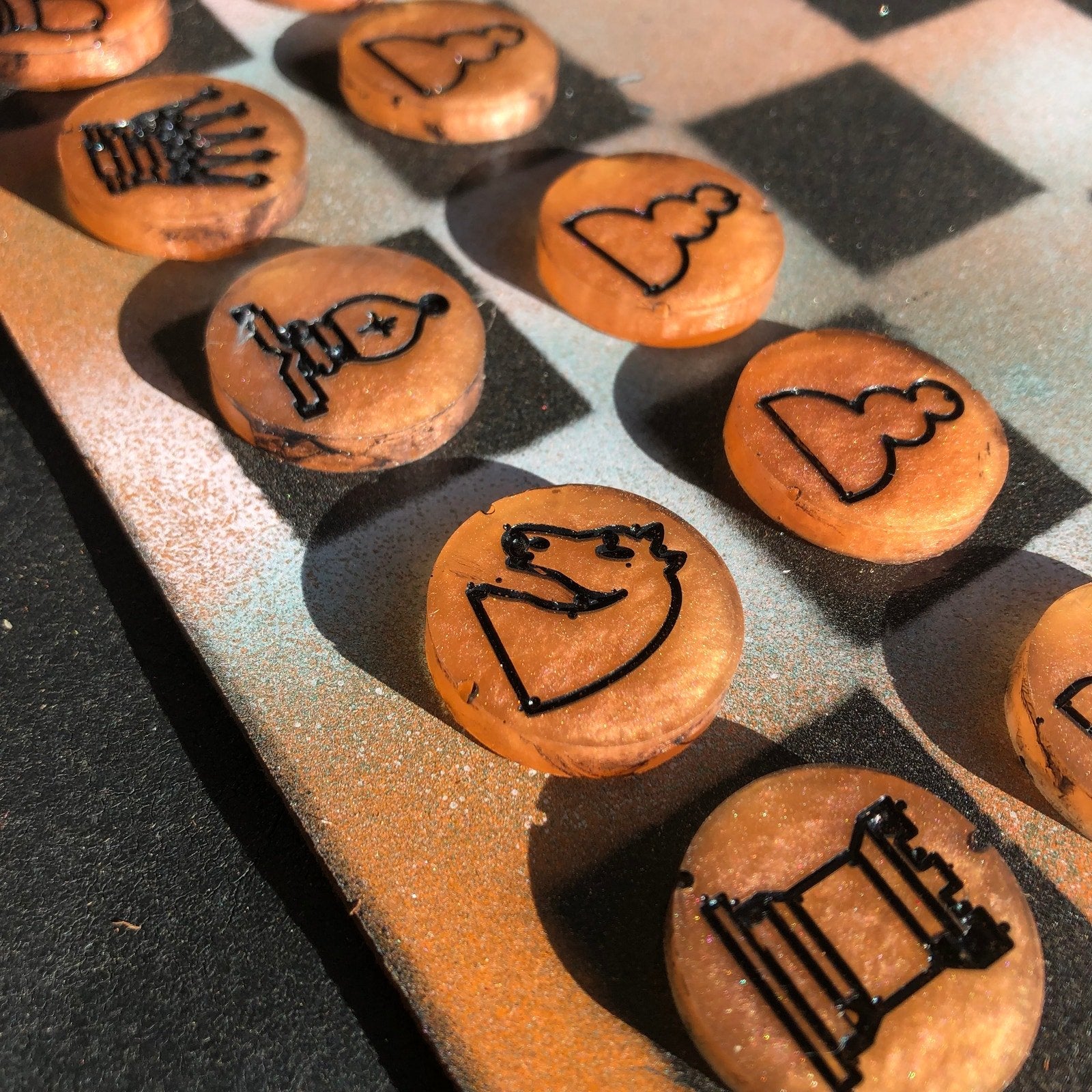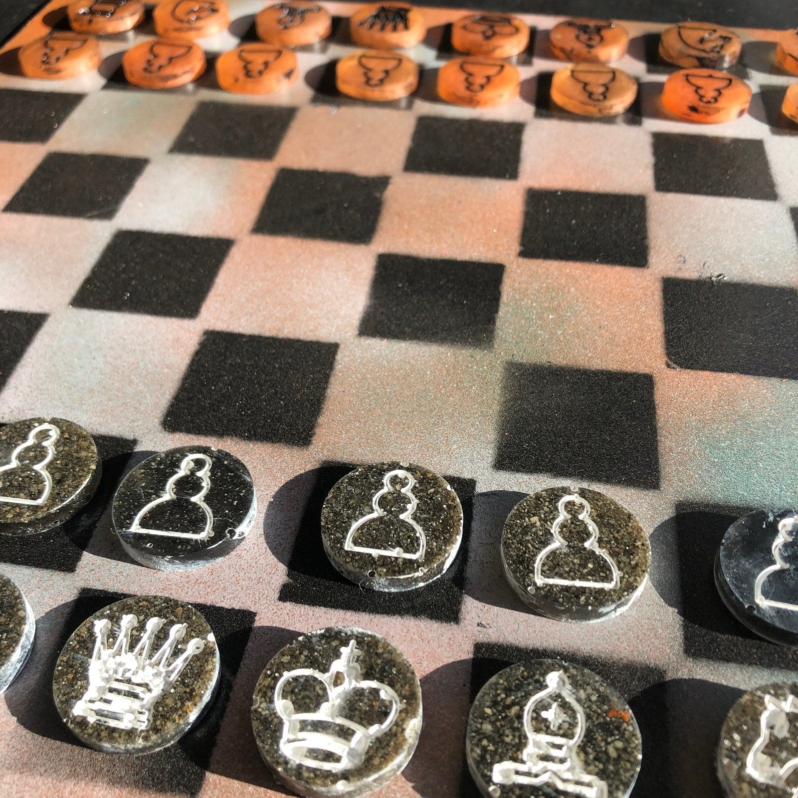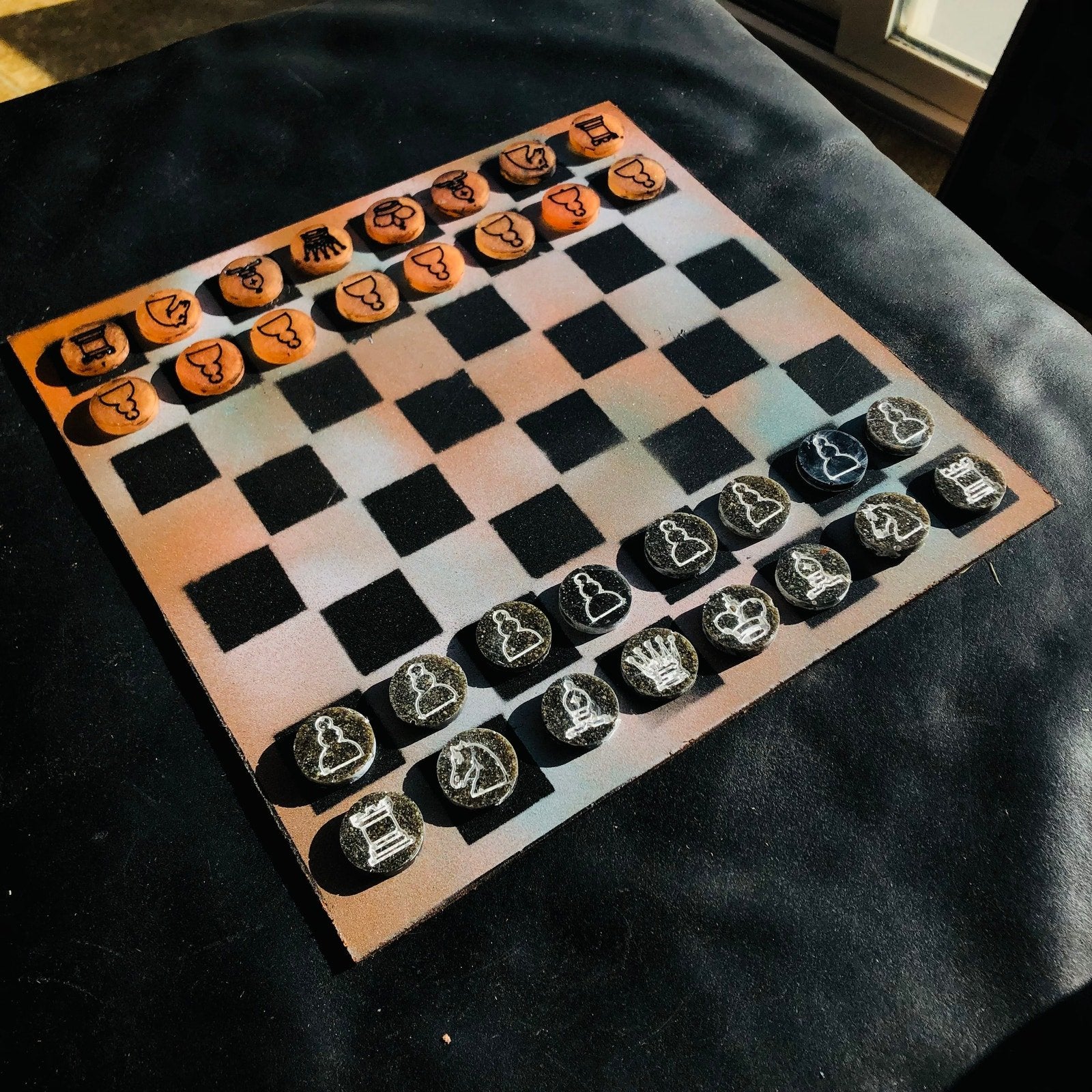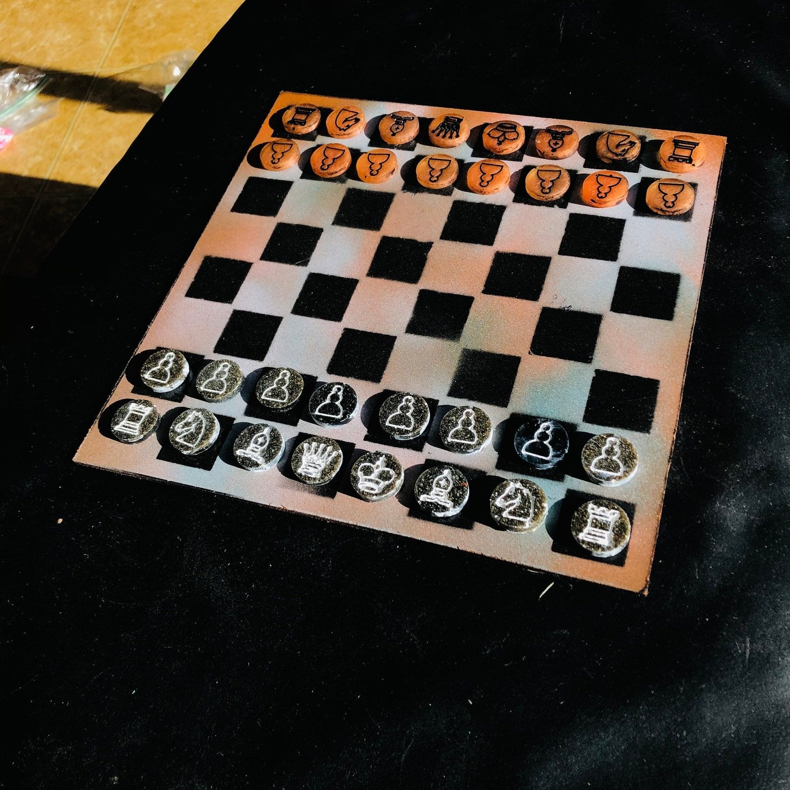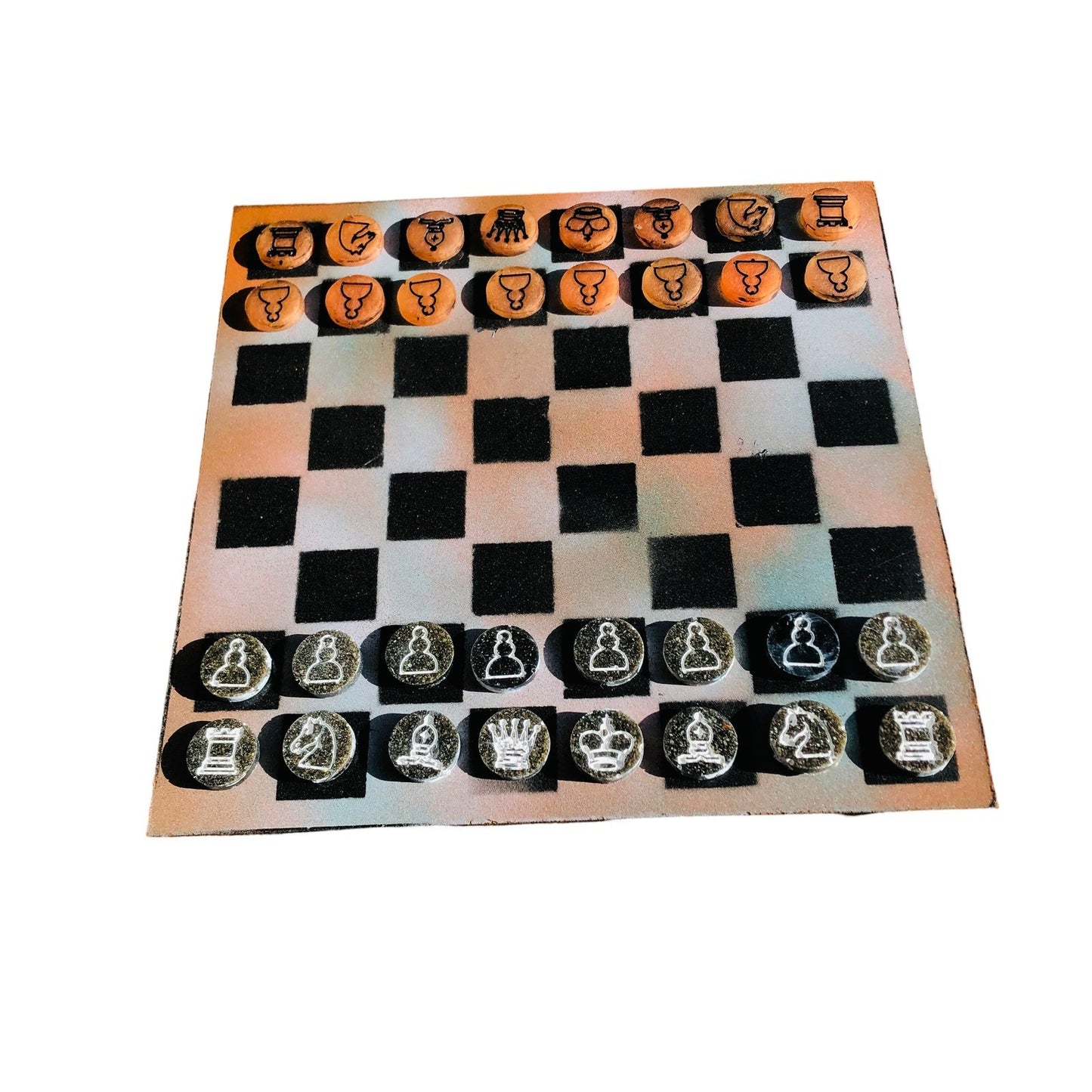 Introducing our exclusive Handcrafted Hardboard Chess Set, meticulously designed with precision and care. Measuring 12 inches by 12 inches, this chess set features a beautifully painted hardwood board that doubles as a work of art. Each set is a unique, one-of-a-kind creation, crafted by hand to ensure that no two sets are alike. Elevate your gaming experience with this exceptional chess set that combines vibrant design with the touch of artisan craftsmanship.