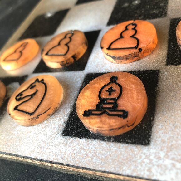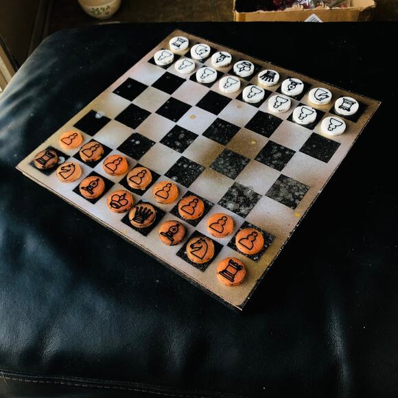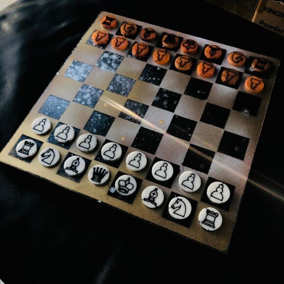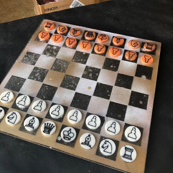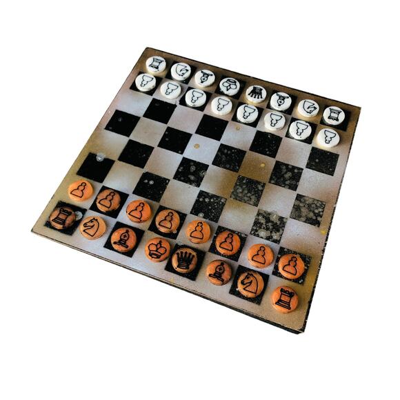 Introducing our exclusive Handcrafted Hardwood Chess Set, meticulously designed with precision and care. Measuring 12 inches by 12 inches, this chess set features a beautifully painted hardwood board that doubles as a work of art. Each set is a unique, one-of-a-kind creation, crafted by hand to ensure that no two sets are alike. Elevate your gaming experience with this exceptional chess set that combines vibrant design with the touch of artisan craftsmanship.