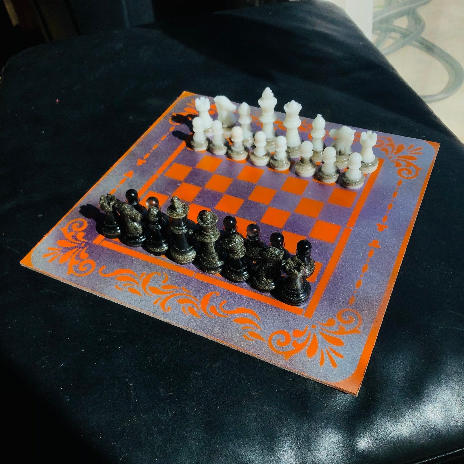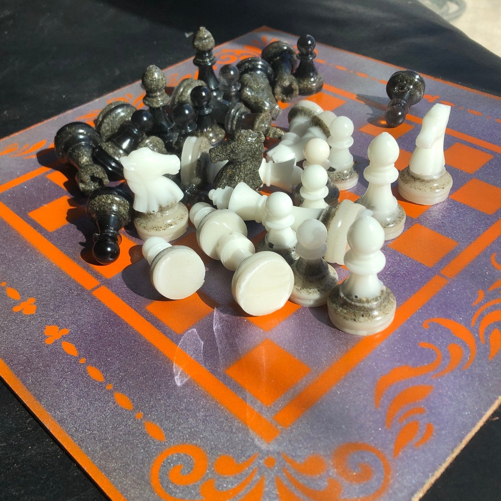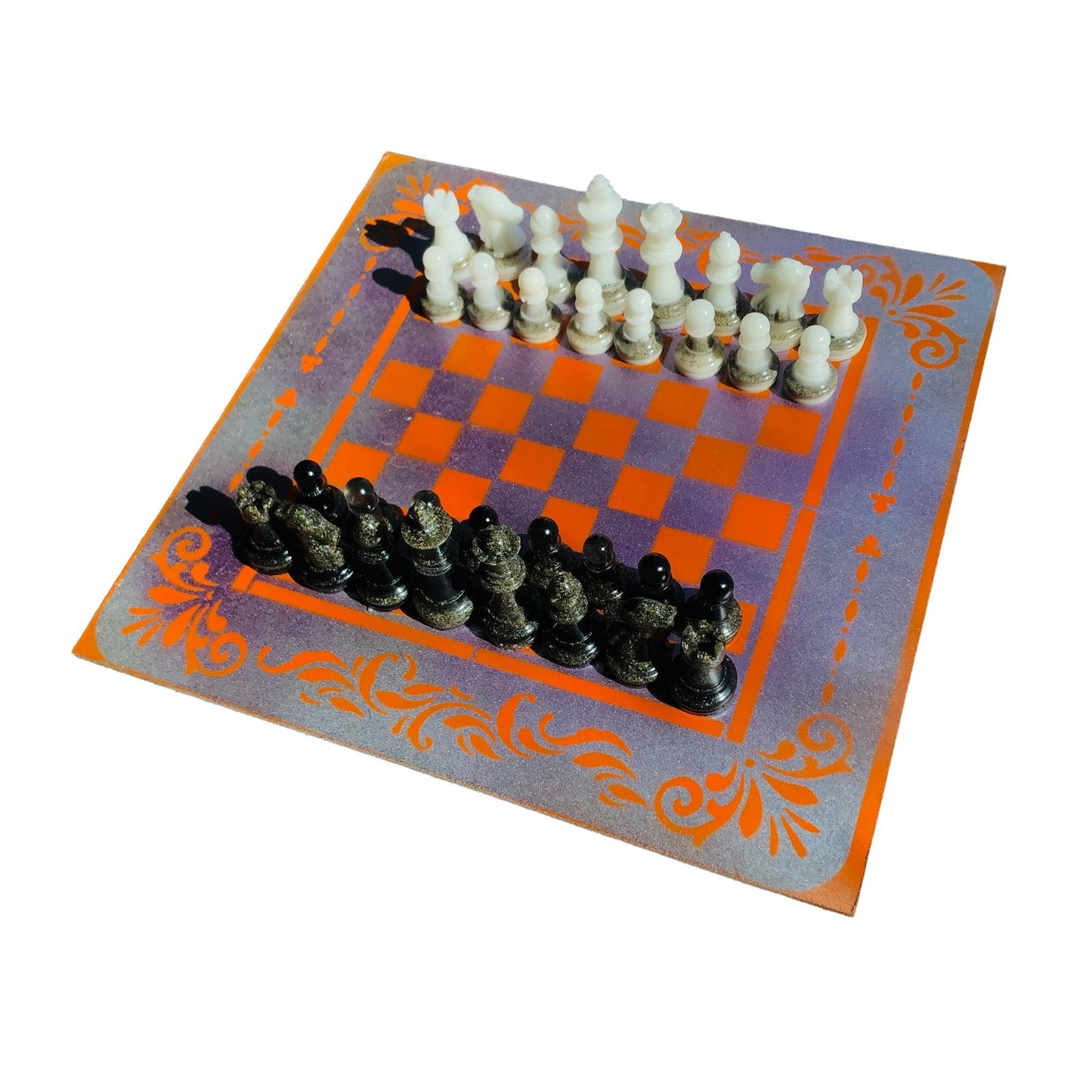Introducing our exclusive Handcrafted Hardboard Chess Set, meticulously designed with precision and care. Measuring 12 inches by 12 inches, this chess set features a beautifully painted hardwood board that doubles as a work of art. Each set is a unique, one-of-a-kind creation, crafted by hand to ensure that no two sets are alike. Elevate your gaming experience with this exceptional chess set that combines vibrant design with the touch of artisan craftsmanship.