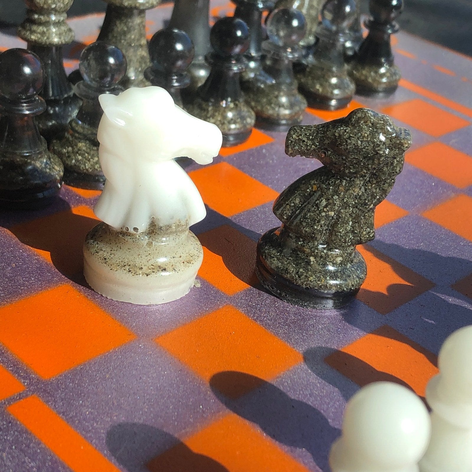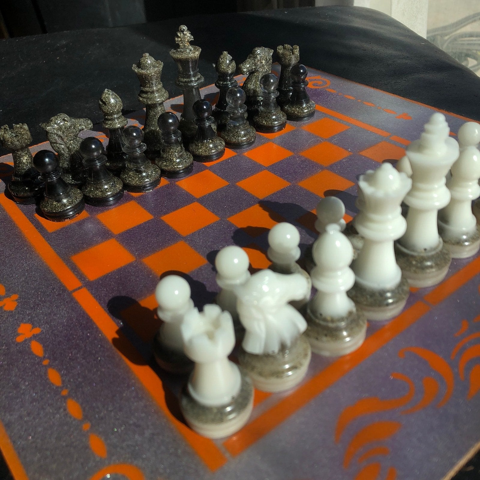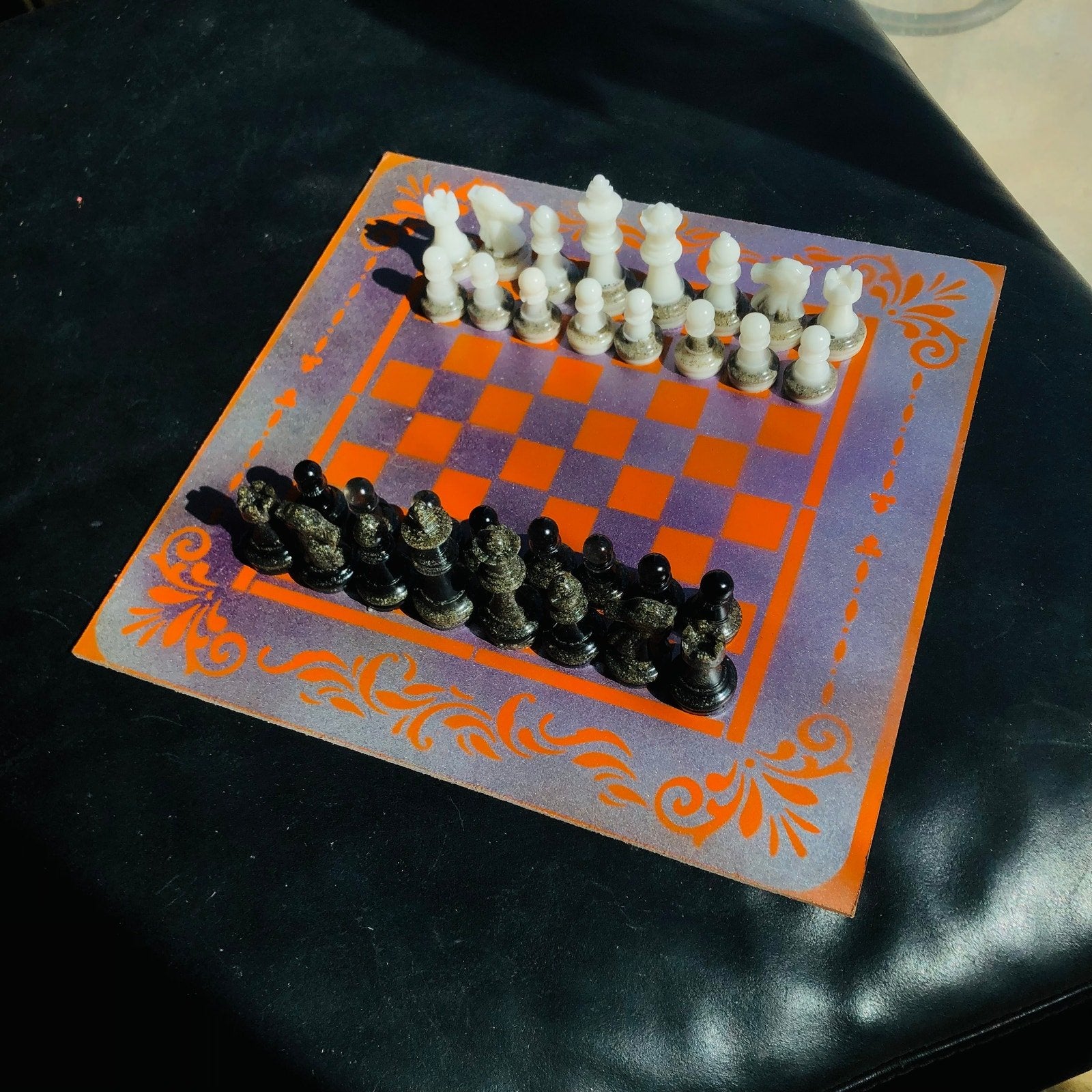Introducing our exclusive Handcrafted Hardboard Chess Set, meticulously designed with precision and care. Measuring 12 inches by 12 inches, this chess set features a beautifully painted hardwood board that doubles as a work of art. Each set is a unique, one-of-a-kind creation, crafted by hand to ensure that no two sets are alike. Elevate your gaming experience with this exceptional chess set that combines vibrant design with the touch of artisan craftsmanship.