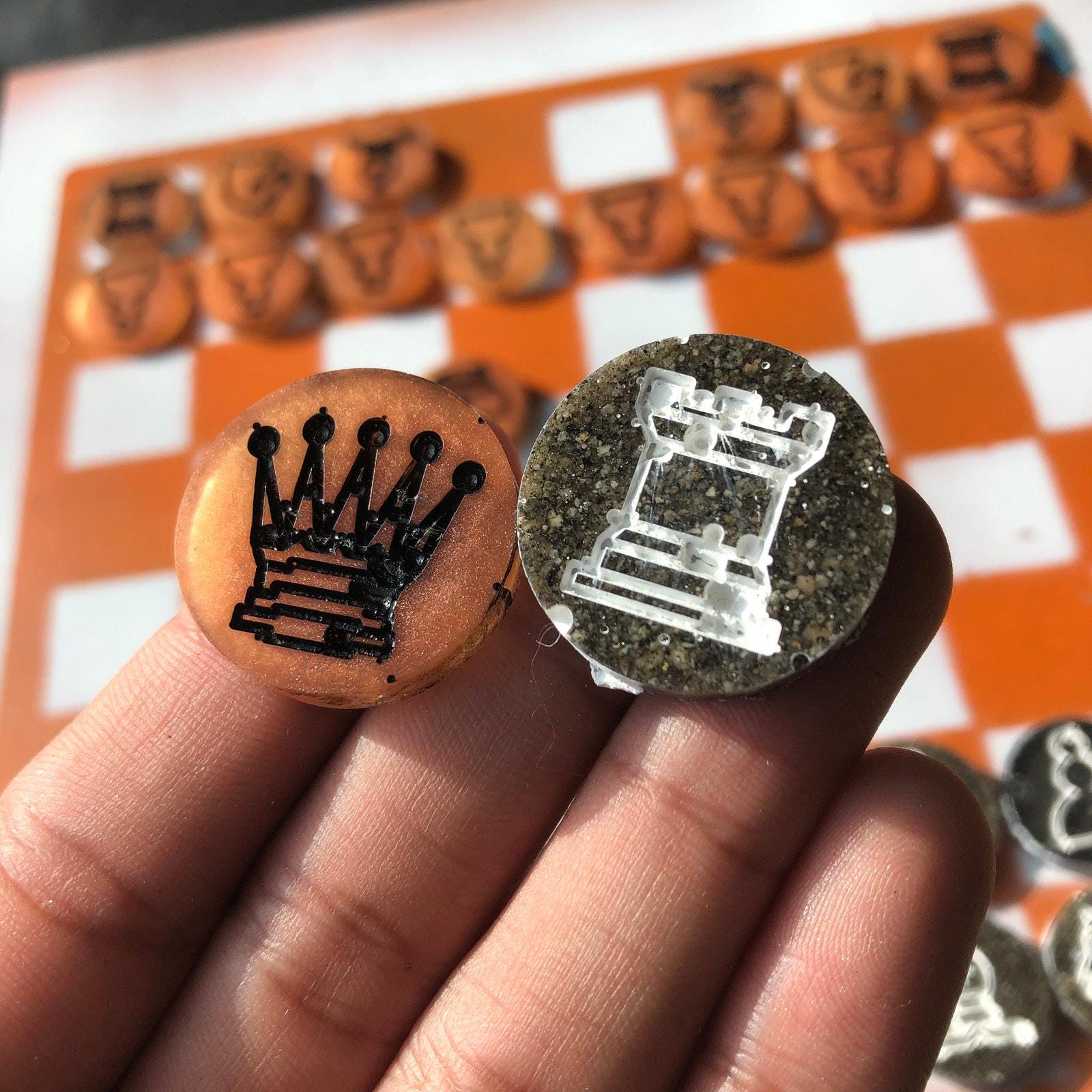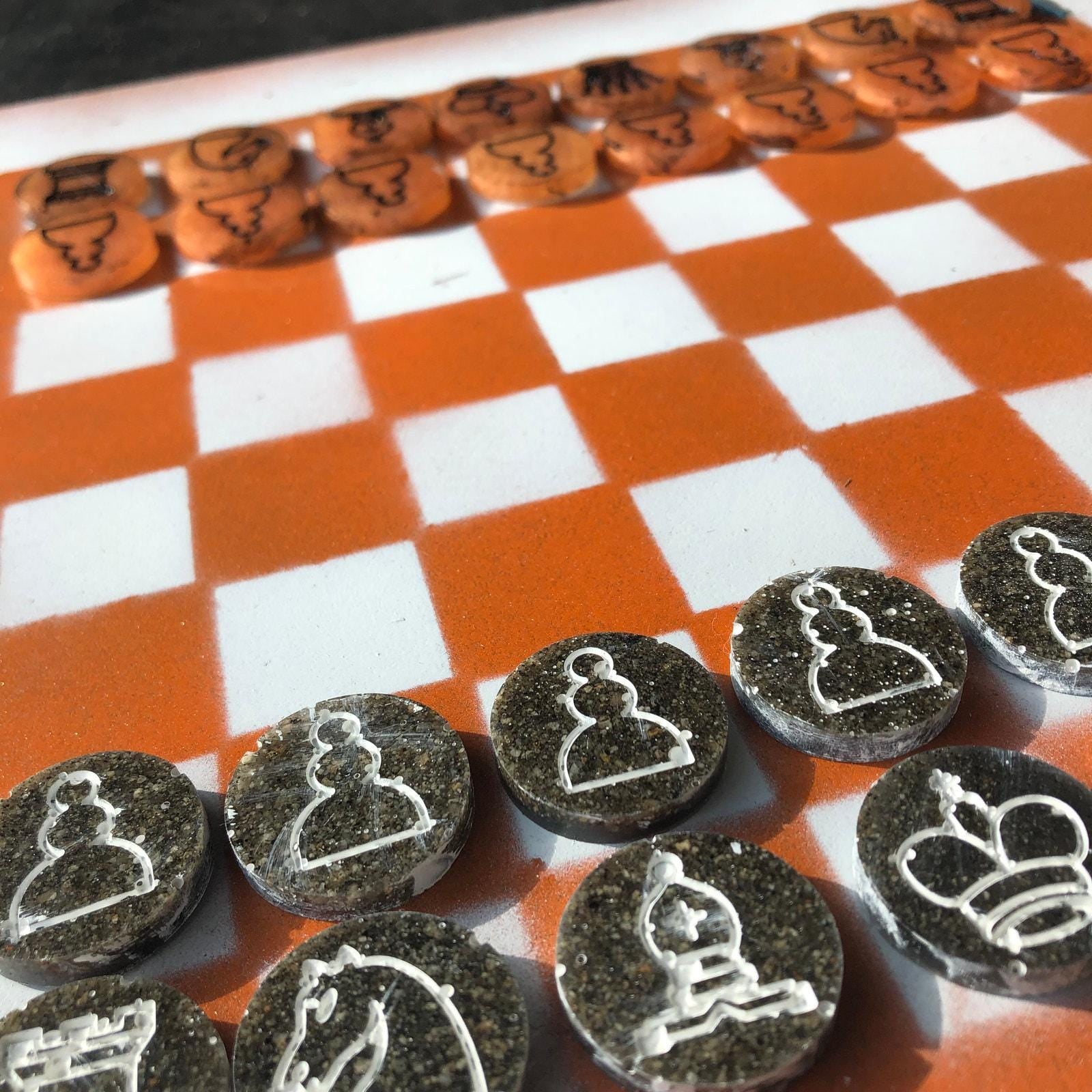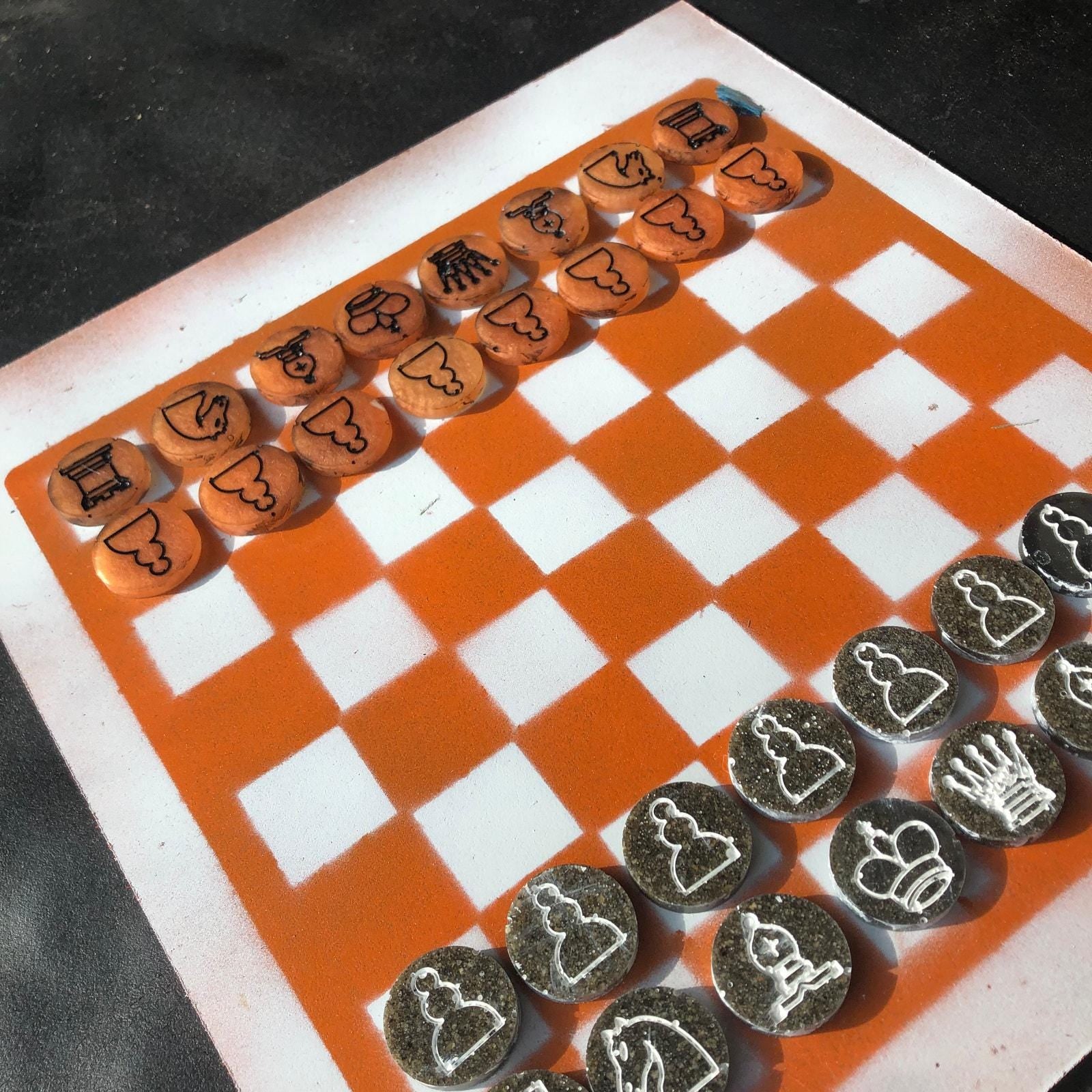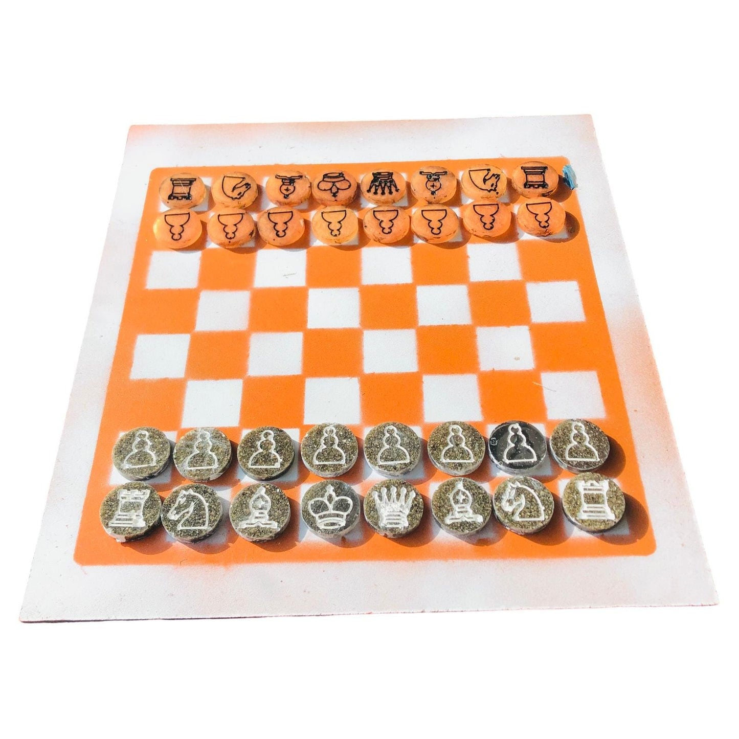 Introducing our exclusive Handcrafted Hardboard Chess Set, meticulously designed with precision and care. Measuring 12 inches by 12 inches, this chess set features a beautifully painted hardwood board that doubles as a work of art. Each set is a unique, one-of-a-kind creation, crafted by hand to ensure that no two sets are alike. Elevate your gaming experience with this exceptional chess set that combines vibrant design with the touch of artisan craftsmanship. This chess board comes with chess pieces.