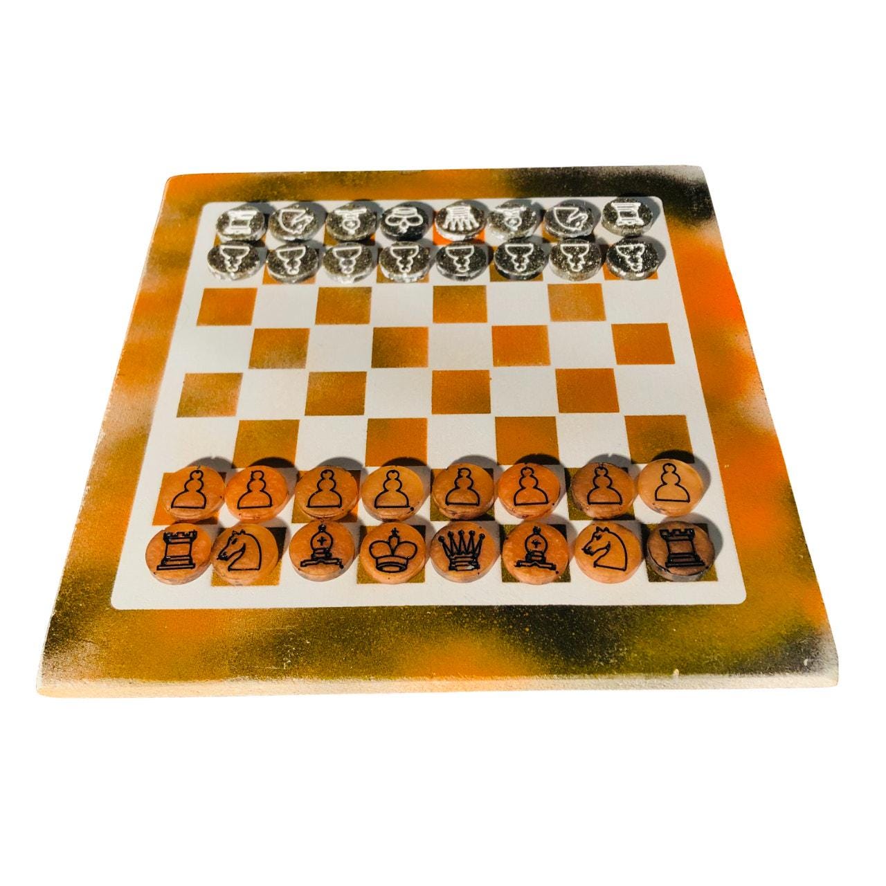 Introducing our exclusive Handcrafted Wooden Chess Set, meticulously designed with precision and care. Measuring 12 inches by 12 inches, this chess set features a beautifully painted Particle Board board that doubles as a work of art. Each set is a unique, one-of-a-kind creation, crafted by hand to ensure that no two sets are alike. Elevate your gaming experience with this exceptional chess set that combines vibrant design with the touch of artisan craftsmanship. This chess board comes with chess pieces.