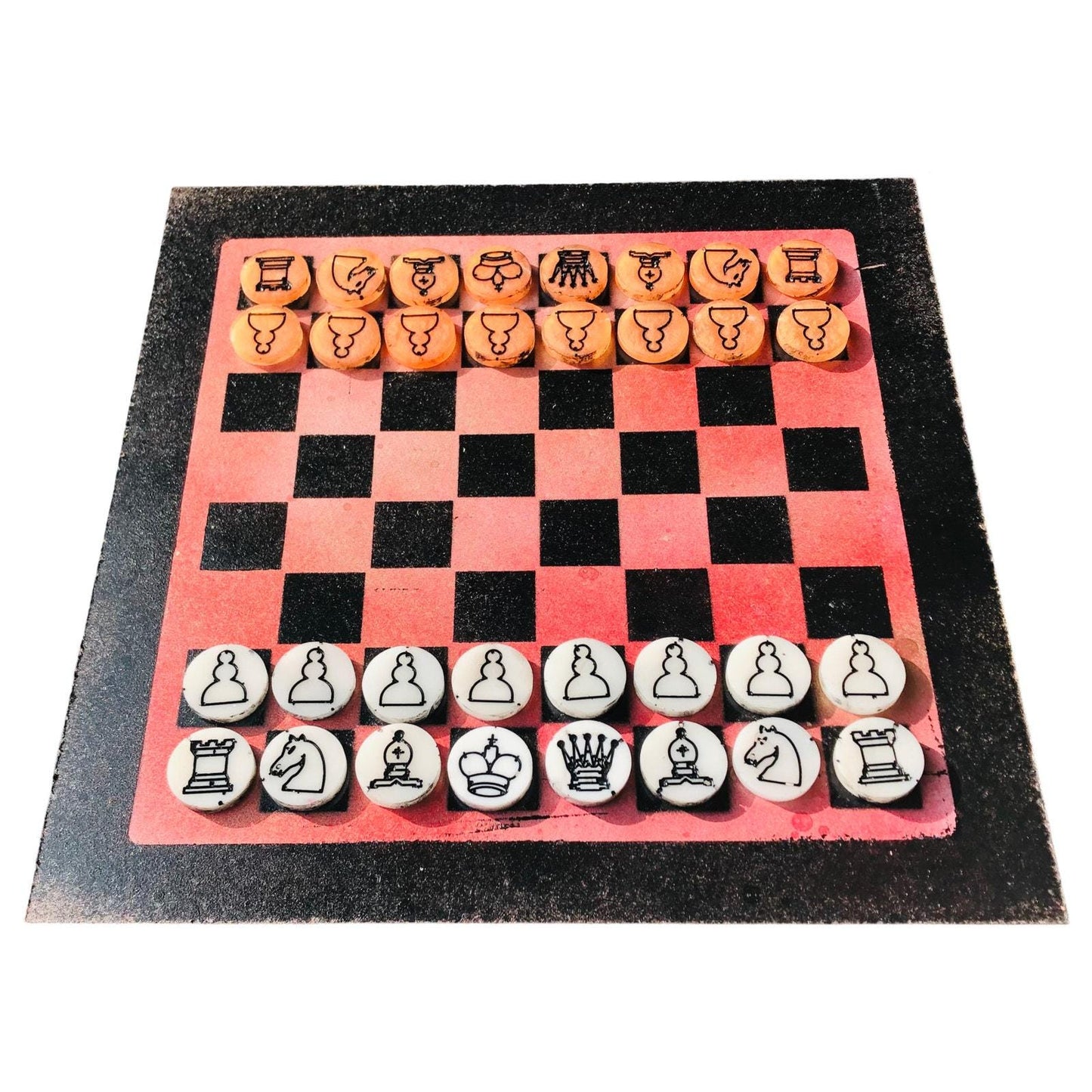 Introducing our exclusive Handcrafted Hardboard Chess Set, meticulously designed with precision and care. Measuring 12 inches by 12 inches, this chess set features a beautifully painted hardwood board that doubles as a work of art. Each set is a unique, one-of-a-kind creation, crafted by hand to ensure that no two sets are alike. Elevate your gaming experience with this exceptional chess set that combines vibrant design with the touch of artisan craftsmanship. This chess board comes with chess pieces.