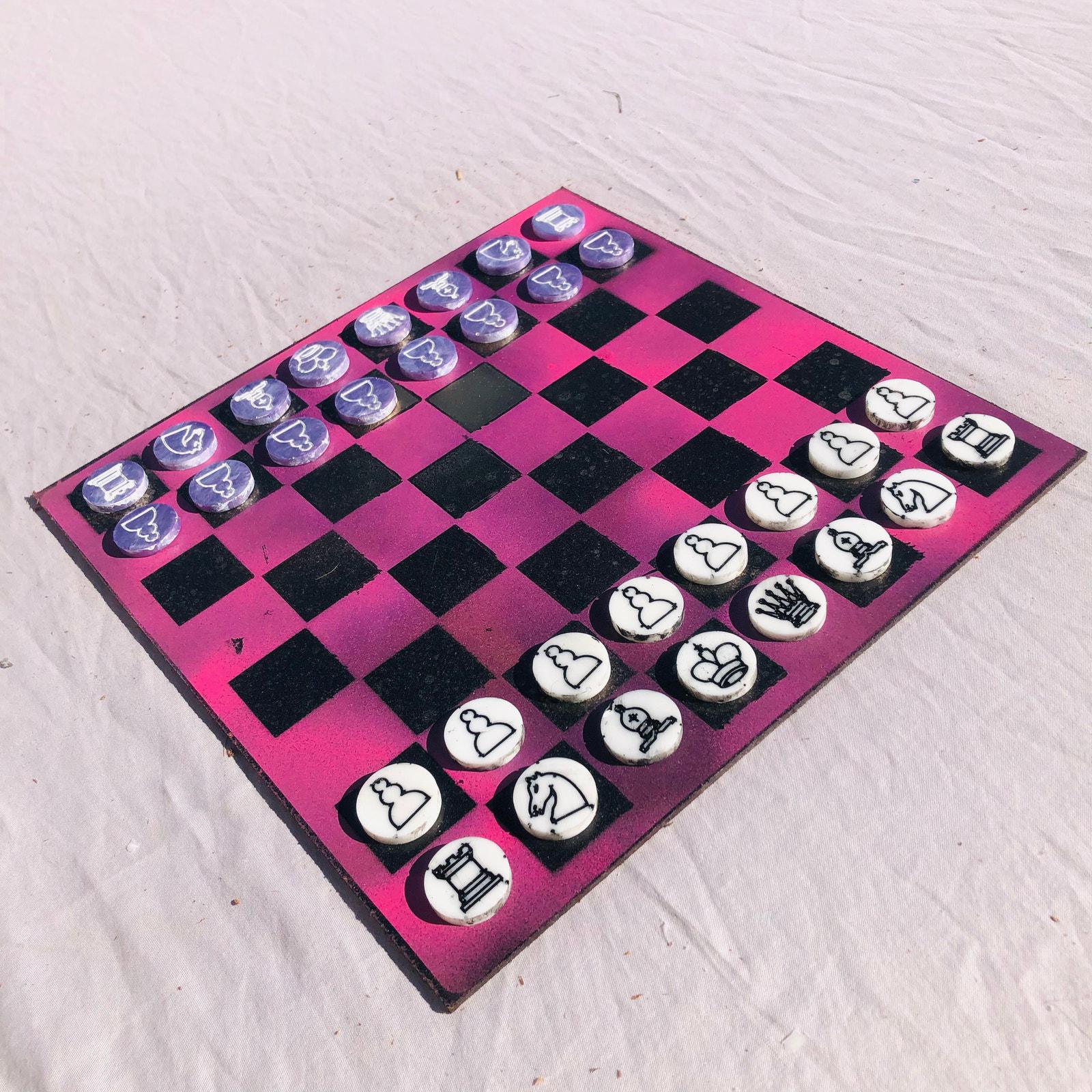 Introducing our exclusive Handcrafted Hardboard Chess Set, meticulously designed with precision and care. Measuring 12 inches by 12 inches, this chess set features a beautifully painted hardwood board that doubles as a work of art. Each set is a unique, one-of-a-kind creation, crafted by hand to ensure that no two sets are alike. Elevate your gaming experience with this exceptional chess set that combines vibrant design with the touch of artisan craftsmanship. This chess board comes with chess pieces.