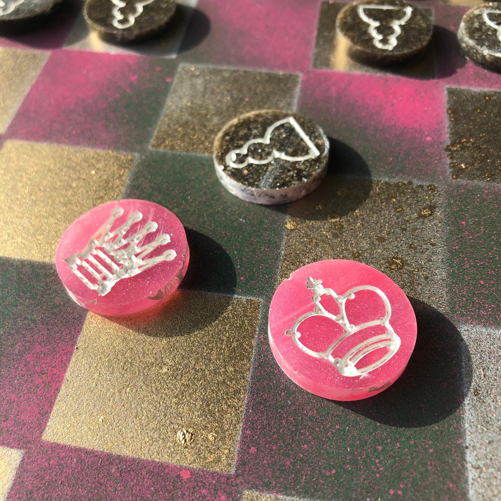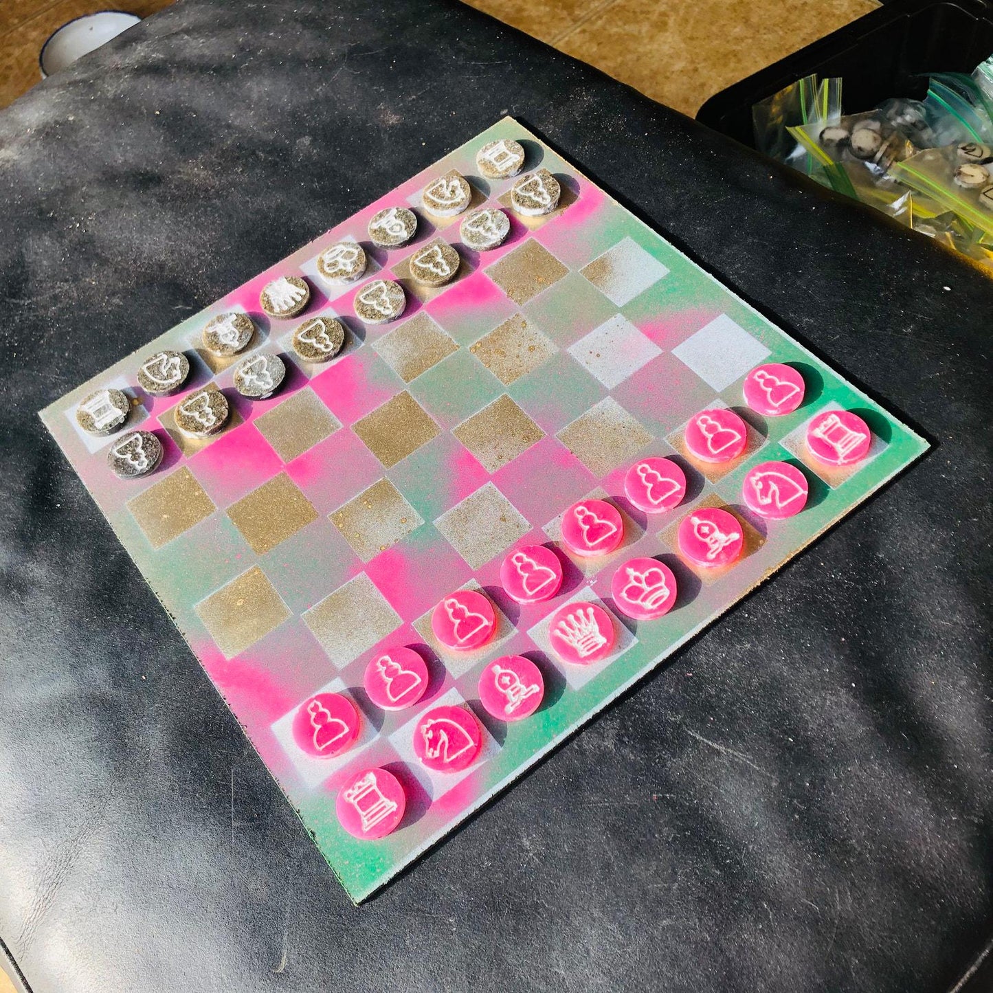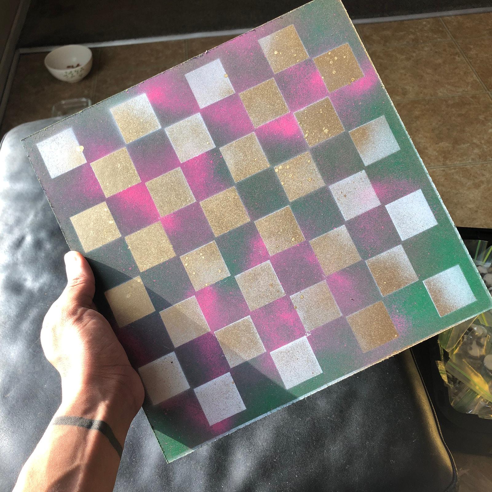 Introducing our exclusive Handcrafted Hardboard Chess Set, meticulously designed with precision and care. Measuring 12 inches by 12 inches, this chess set features a beautifully painted hardwood board that doubles as a work of art. Each set is a unique, one-of-a-kind creation, crafted by hand to ensure that no two sets are alike. Elevate your gaming experience with this exceptional chess set that combines vibrant design with the touch of artisan craftsmanship. This chess board comes with chess pieces.
