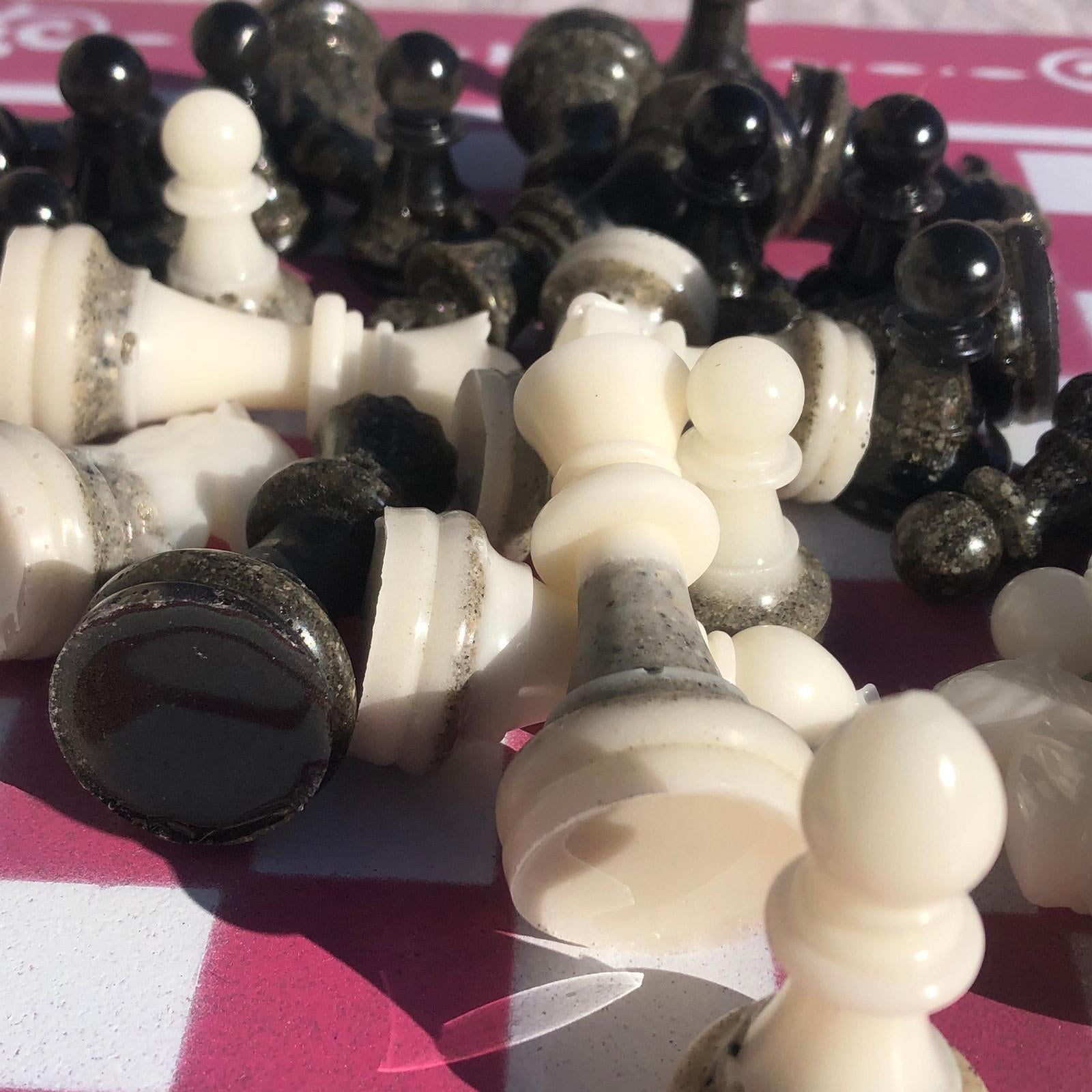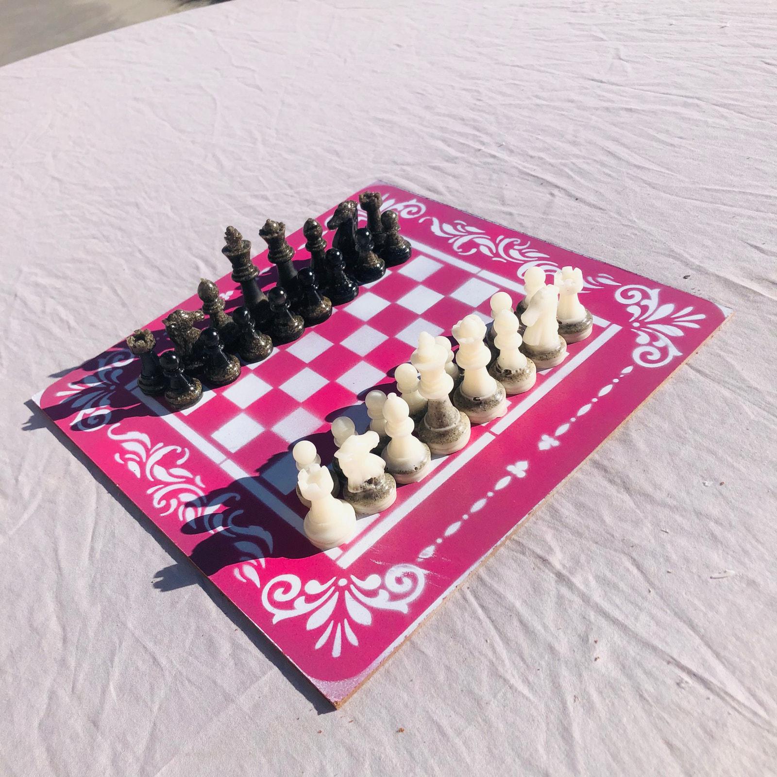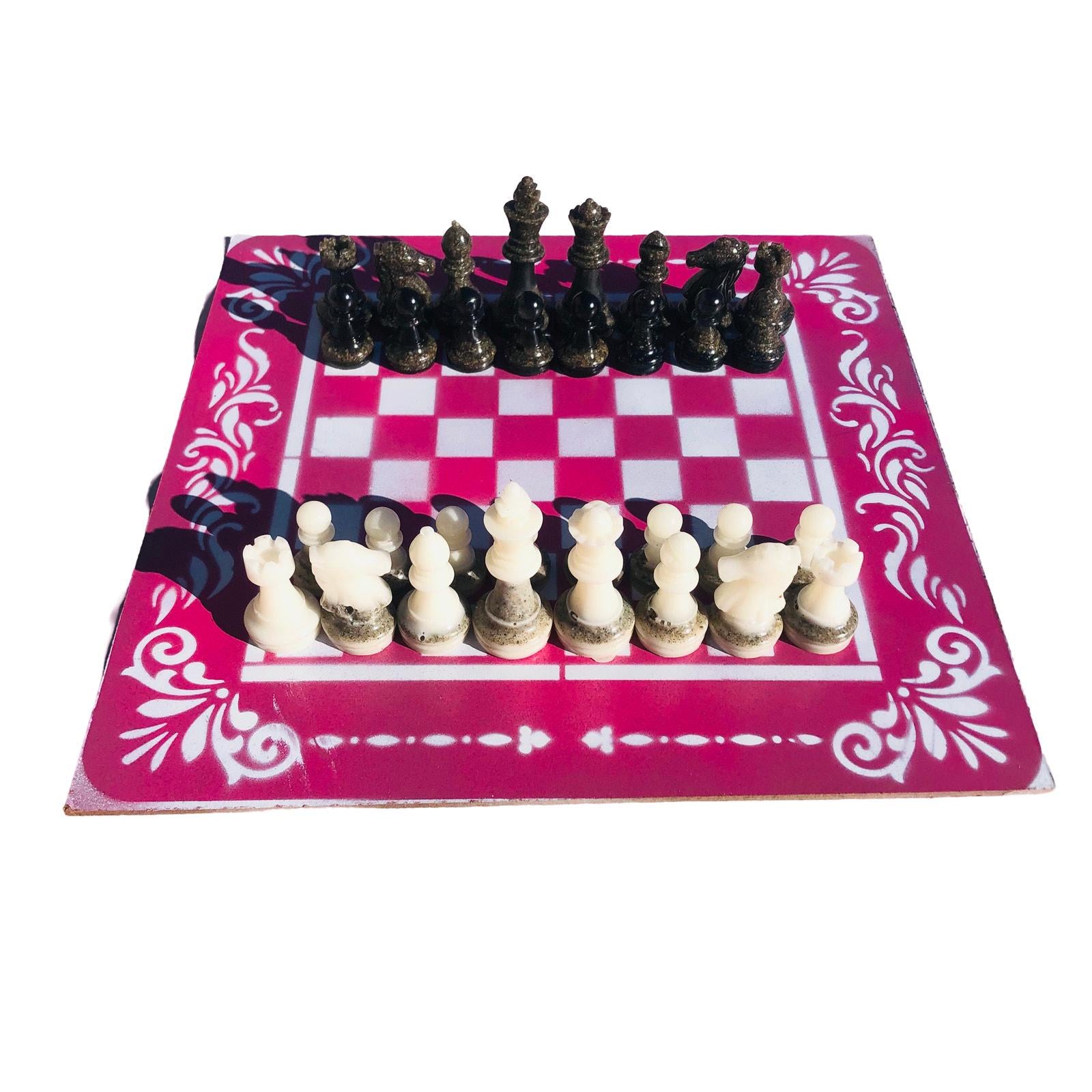 Introducing our exclusive Handcrafted Hardboard Chess Set, meticulously designed with precision and care. Measuring 12 inches by 12 inches, this chess set features a beautifully painted hardwood board that doubles as a work of art. Each set is a unique, one-of-a-kind creation, crafted by hand to ensure that no two sets are alike. Elevate your gaming experience with this exceptional chess set that combines vibrant design with the touch of artisan craftsmanship. This chess board comes with chess pieces.