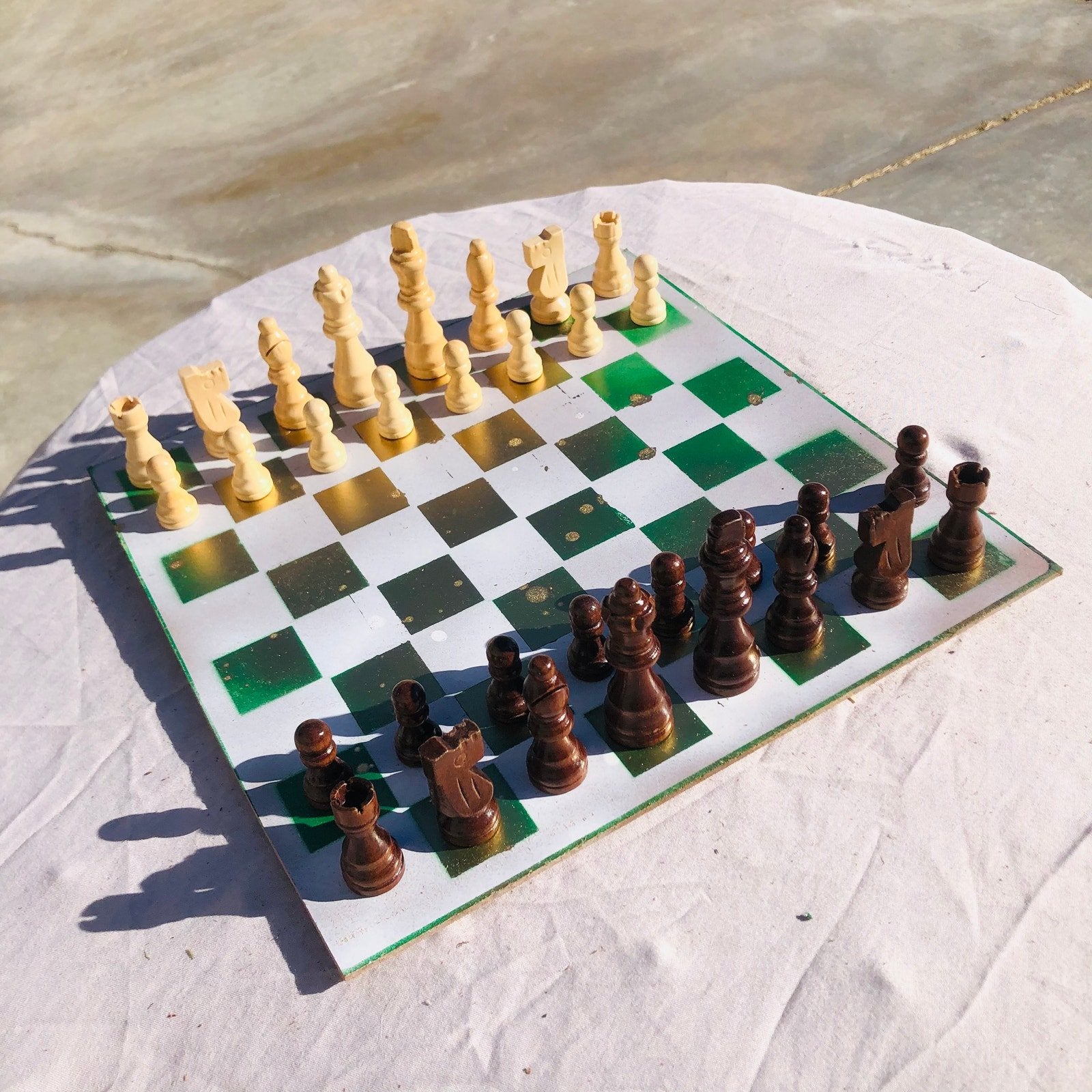 Introducing our exclusive Handcrafted Hardboard Chess Set, meticulously designed with precision and care. Measuring 12 inches by 12 inches, this chess set features a beautifully painted hardwood board that doubles as a work of art. Each set is a unique, one-of-a-kind creation, crafted by hand to ensure that no two sets are alike. Elevate your gaming experience with this exceptional chess set that combines vibrant design with the touch of artisan craftsmanship.