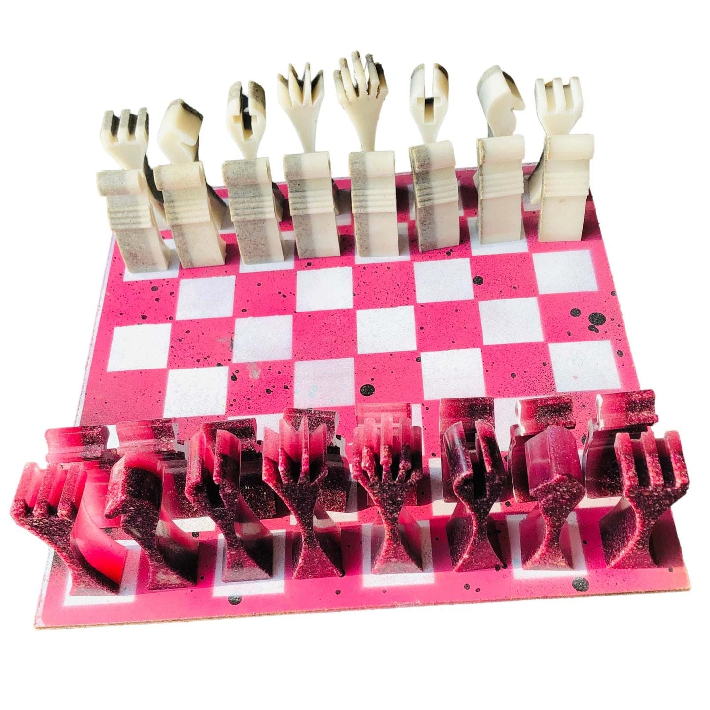 Introducing our exclusive Handcrafted Hardboard Chess Set, meticulously designed with precision and care. Measuring 12 inches by 12 inches, this chess set features a beautifully painted hardwood board that doubles as a work of art. Each set is a unique, one-of-a-kind creation, crafted by hand to ensure that no two sets are alike. Elevate your gaming experience with this exceptional chess set that combines vibrant design with the touch of artisan craftsmanship. This chess board comes with chess pieces.