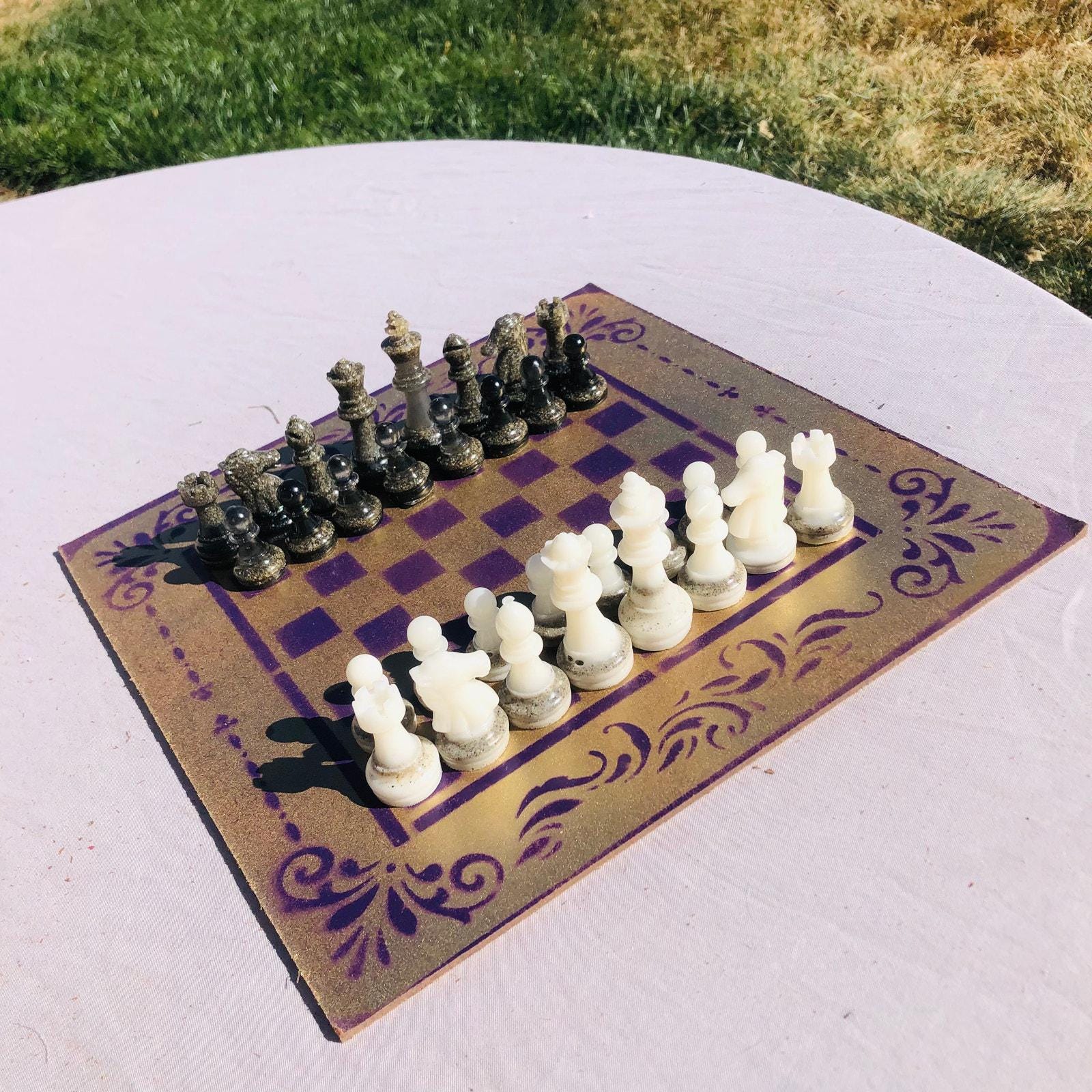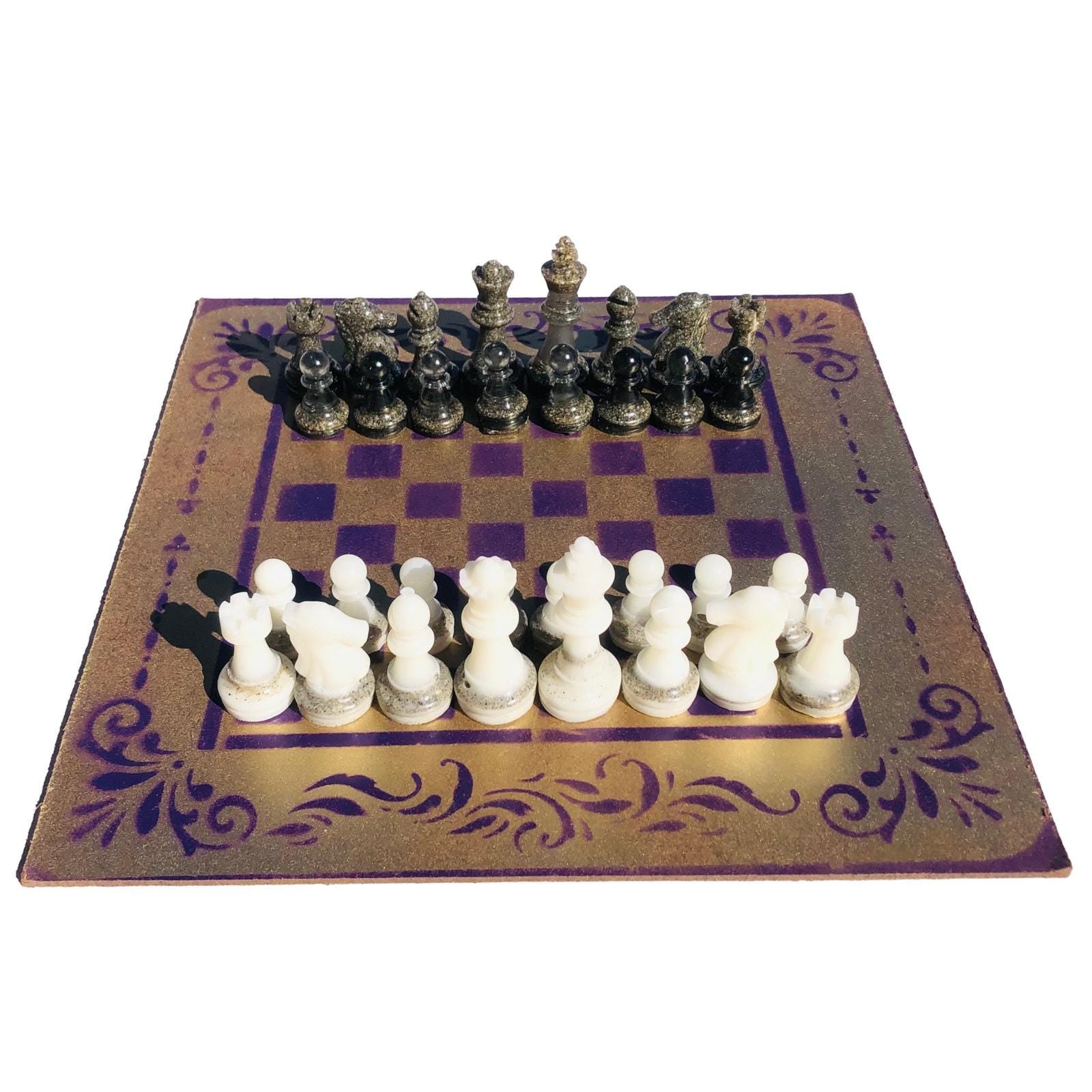 Introducing our exclusive Handcrafted Hardboard Chess Set, meticulously designed with precision and care. Measuring 12 inches by 12 inches, this chess set features a beautifully painted hardwood board that doubles as a work of art. Each set is a unique, one-of-a-kind creation, crafted by hand to ensure that no two sets are alike. Elevate your gaming experience with this exceptional chess set that combines vibrant design with the touch of artisan craftsmanship. This chess board comes with chess pieces.
