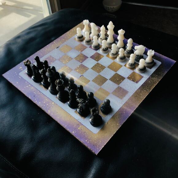 Introducing our exclusive Handcrafted Hardwood Chess Set, meticulously designed with precision and care. Measuring 12 inches by 12 inches, this chess set features a beautifully painted hardwood board that doubles as a work of art. Each set is a unique, one-of-a-kind creation, crafted by hand to ensure that no two sets are alike. Elevate your gaming experience with this exceptional chess set that combines vibrant design with the touch of artisan craftsmanship.