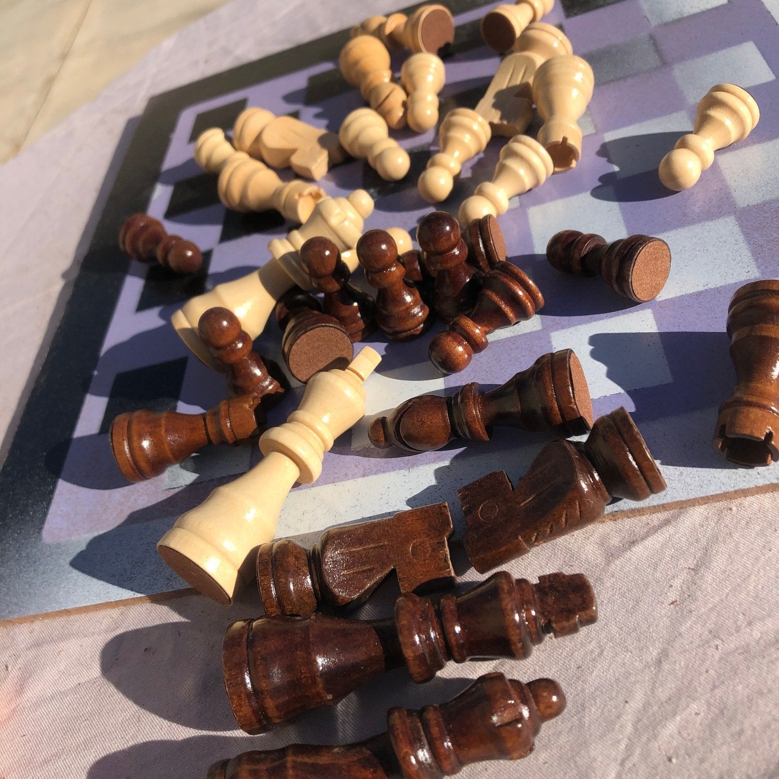 Introducing our exclusive Handcrafted Hardboard Chess Set, meticulously designed with precision and care. Measuring 12 inches by 12 inches, this chess set features a beautifully painted hardwood board that doubles as a work of art. Each set is a unique, one-of-a-kind creation, crafted by hand to ensure that no two sets are alike. Elevate your gaming experience with this exceptional chess set that combines vibrant design with the touch of artisan craftsmanship.